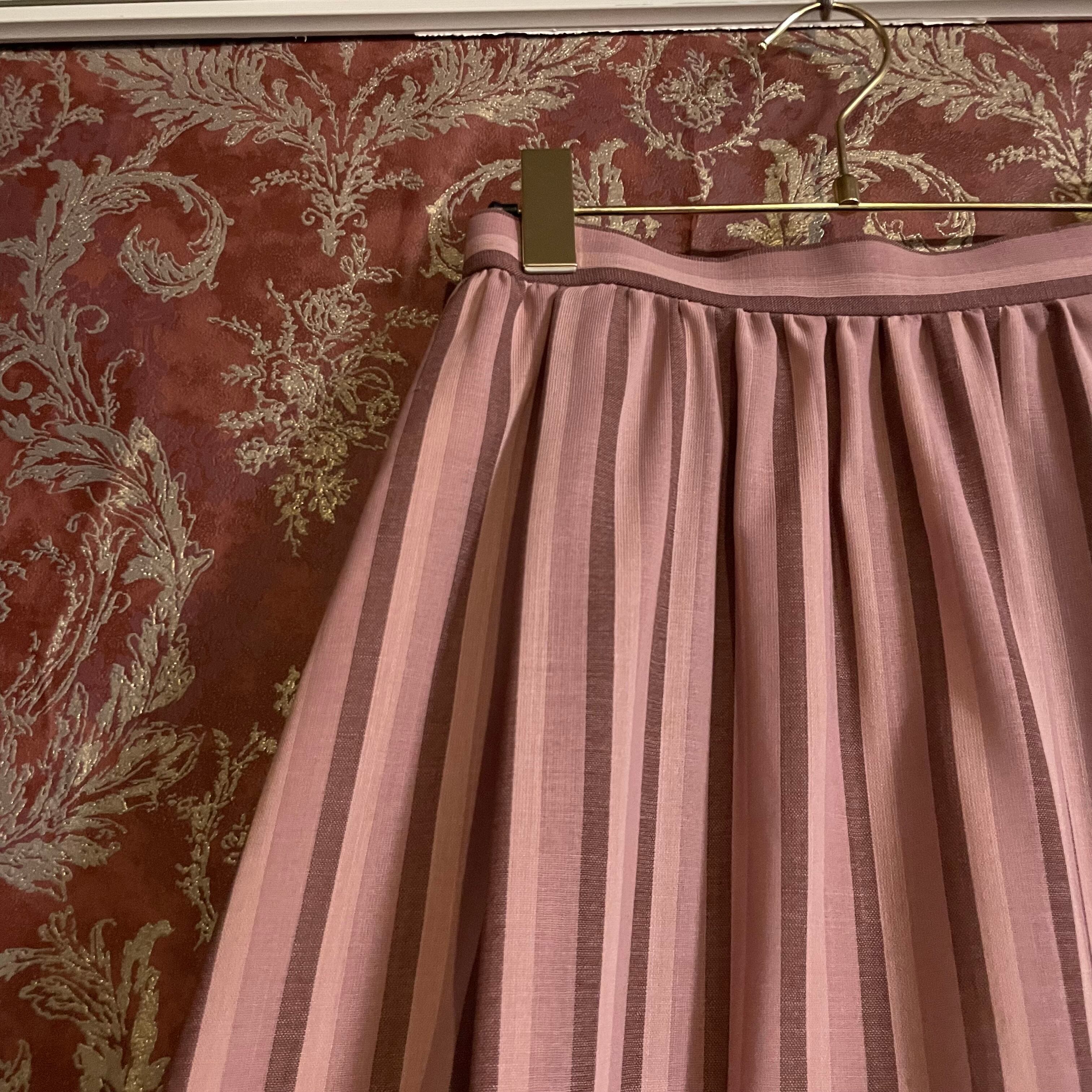 ピンク×ボルドー系のストライプ柄がクラシカルで、落ち着いた中に華やかさを添えてくれます。