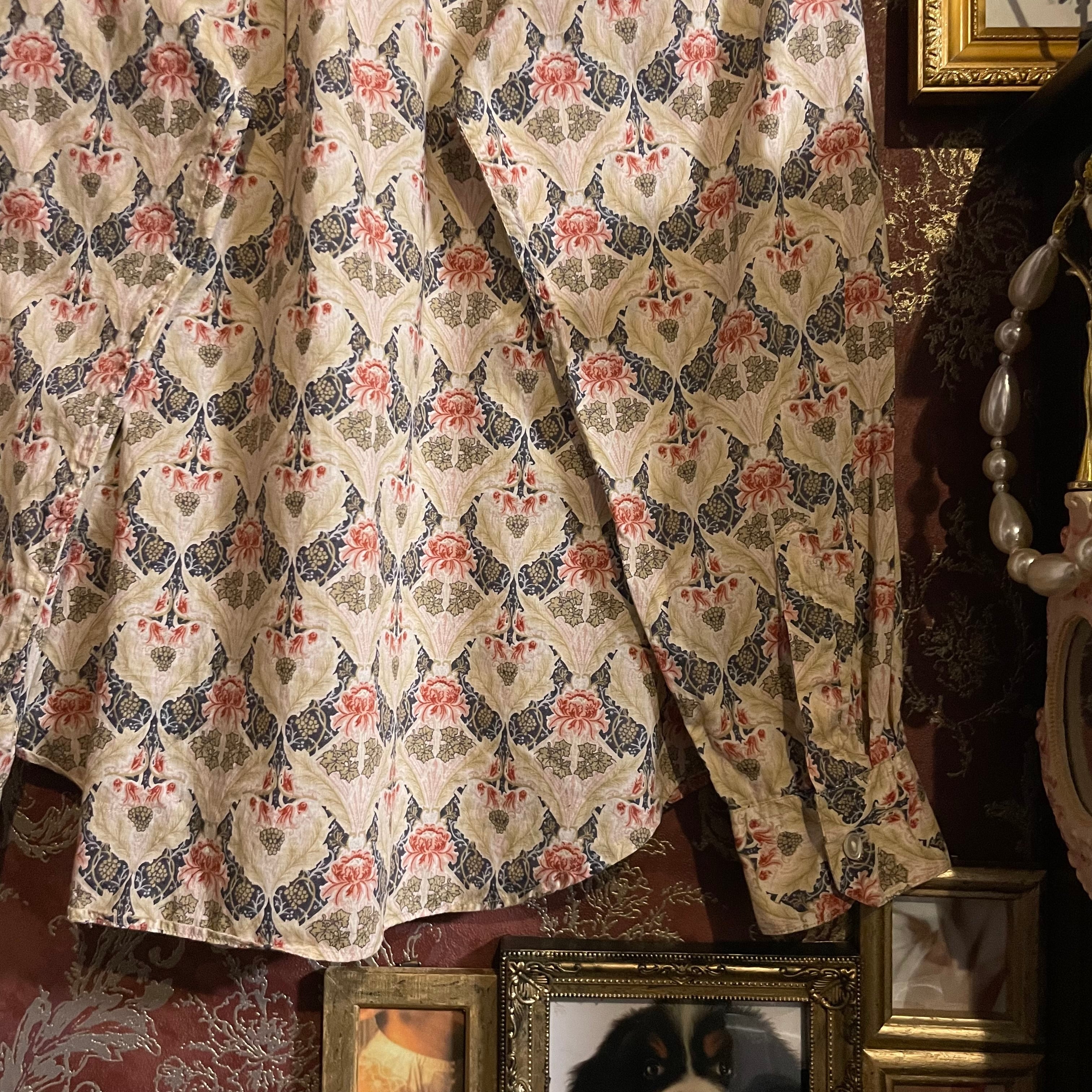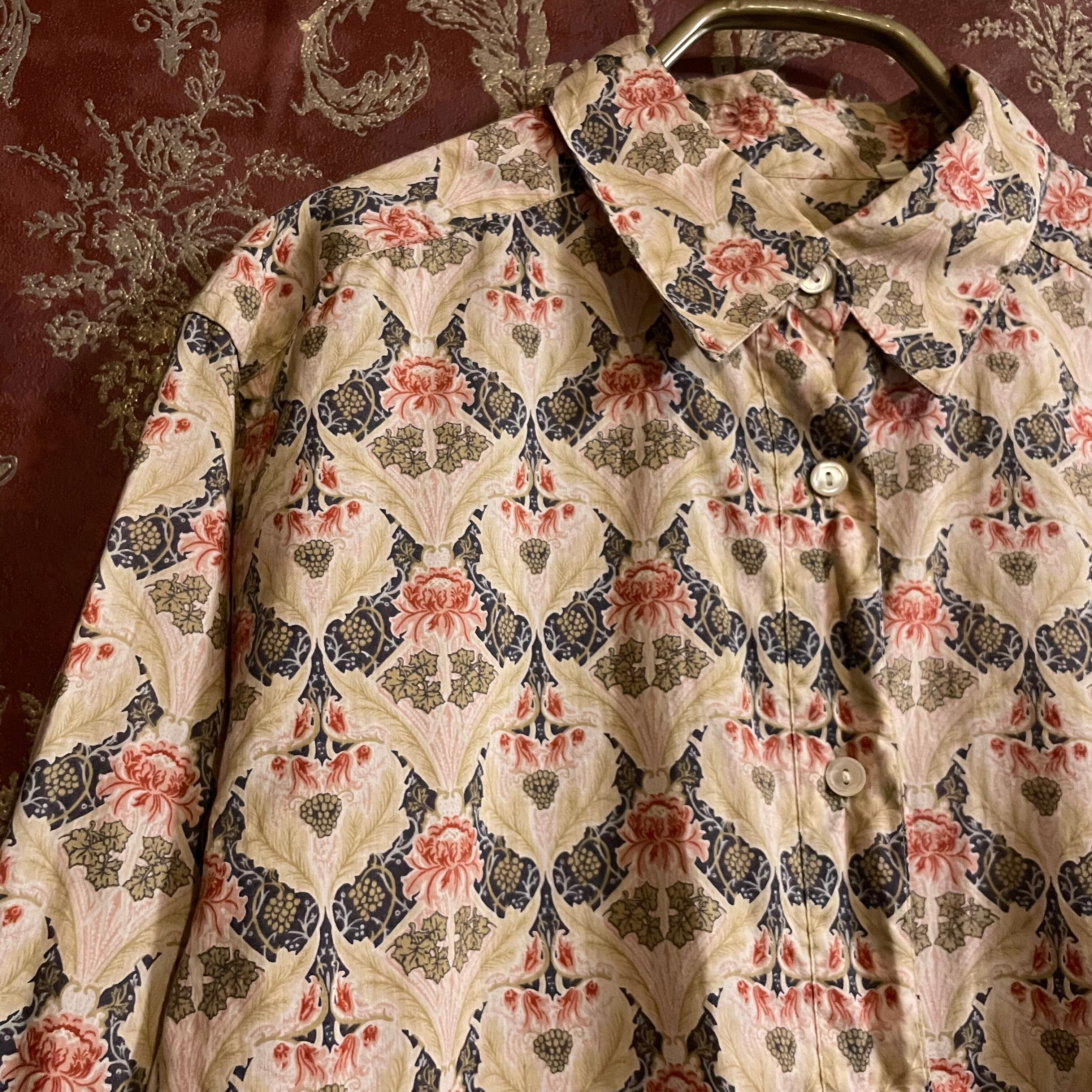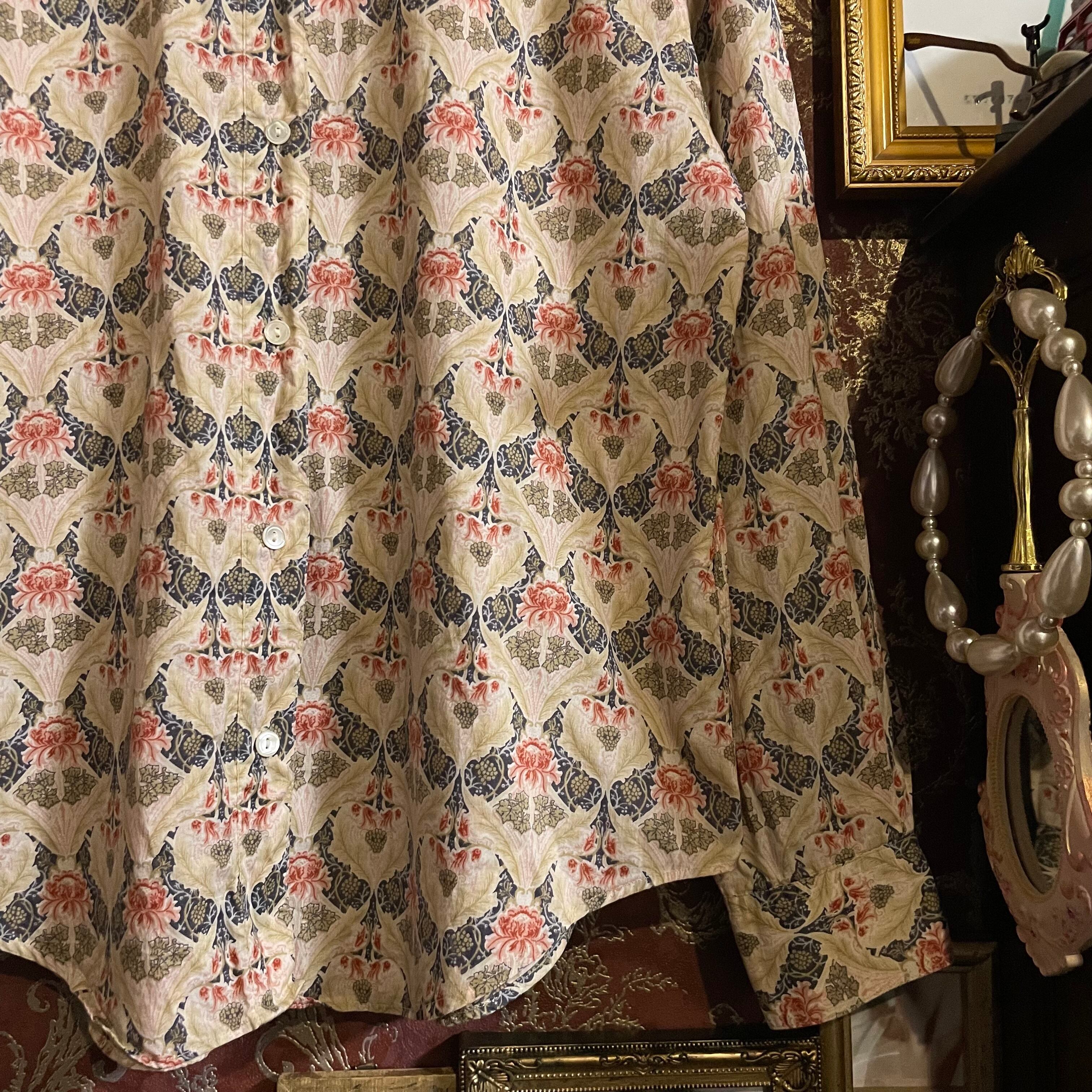 リバティの名作柄「Barnham(バーナム)」を使用したクラシカルなブラウスです。