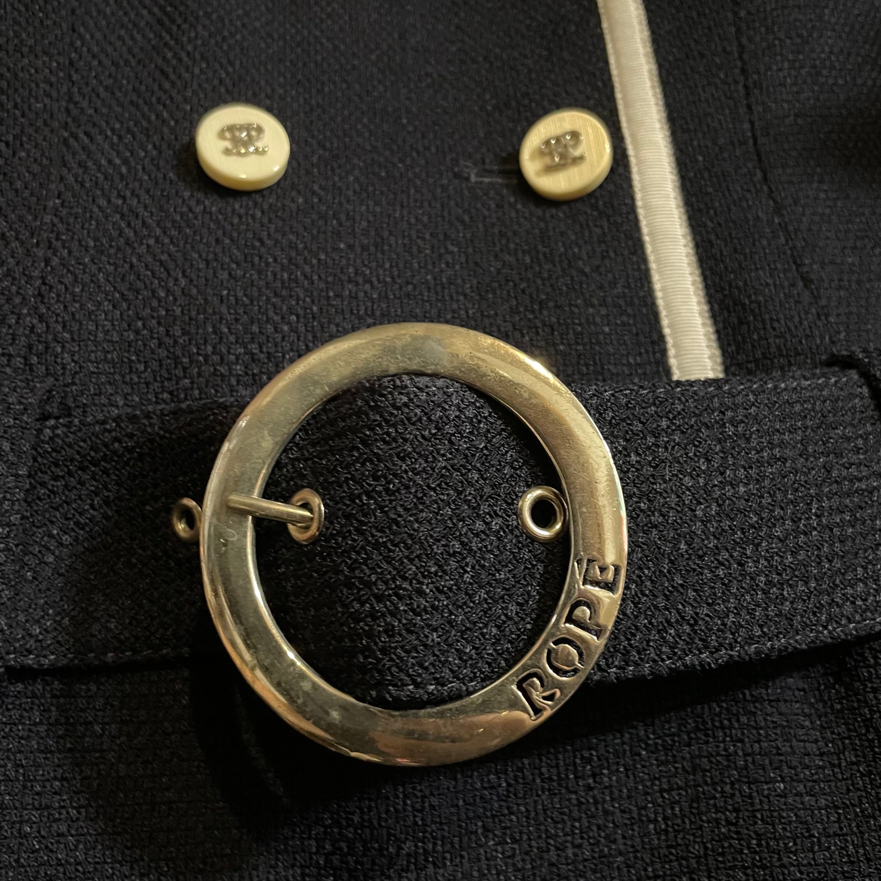 ホワイトのパイピングと大きめのダブルボタンが視線を惹きつけ、マリンムード漂う映画のワンシーンのような佇まいです。