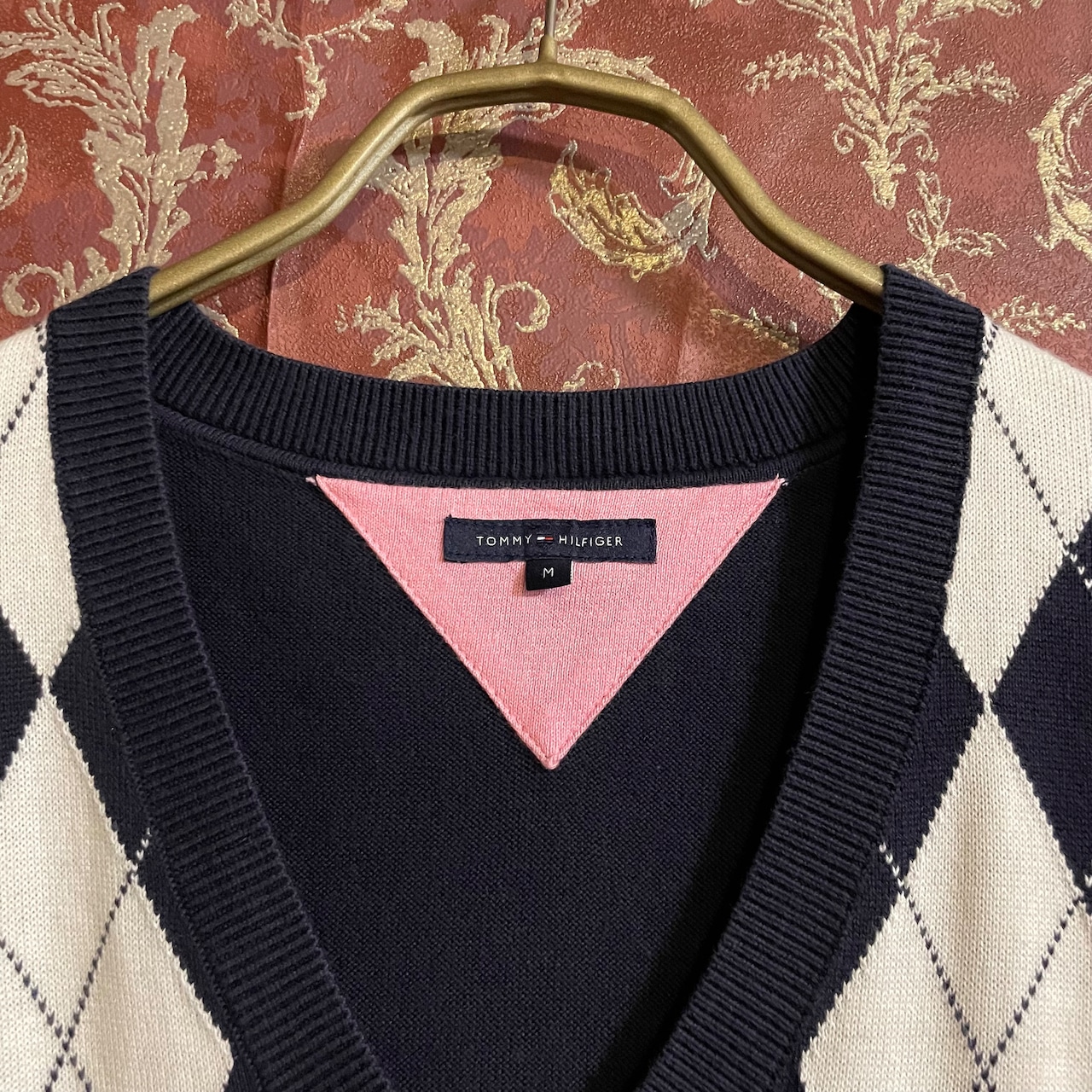 トラッドな雰囲気漂うTOMMY HILFIGERのアーガイル柄のVネックセーターです。
