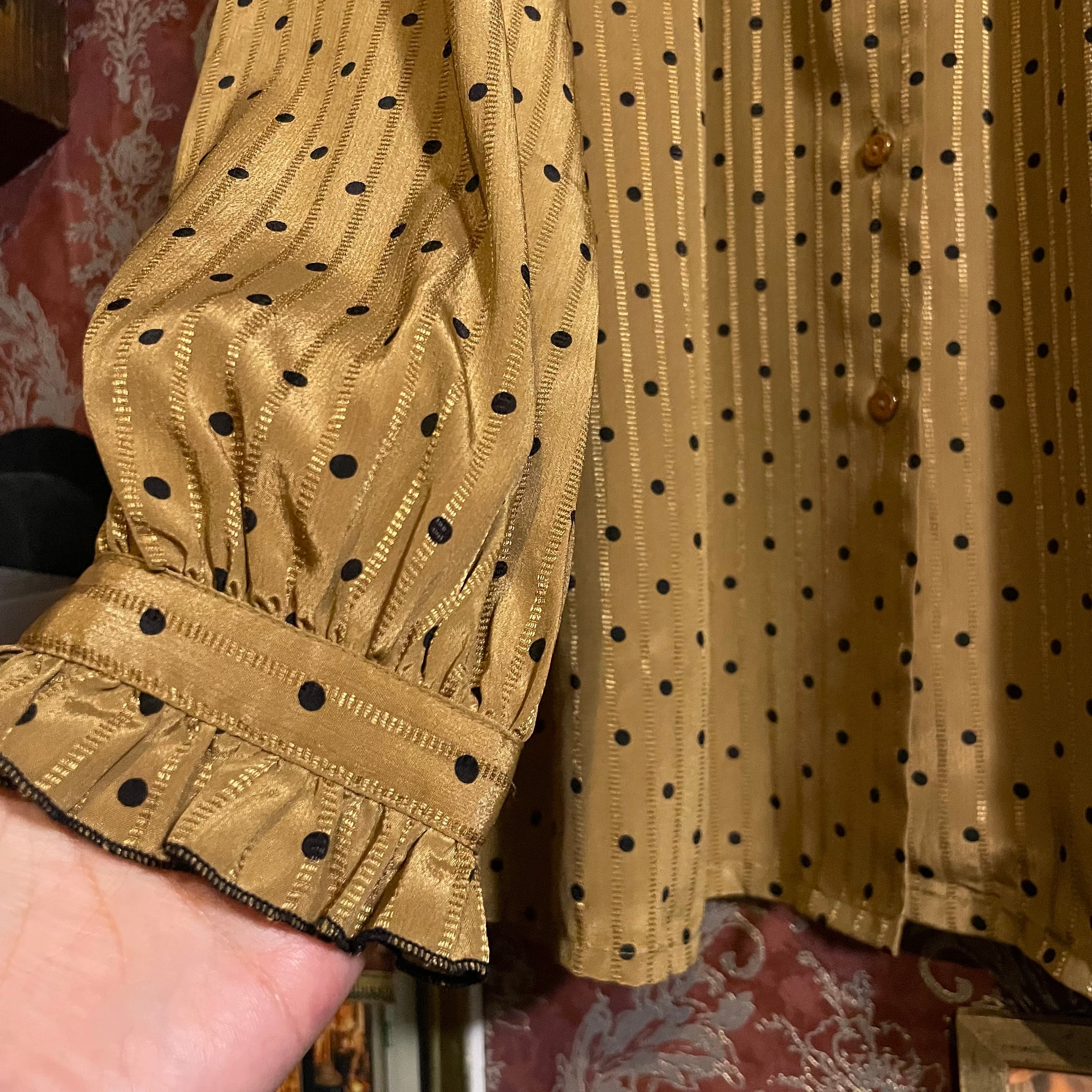 gold brown × black dot blouse