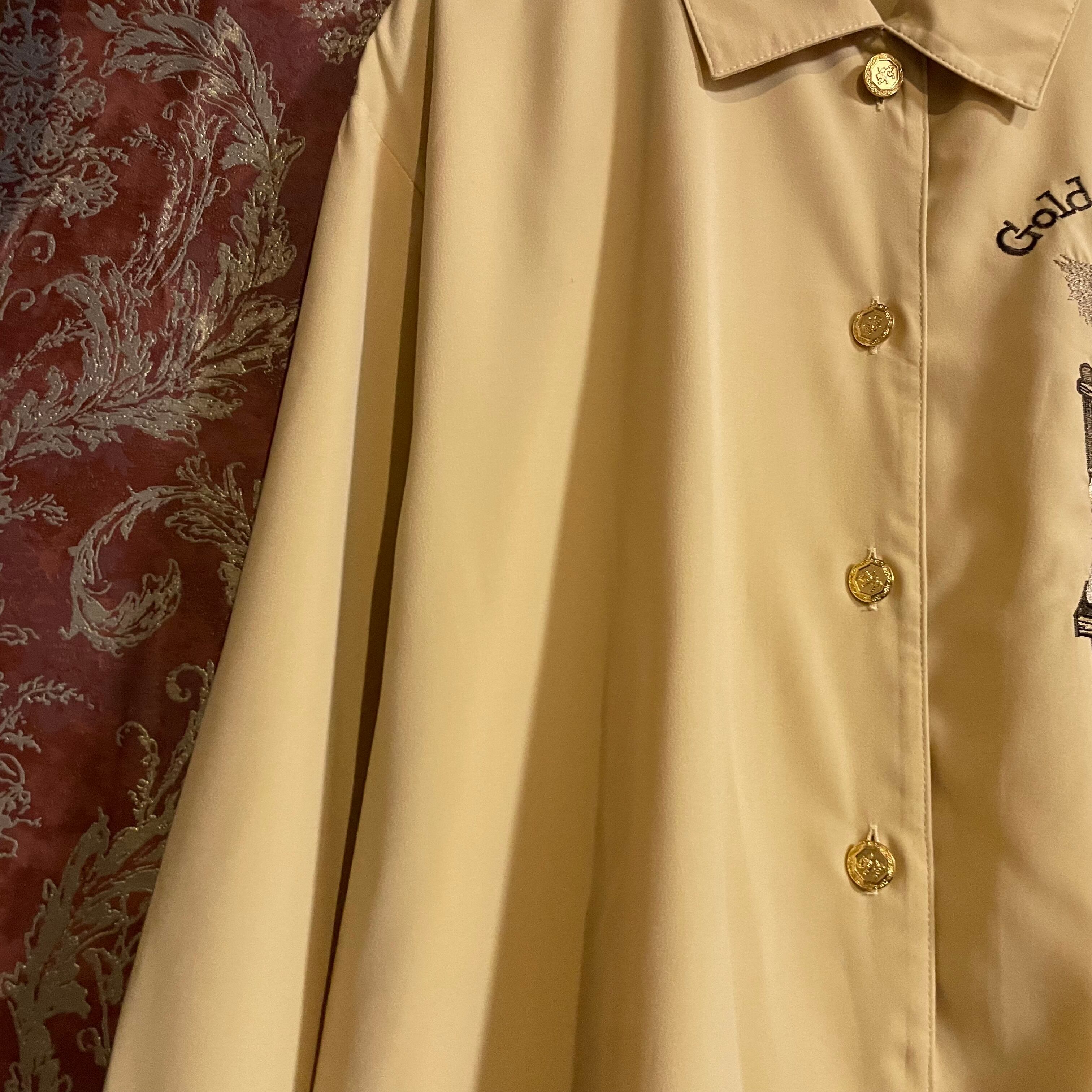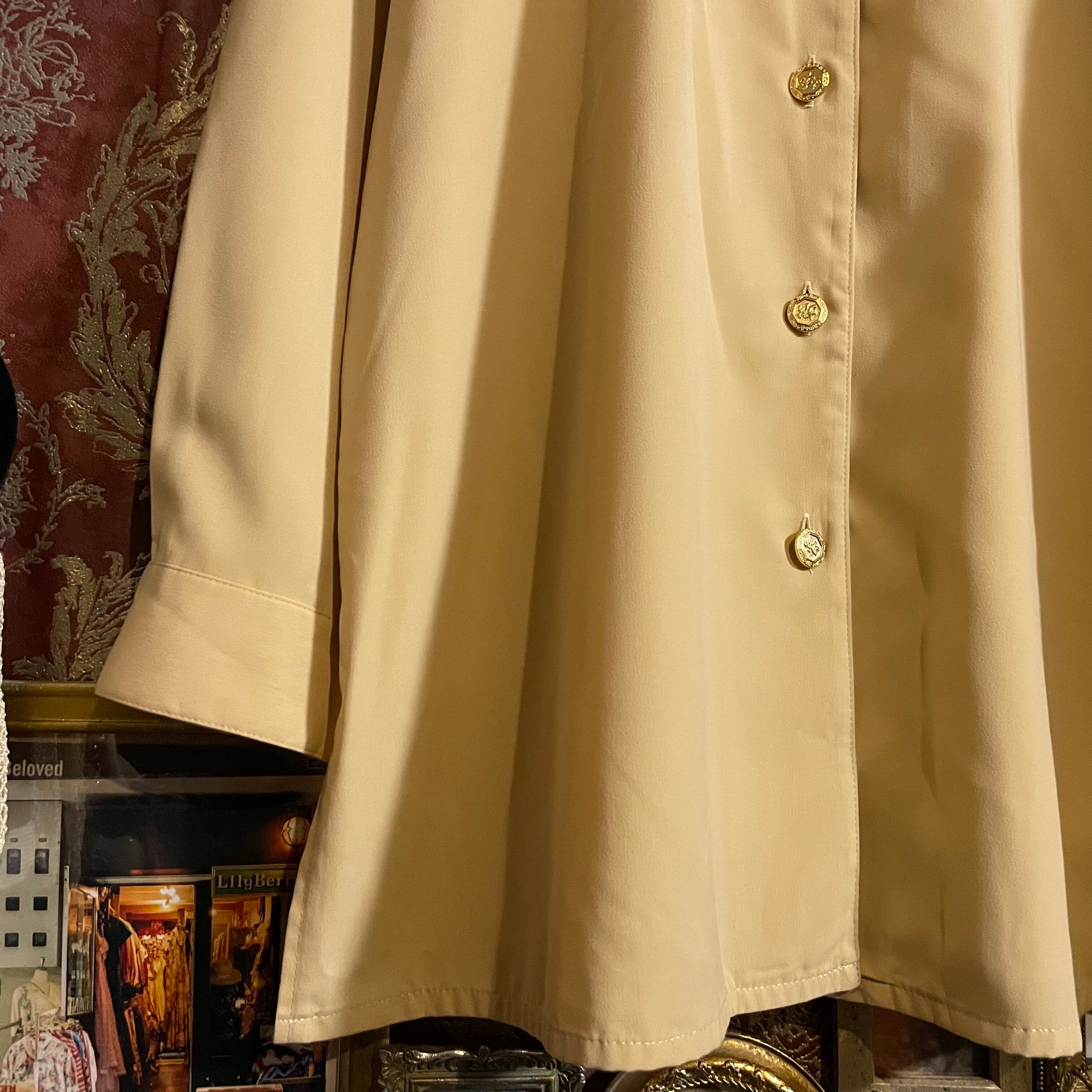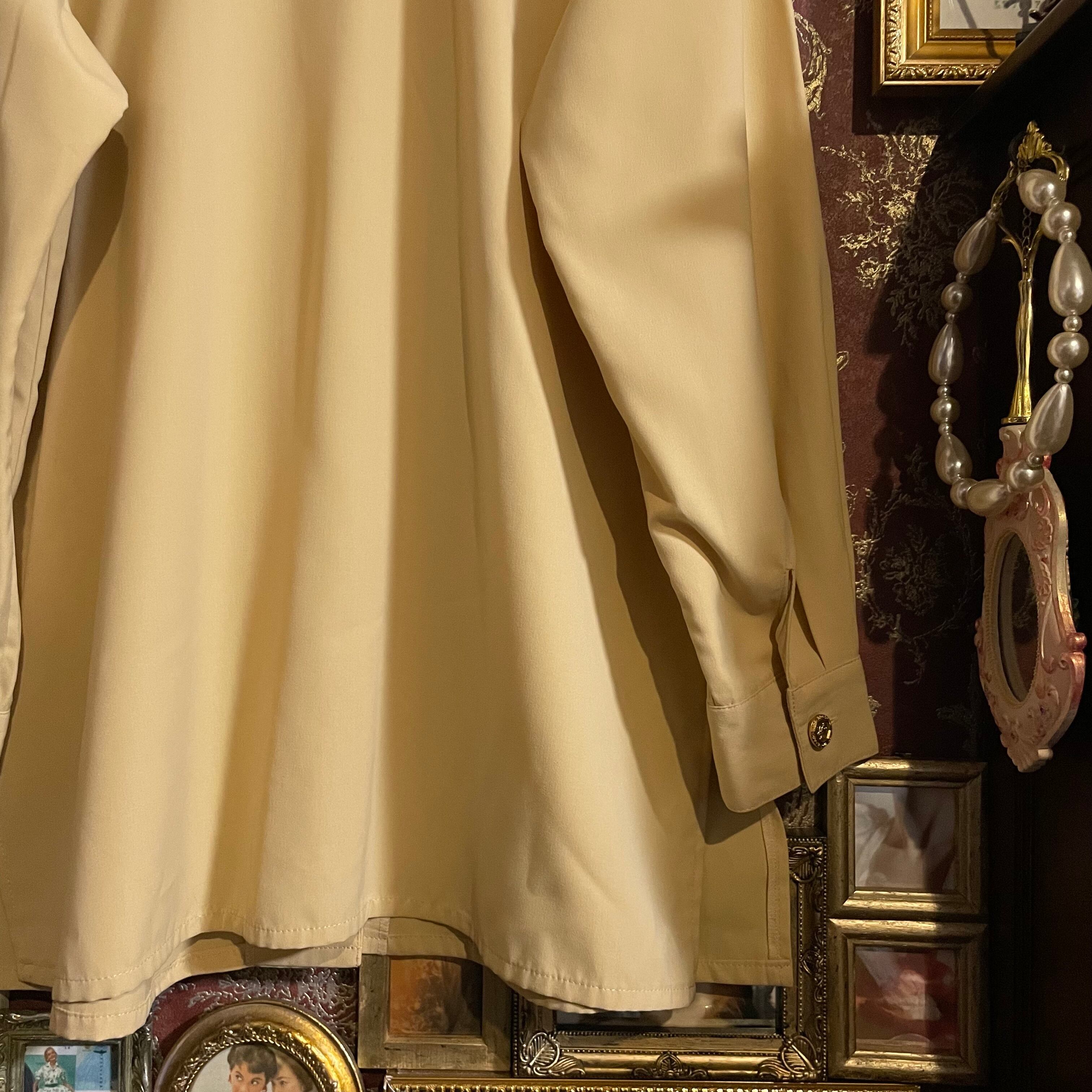 やわらかなベージュカラーが上品な、遊び心のある長めのシャツです。