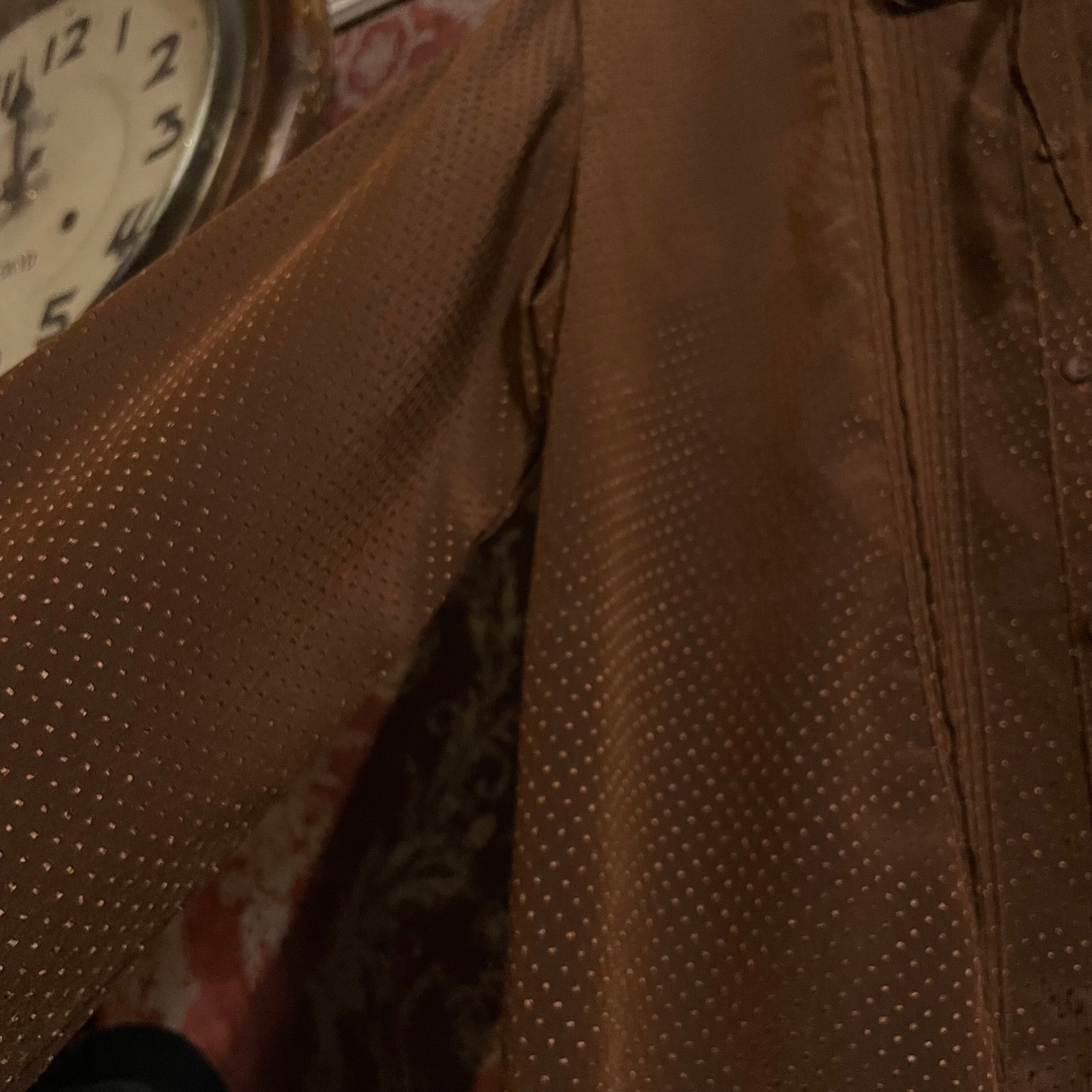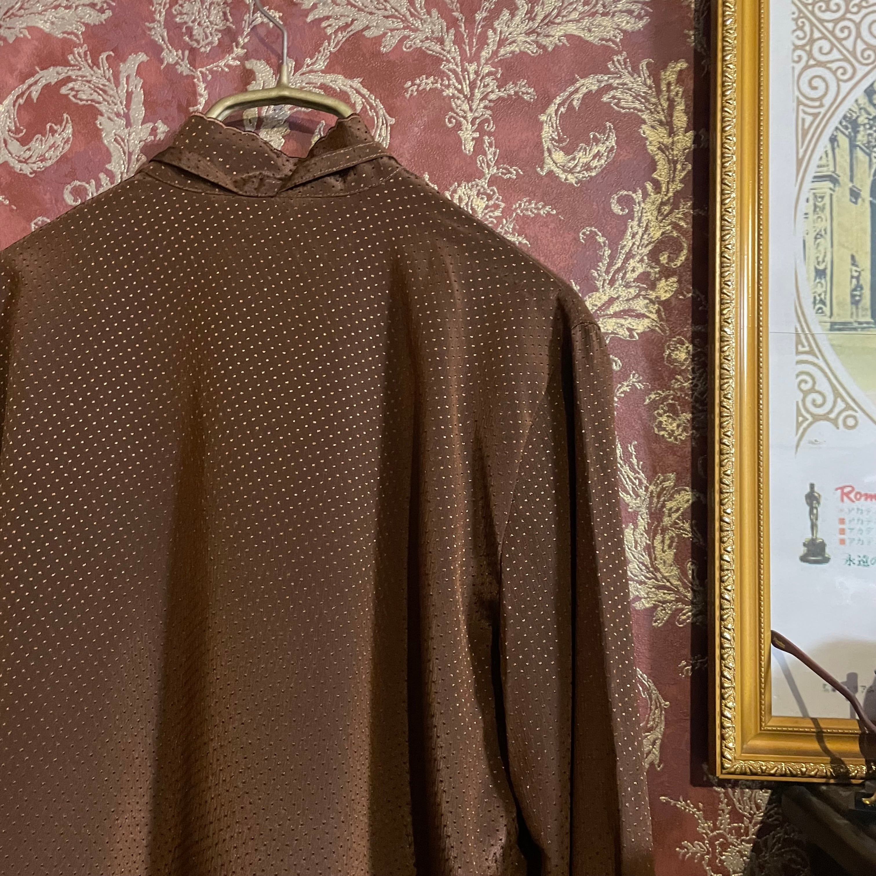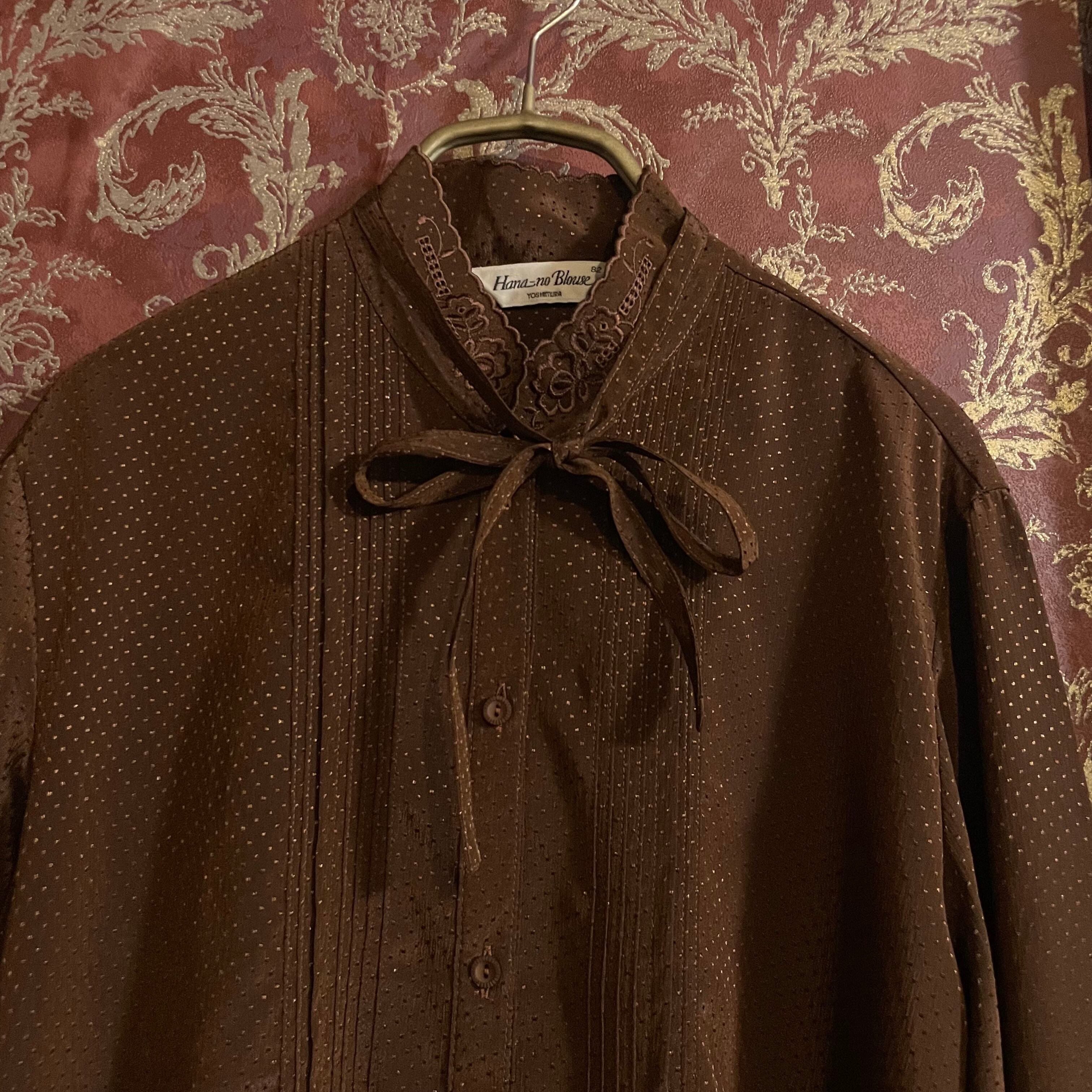 深みのあるブラウンカラーに繊細なドット柄のヴィンテージブラウスです。
