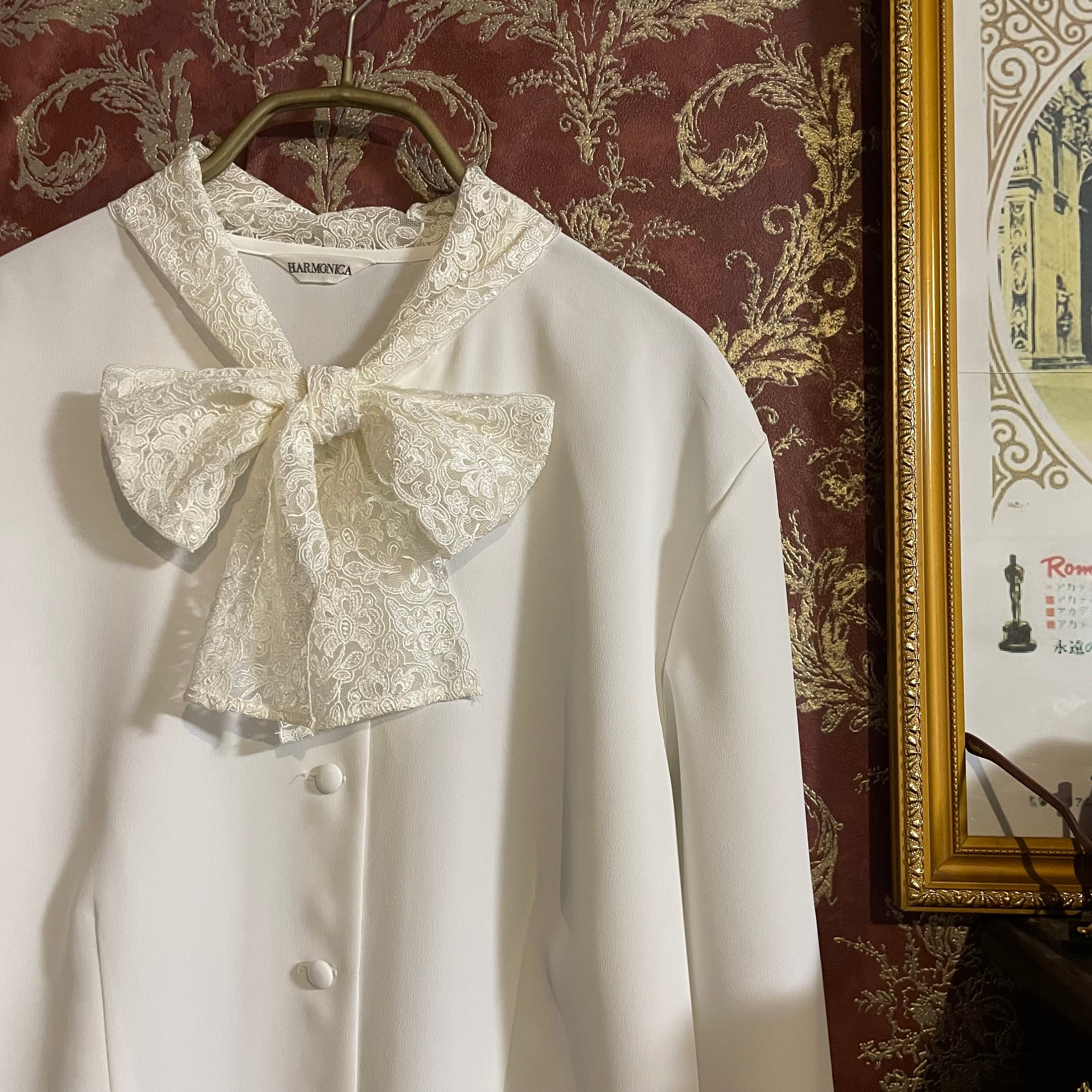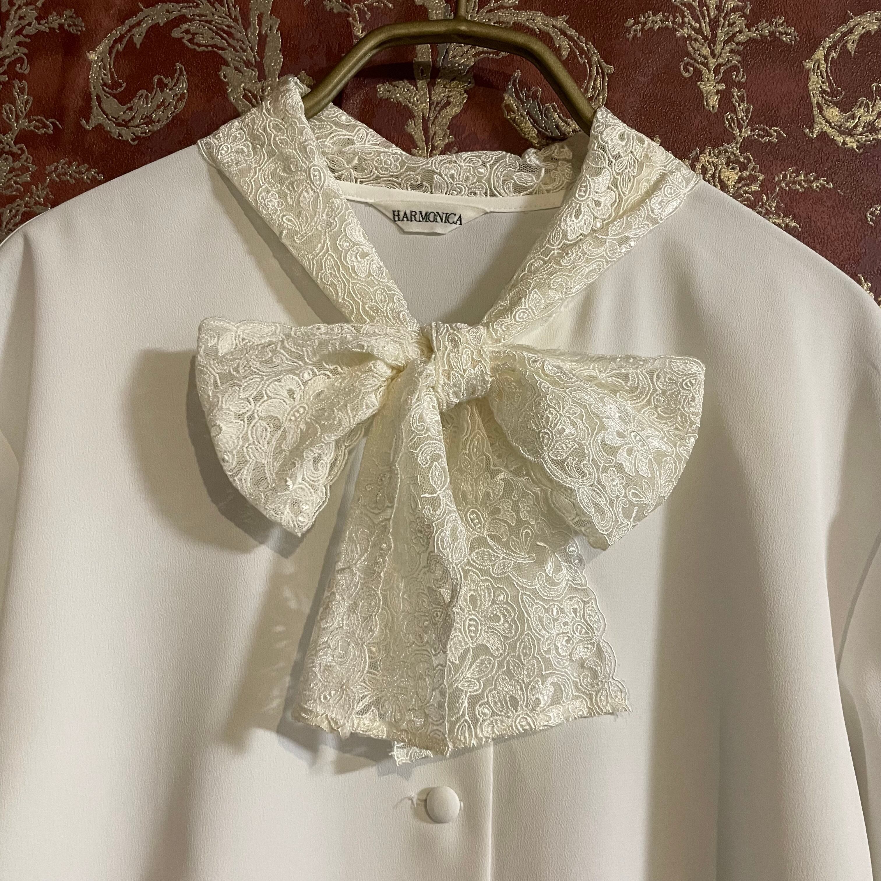 lace bowtie white blouse