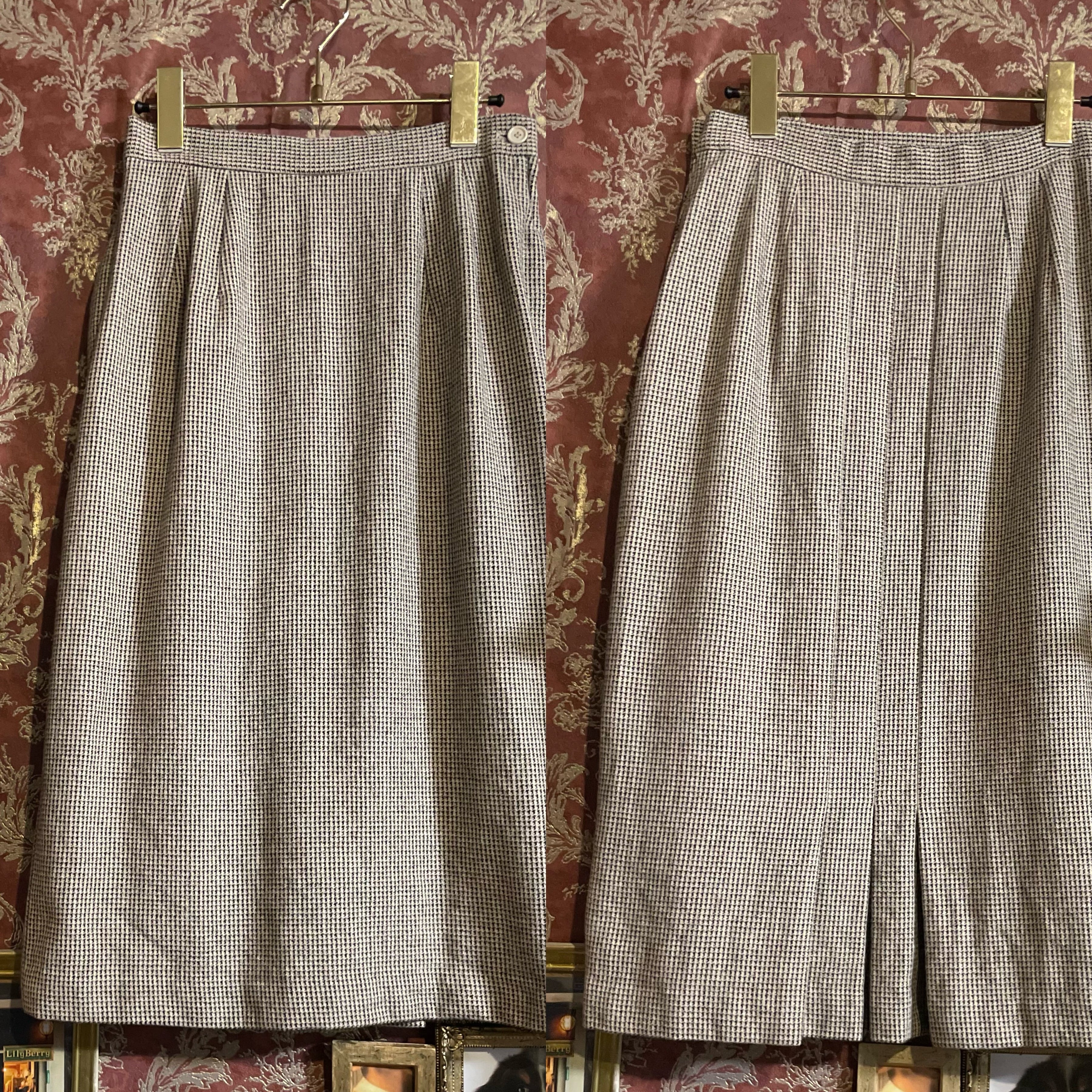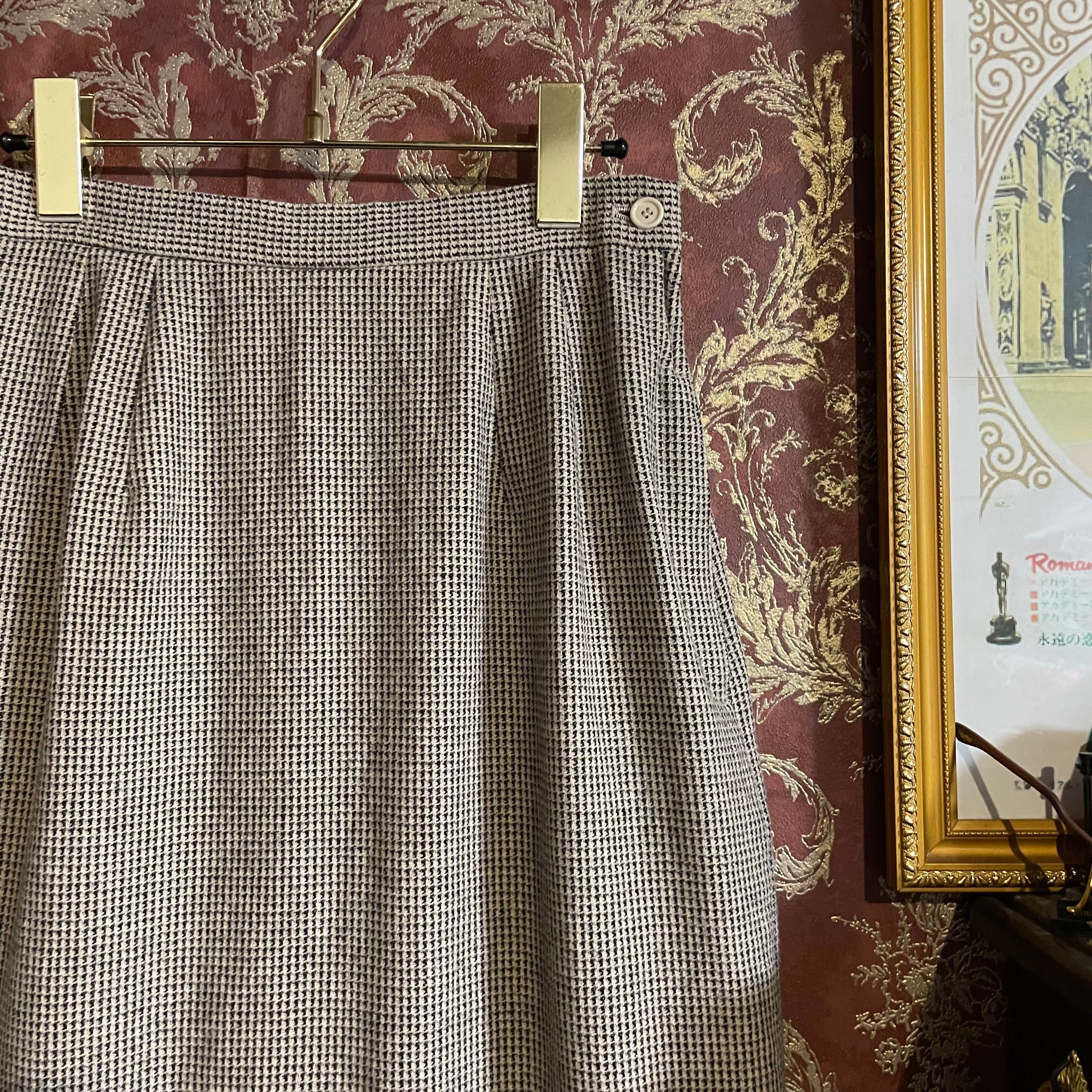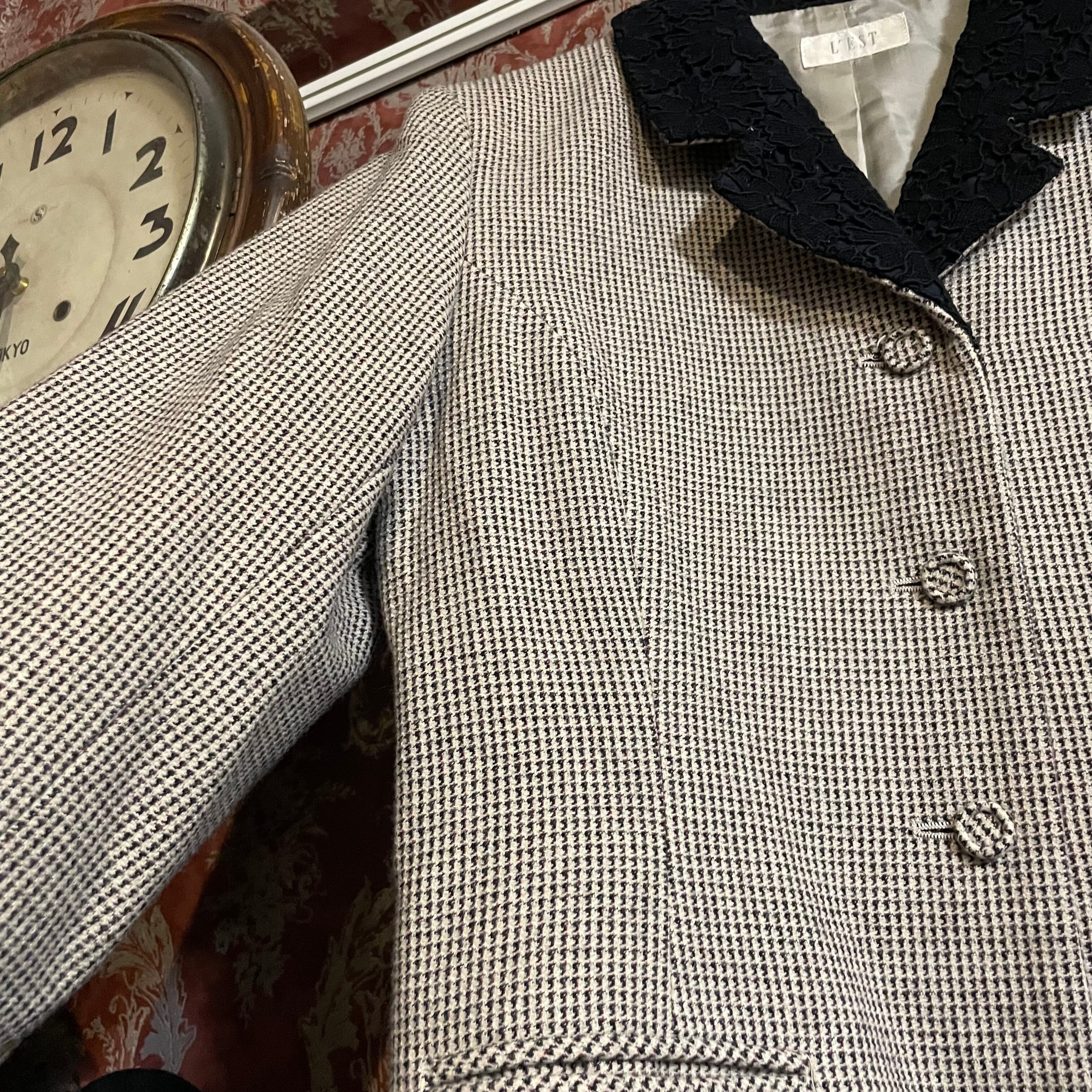 細かな千鳥格子柄のジャケット&スカートのセットアップです。