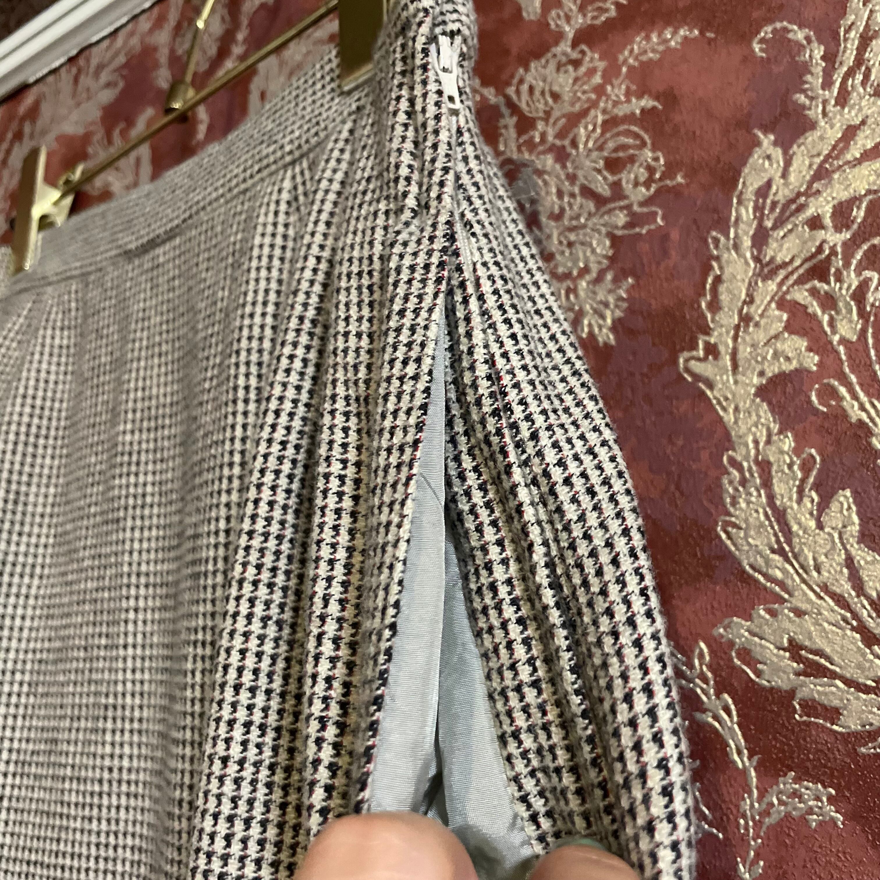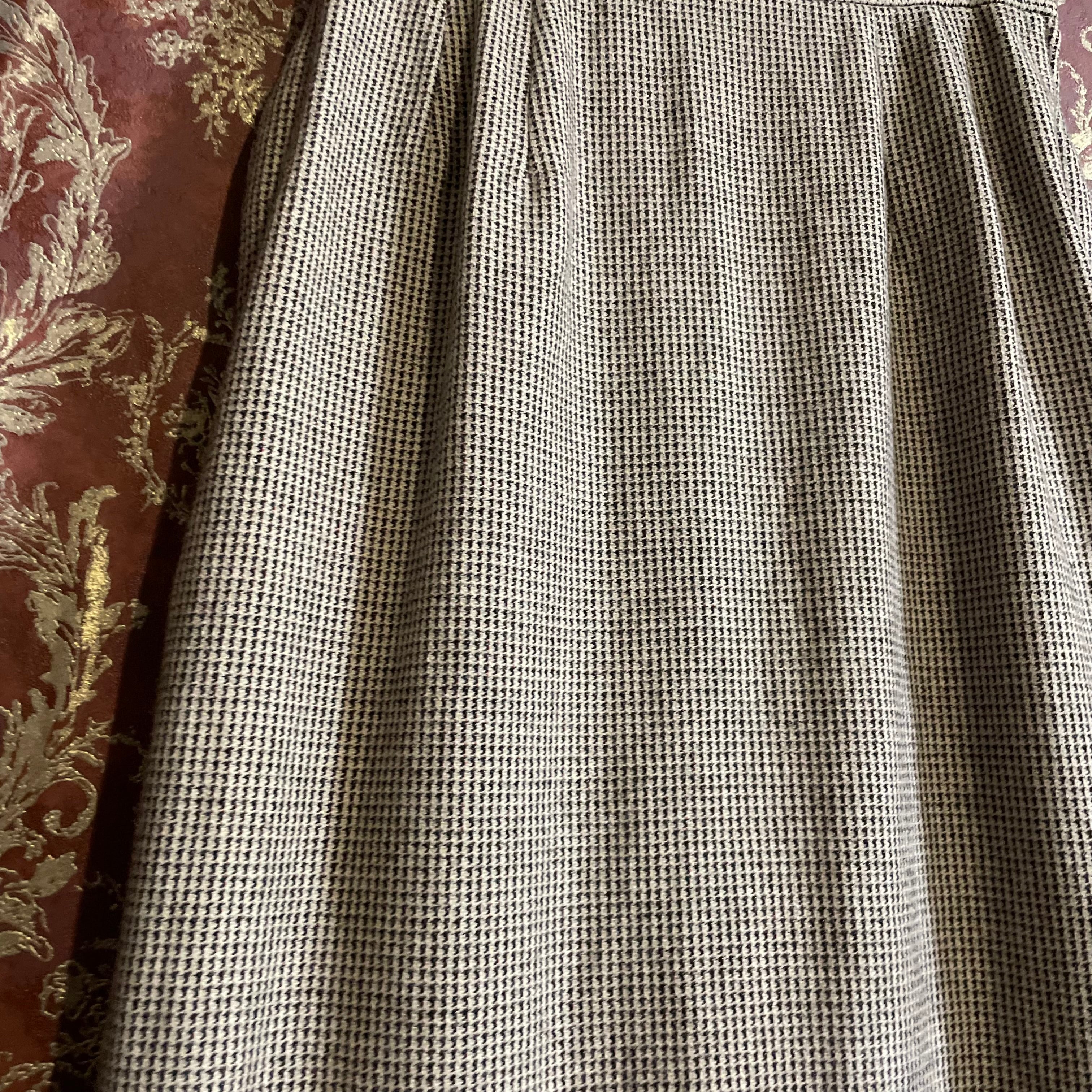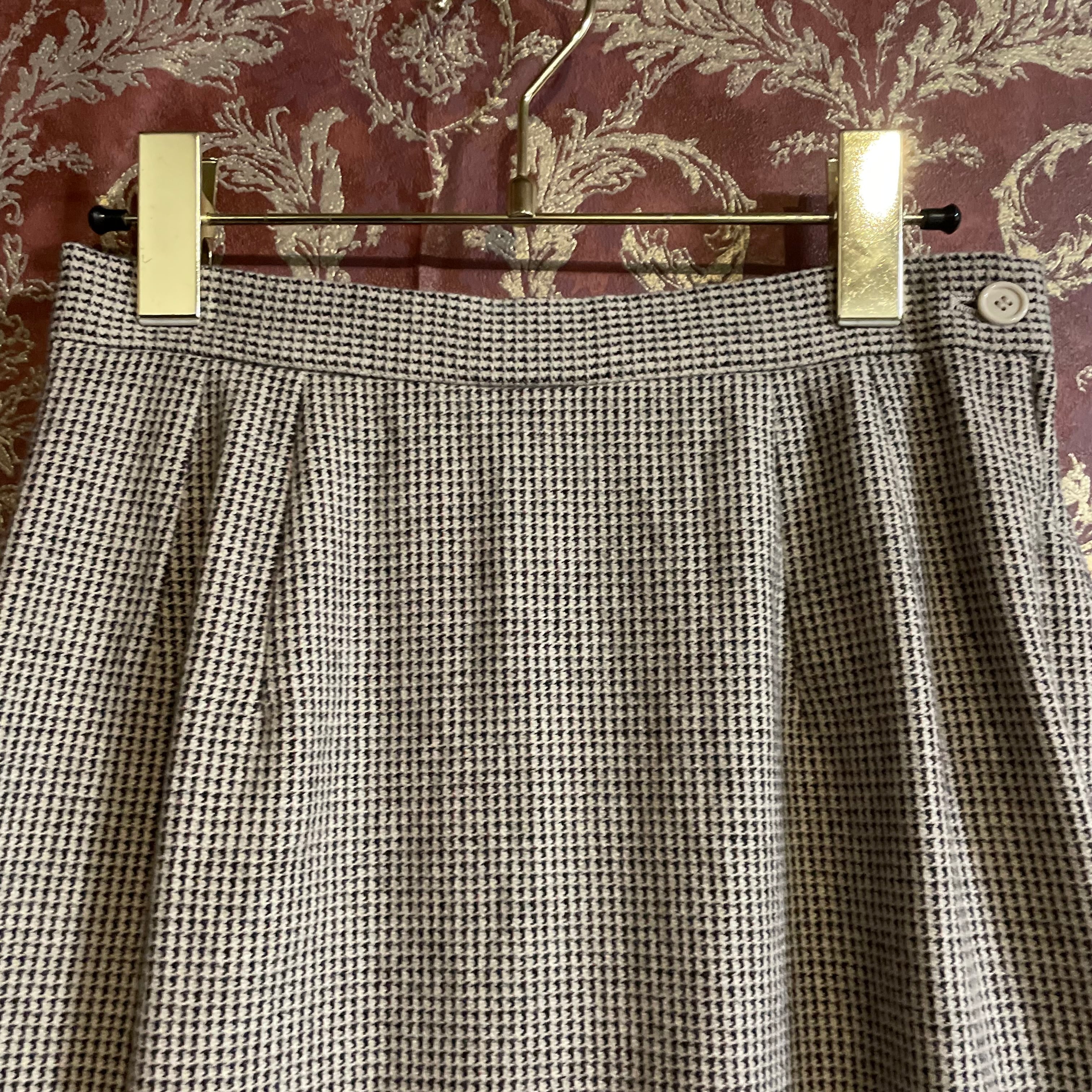 細かな千鳥格子柄のジャケット&スカートのセットアップです。