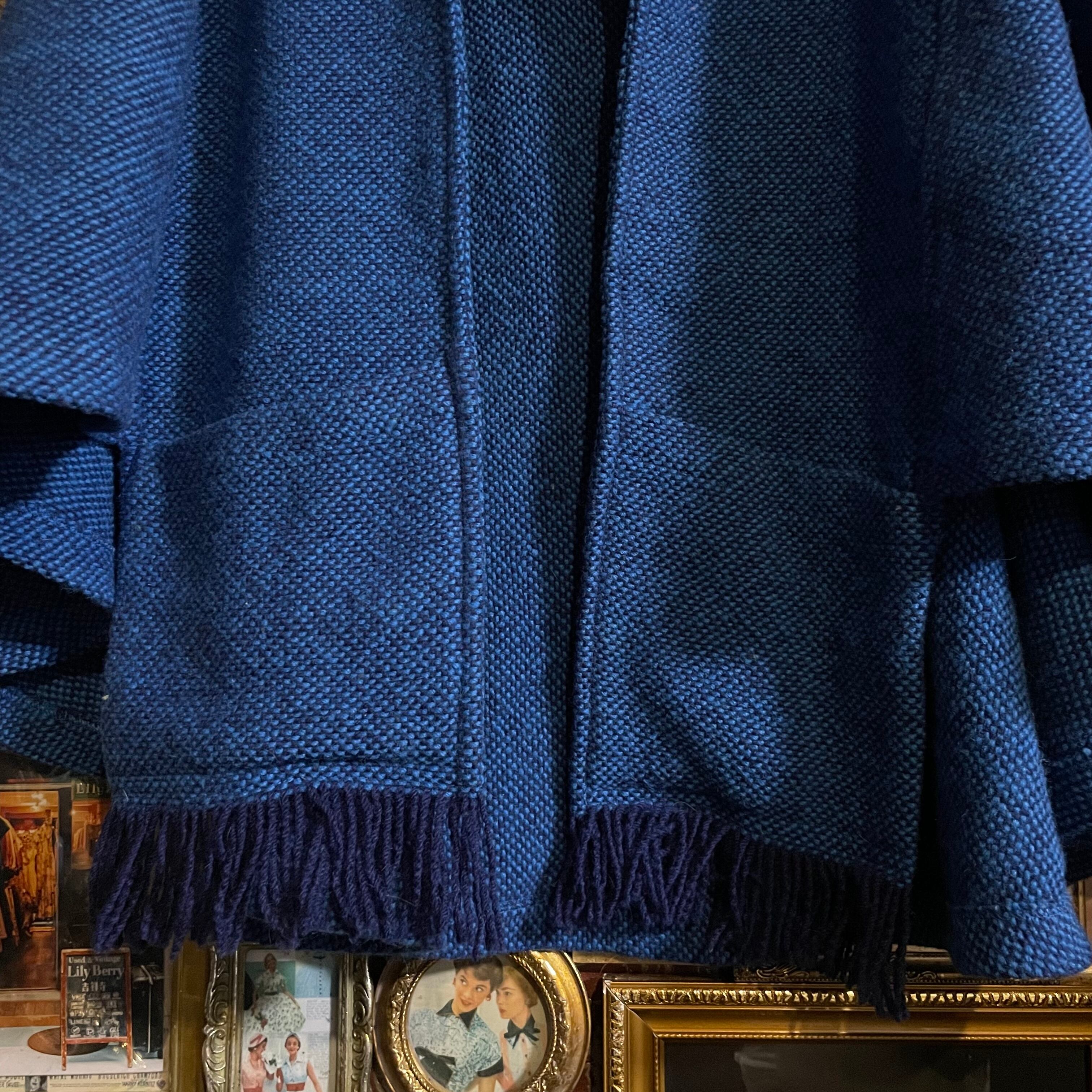 深みのあるブルーが印象的な、ニュージーランド製(ネルソン)のウールポンチョです。