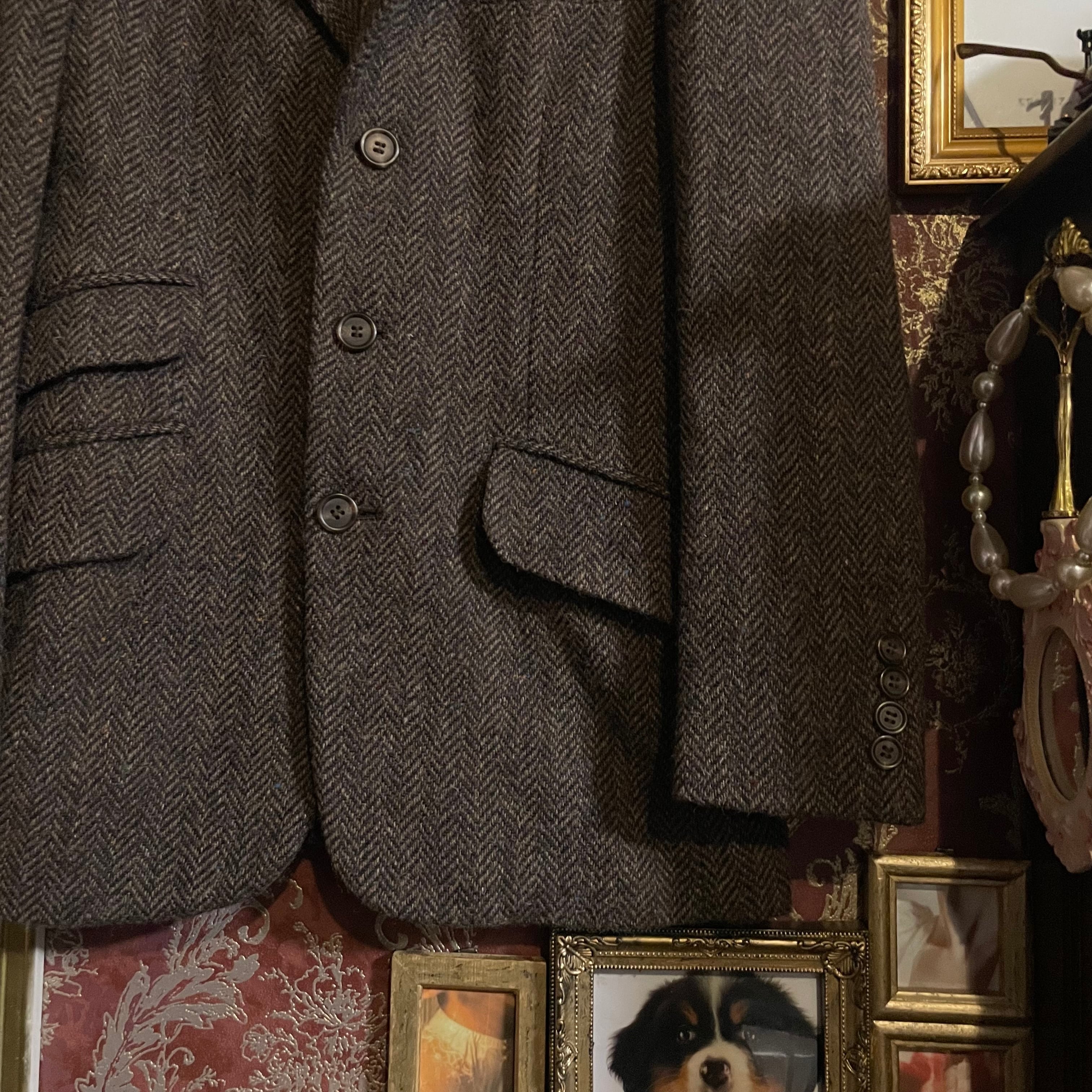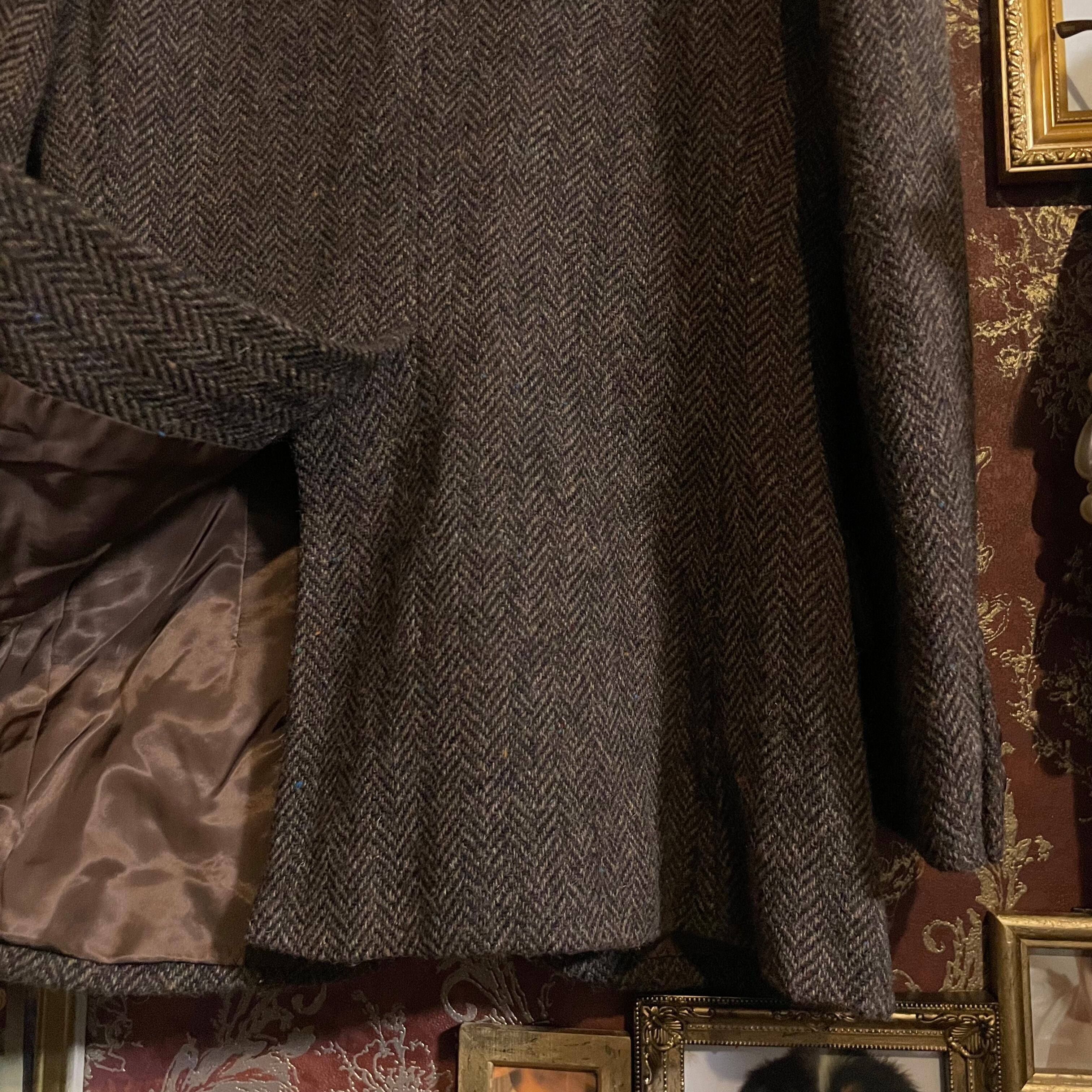 上質なヘリンボーン織りのツイード素材で、温かみと重厚感のある一着です。