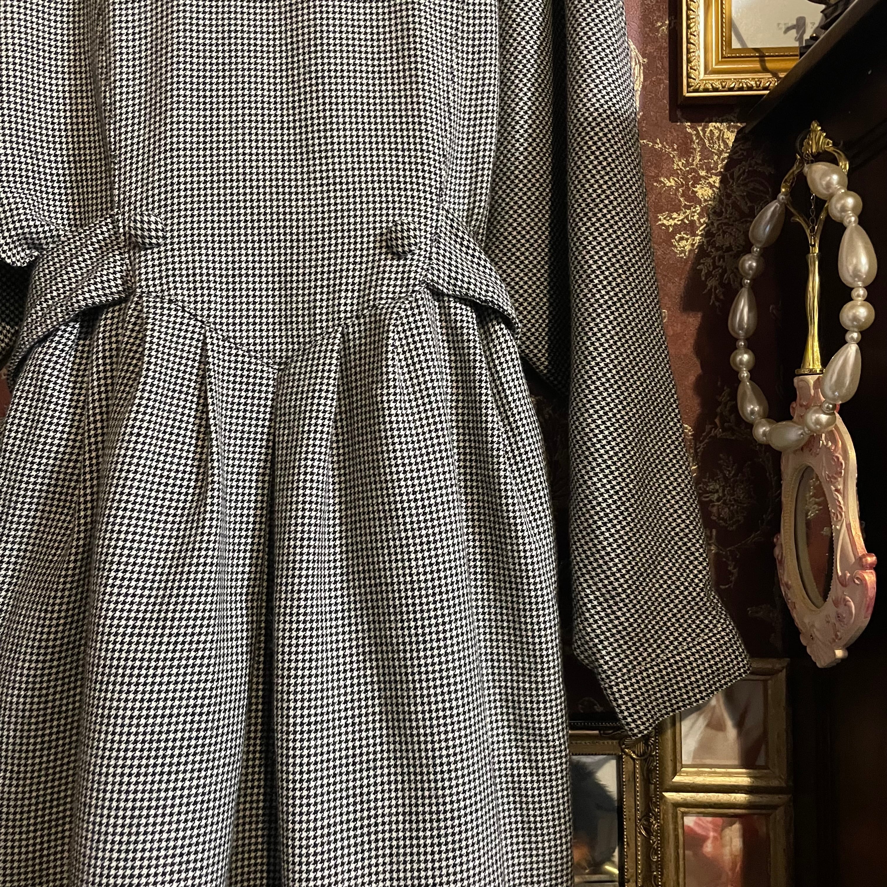 細かな千鳥格子柄がクラシカルな印象のウールワンピースです。