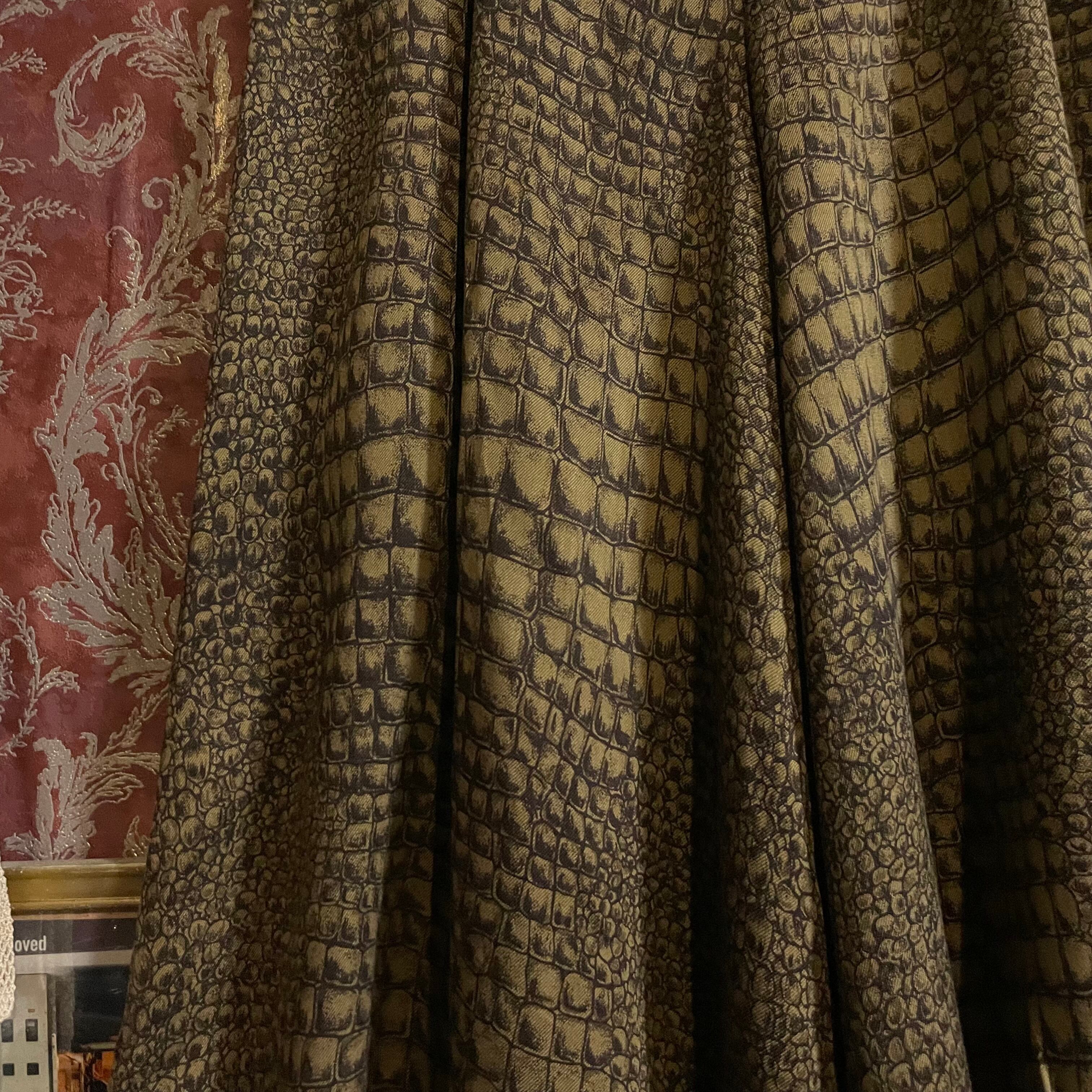 伊太利屋らしいエレガンスと強さを感じる、クロコダイル調プリントのセットアップでさ。