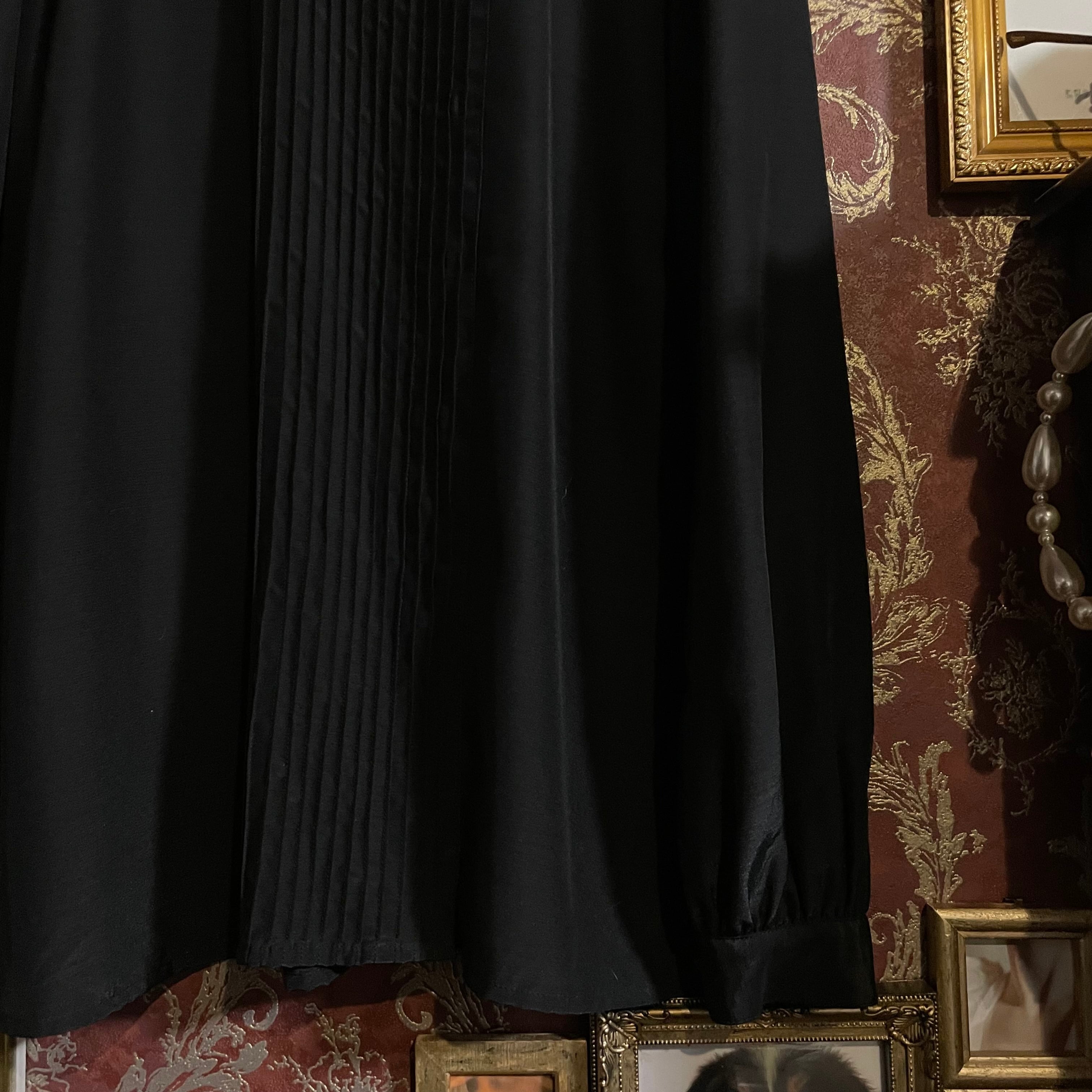 フォーマルにもヴィンテージスタイルにも合わせやすい、上質なブラックブラウスです。