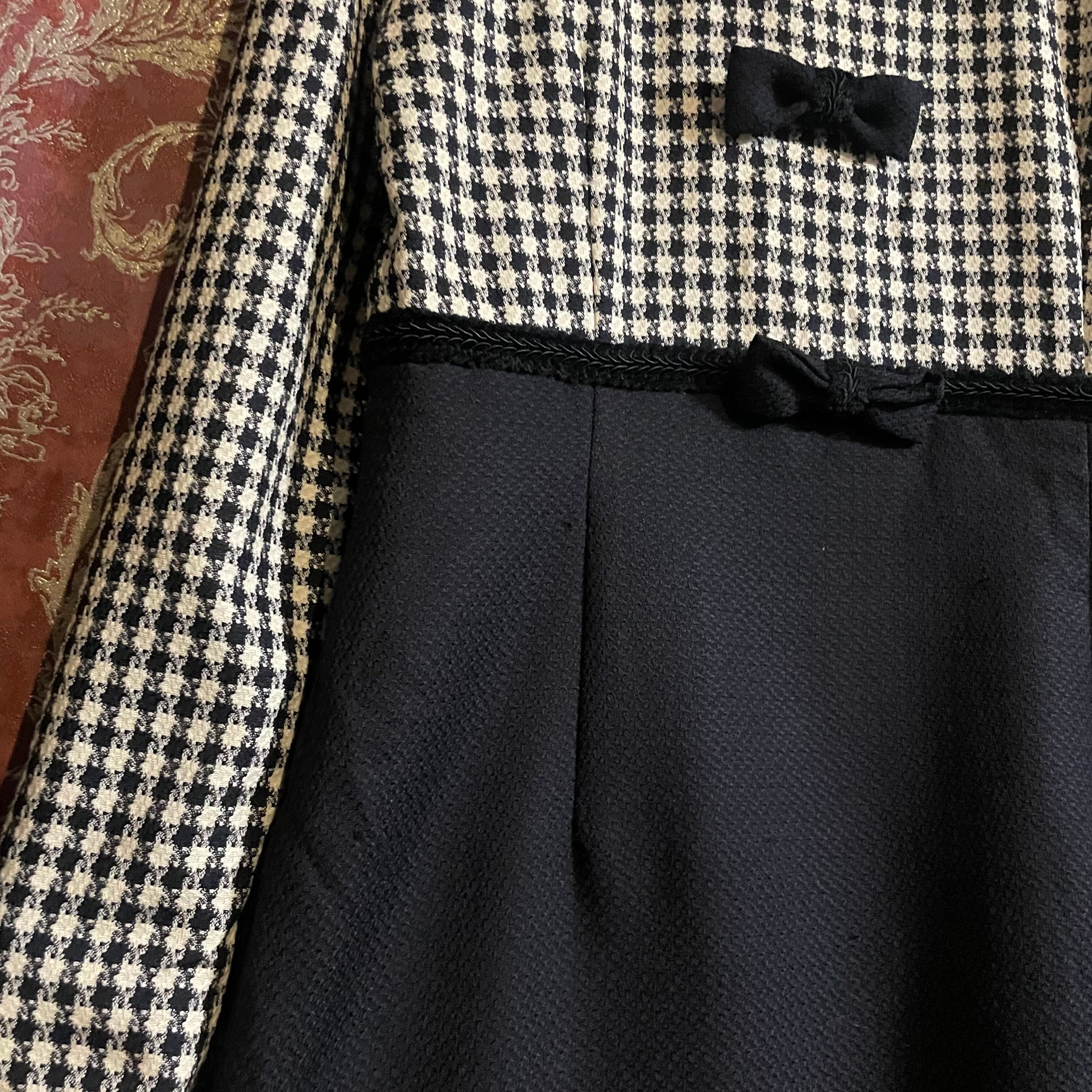 上身頃のチェック柄とと無地スカートの切り替えが上品なヴィンテージワンピースです。