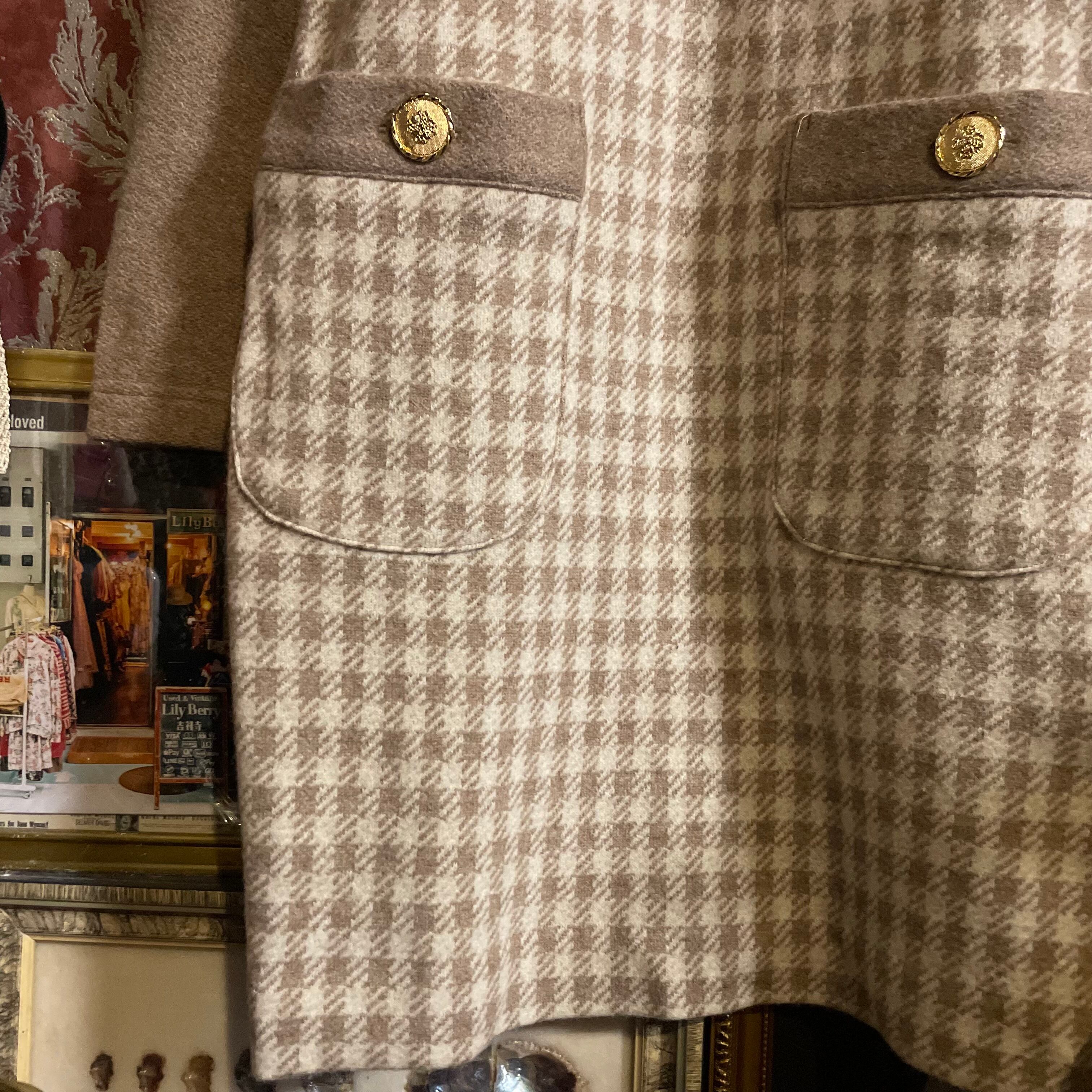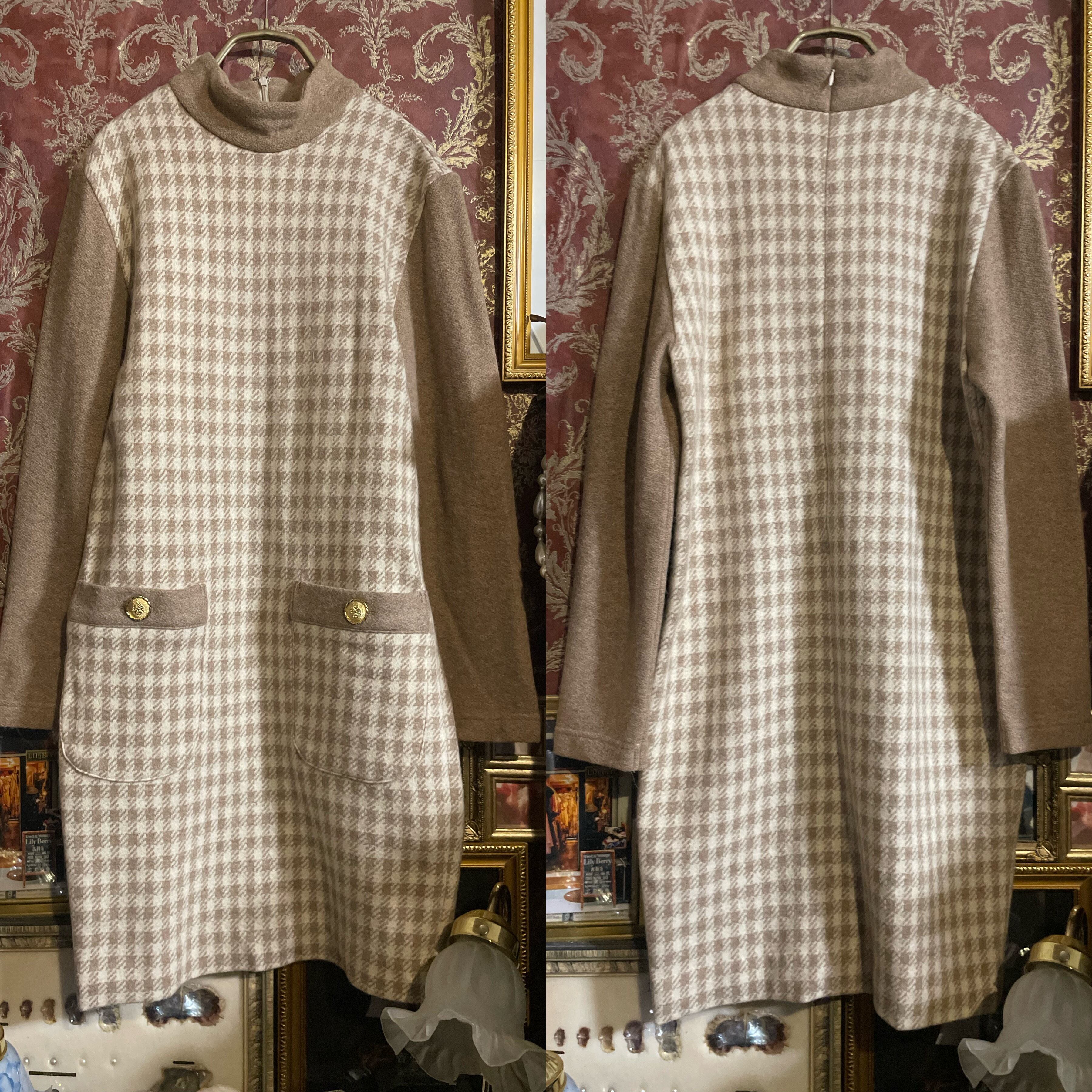 柔らかなベージュトーンでまとめられた、上品なチェック柄のヴィンテージワンピースです。