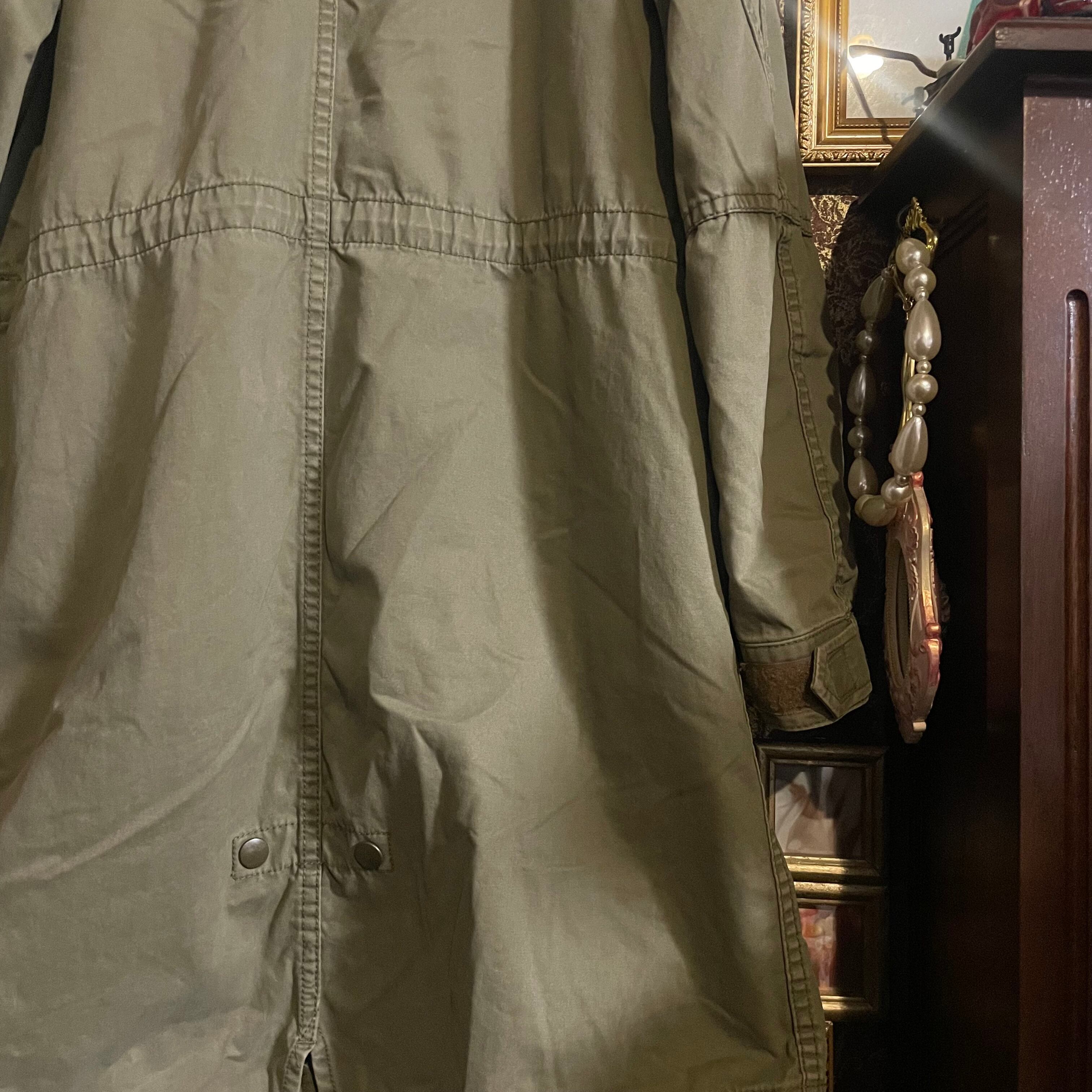 ボタンで取り外し可能なベージュのフェイクファーライナー付きで、秋から真冬まで長く活躍してくれます。