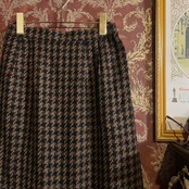 上品なダークブラウン×ブラックの千鳥格子柄のウールセットアップです。