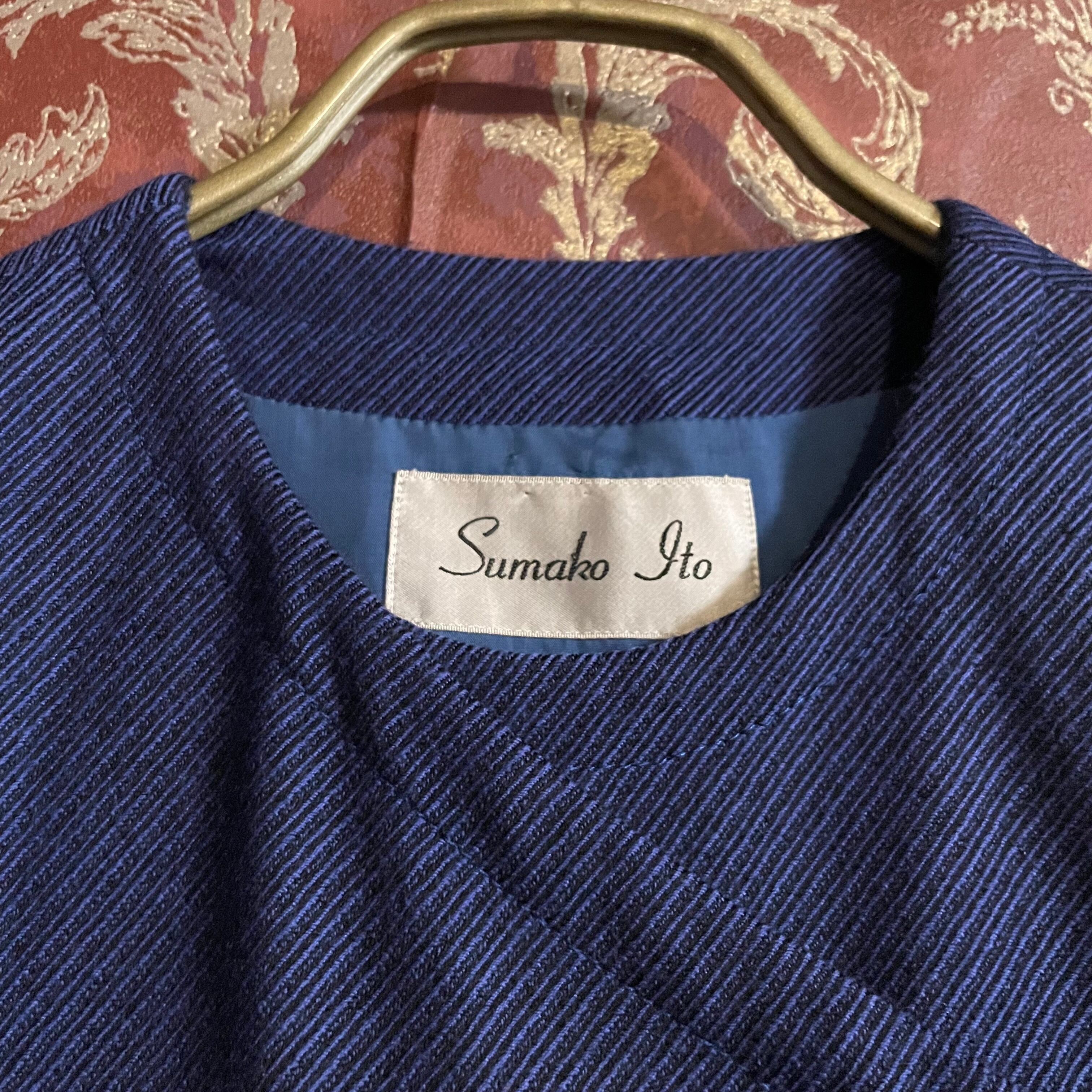 深いネイビーブルーに、さりげない細ストライプが入ったヴィンテージワンピースです。