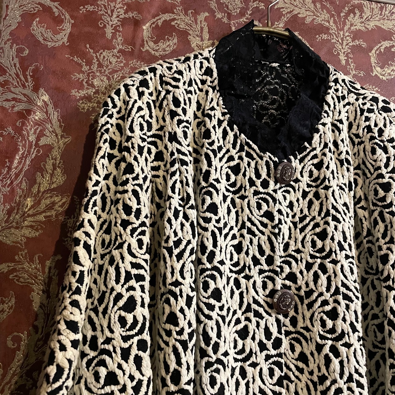 立体的で重厚感のある厚手レースがたっぷり使われた、存在感抜群のケープです。