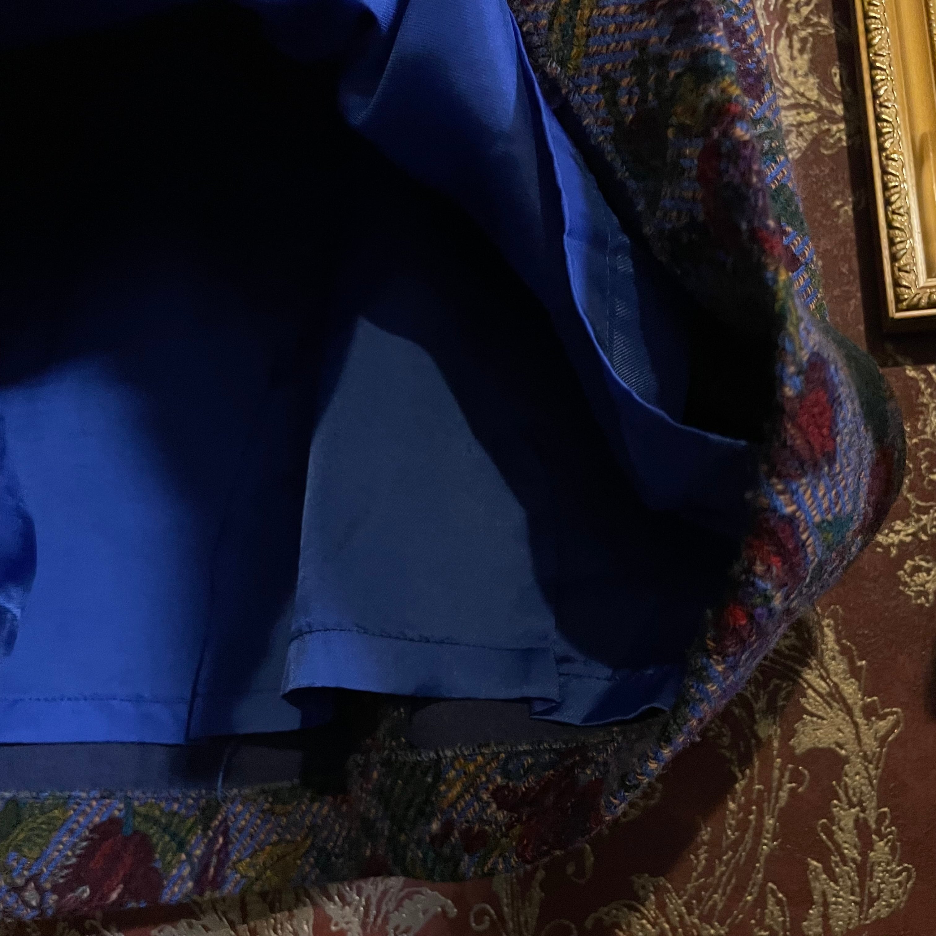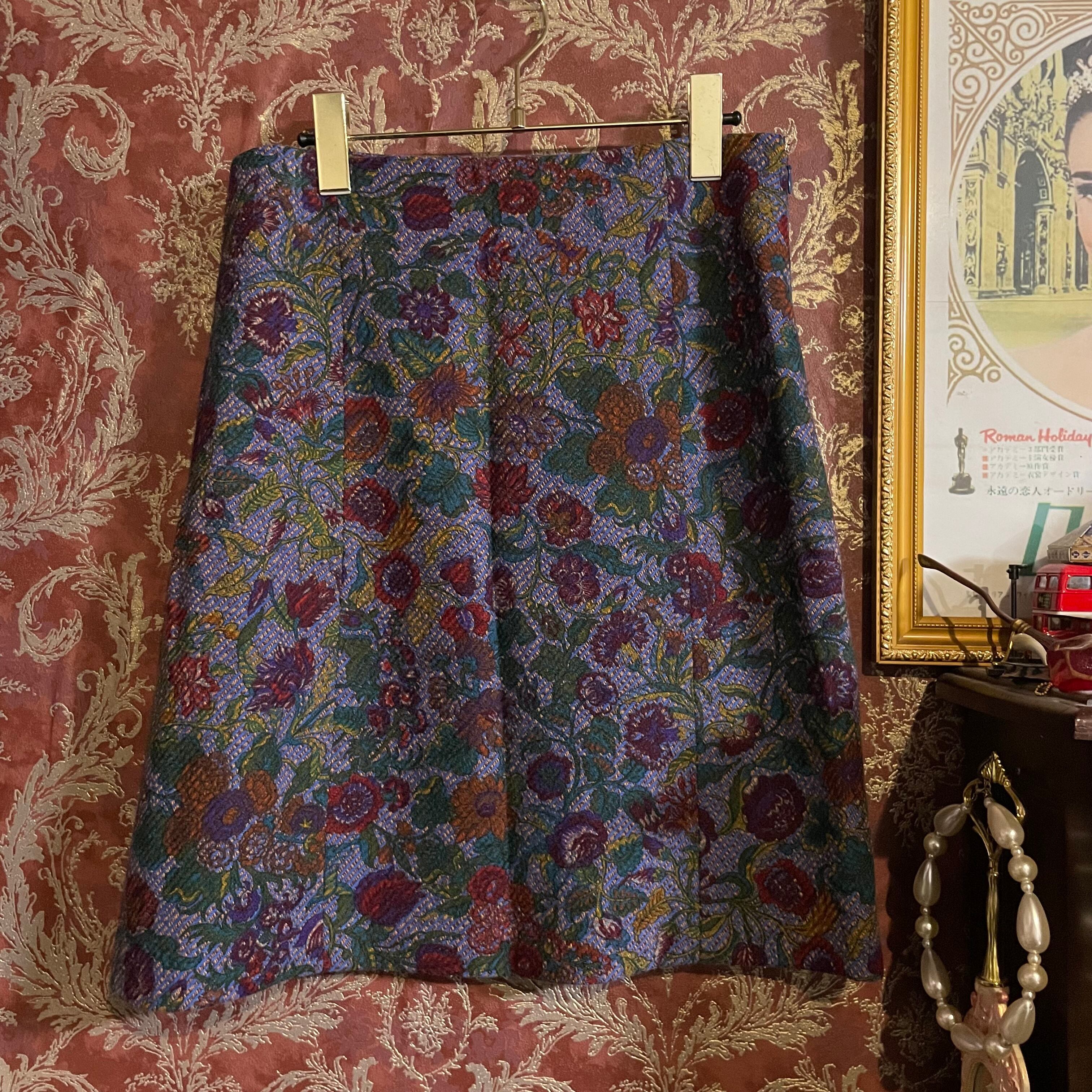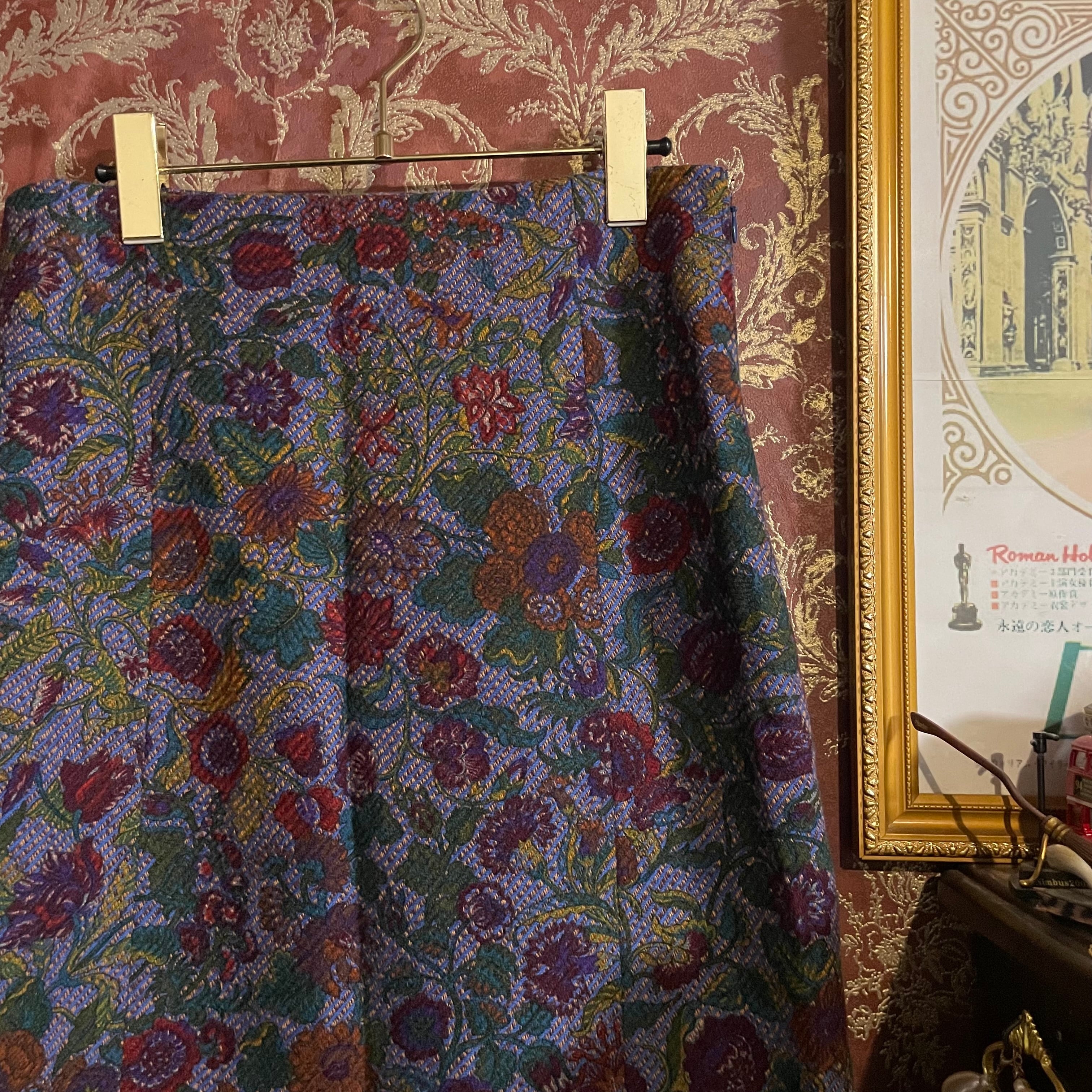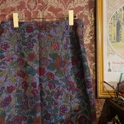 深い色味と重厚感のある花柄が主役の、アートピースのようなヴィンテージセットアップです。
