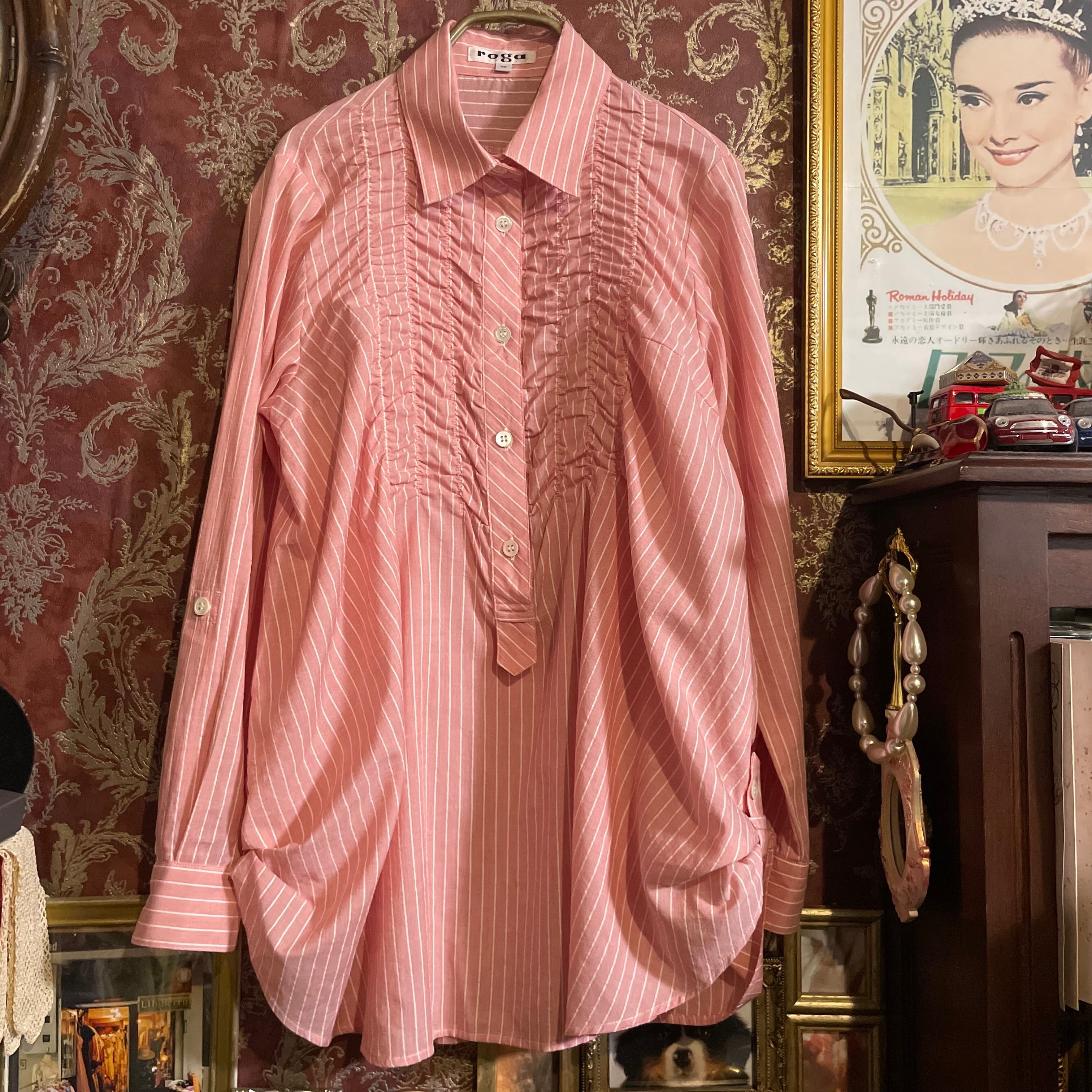 優しいピンクカラーに細かなストライプを合わせた、上品でクラシックな雰囲気のシャツです。