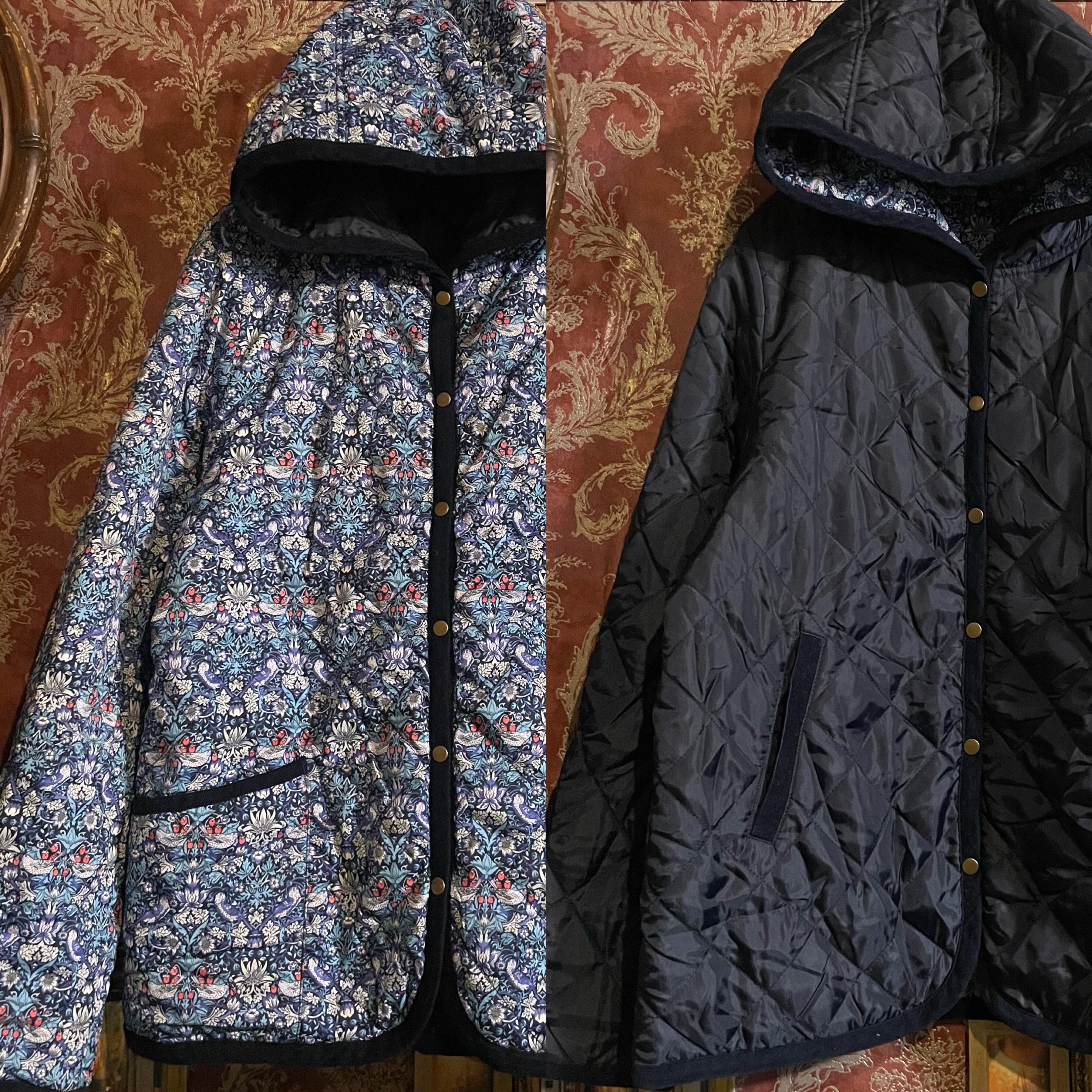 ウィリアム・モリスの名作、いちご泥棒柄を贅沢に使用した、Afternoon Tea のリバーシブルキルティングジャケットです。