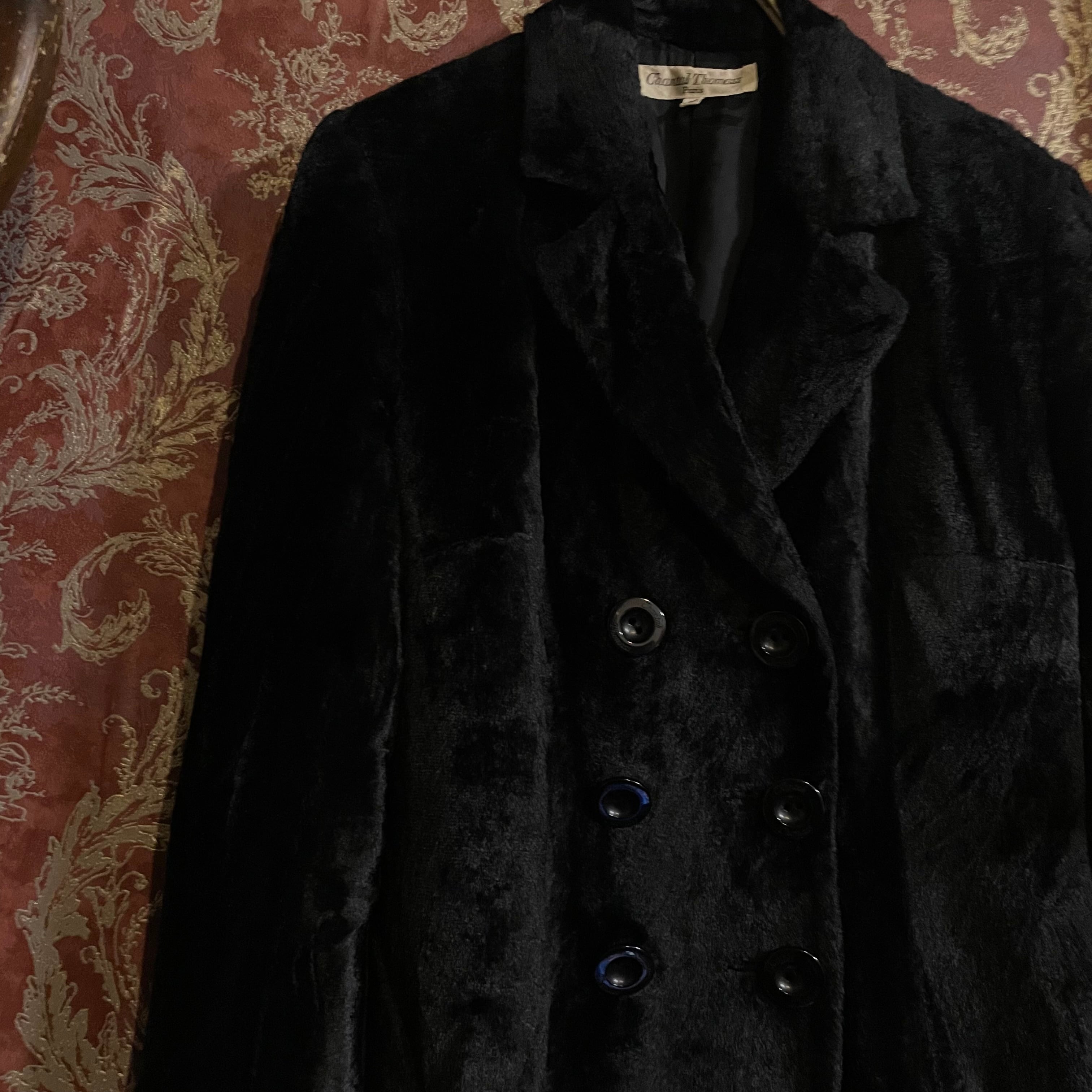 ジャケットはダブルボタンのクラシカルなデザインで、上品な光沢のあるファーが動くたびに表情を変え、シンプルながら華やかさを引き立ててくれます。