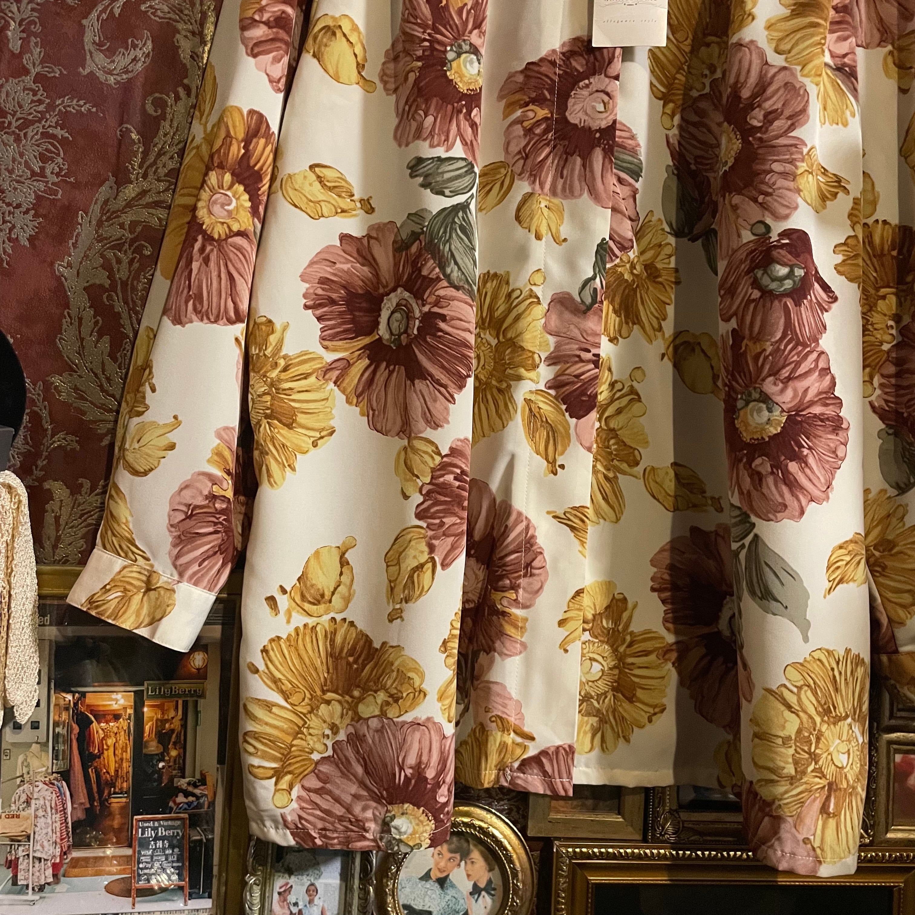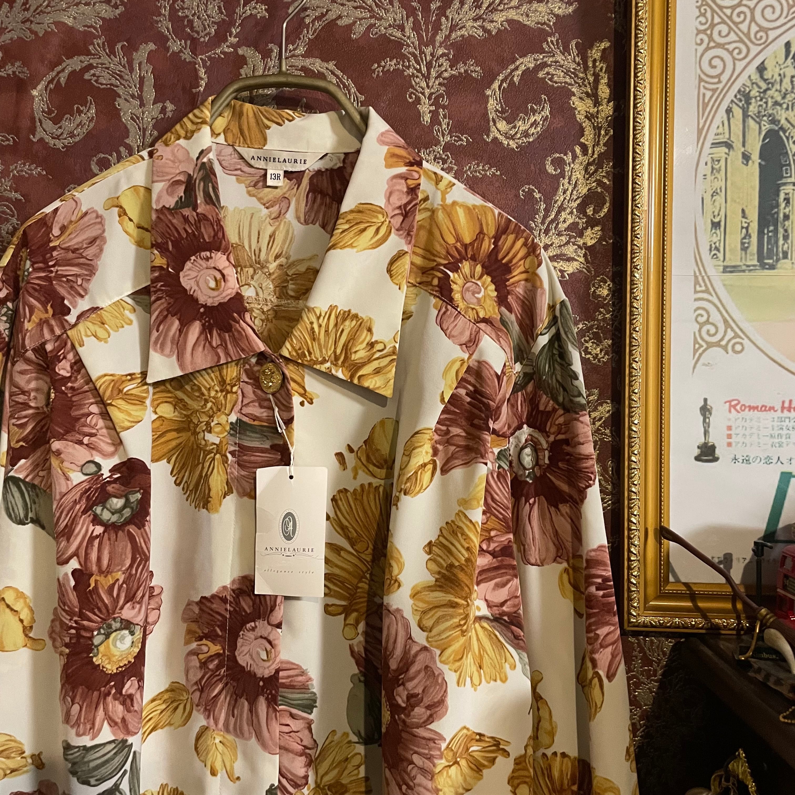 大ぶりのフラワープリントが印象的な、華やかなヴィンテージテイストのロングシャツです。