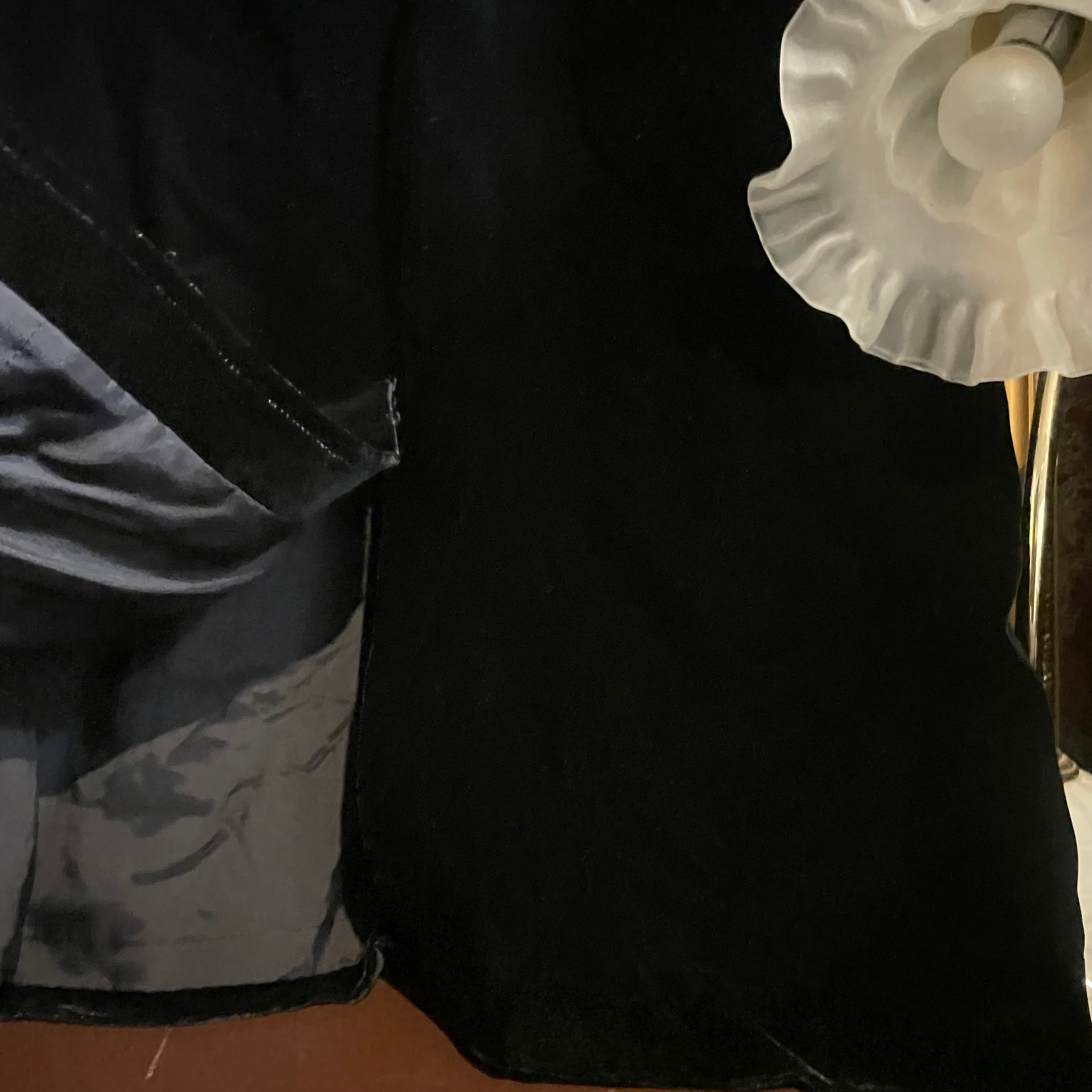肩まわりはややボリュームのあるシルエットで、重たく見えがちなベルベットに軽やかさを添えています。