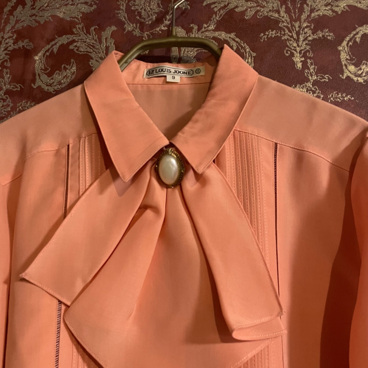 やわらかなサーモンピンクカラー(#ed9885)が印象的なヴィンテージブラウスです。