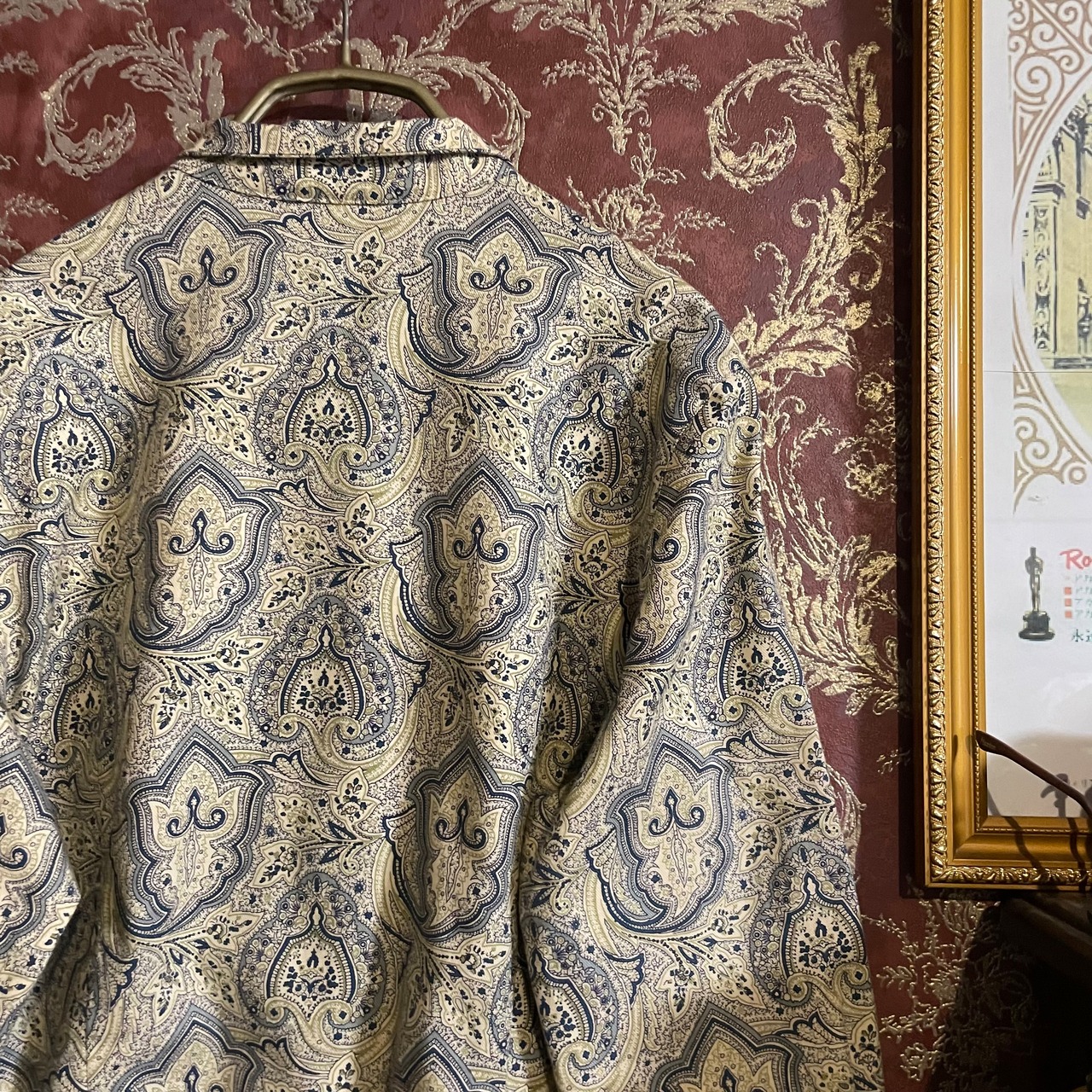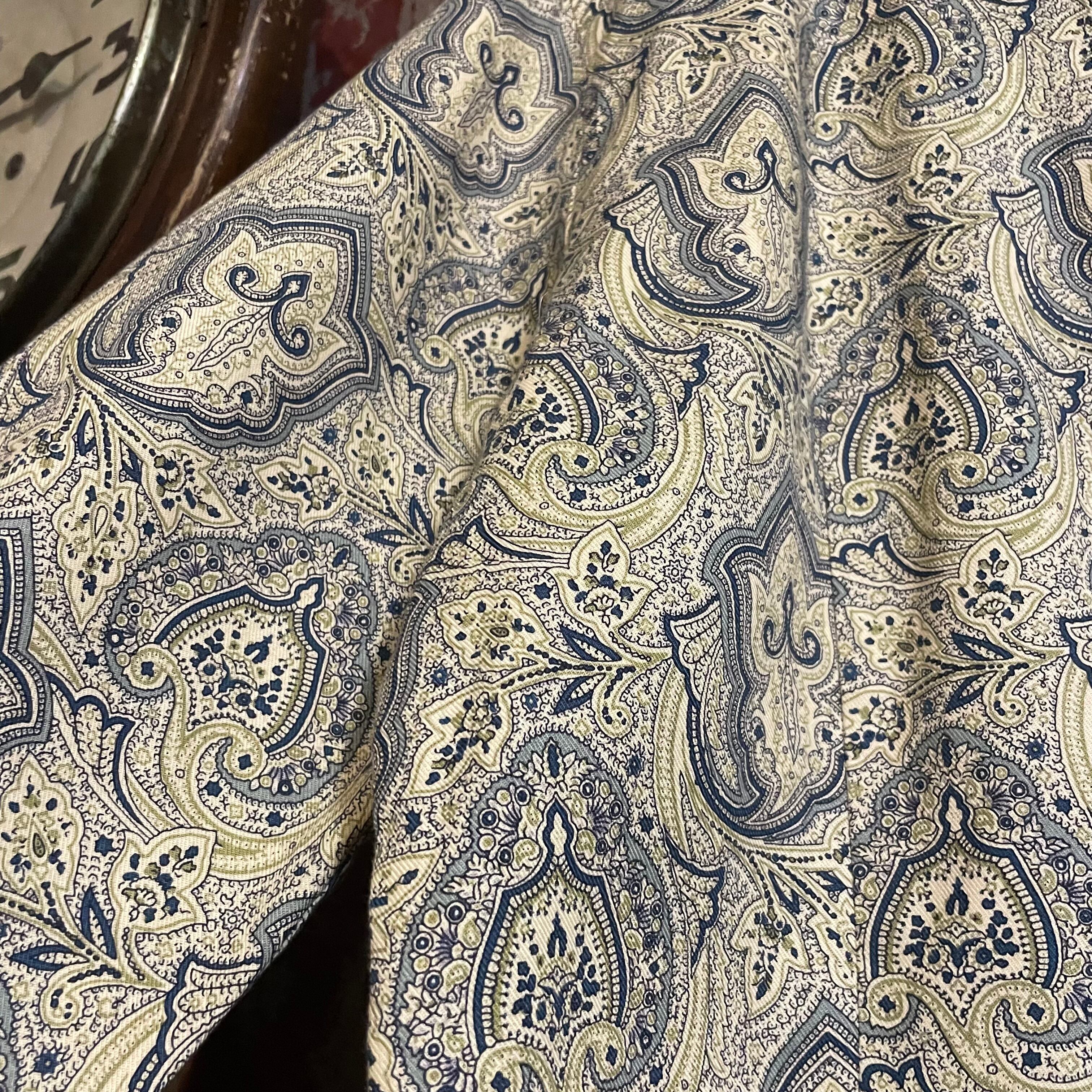 生成りをベースに、落ち着いたブルーのペイズリー柄のブラウスです。