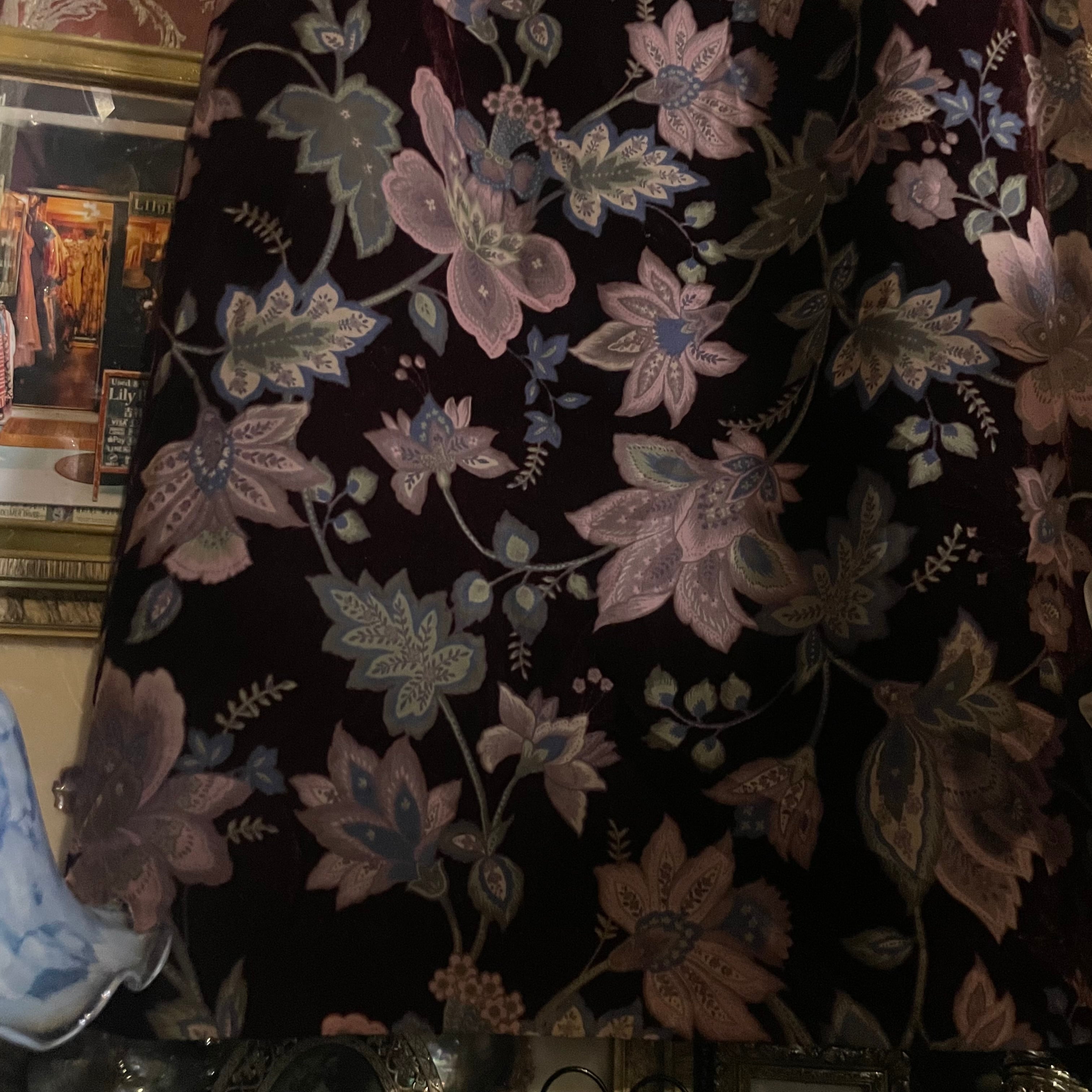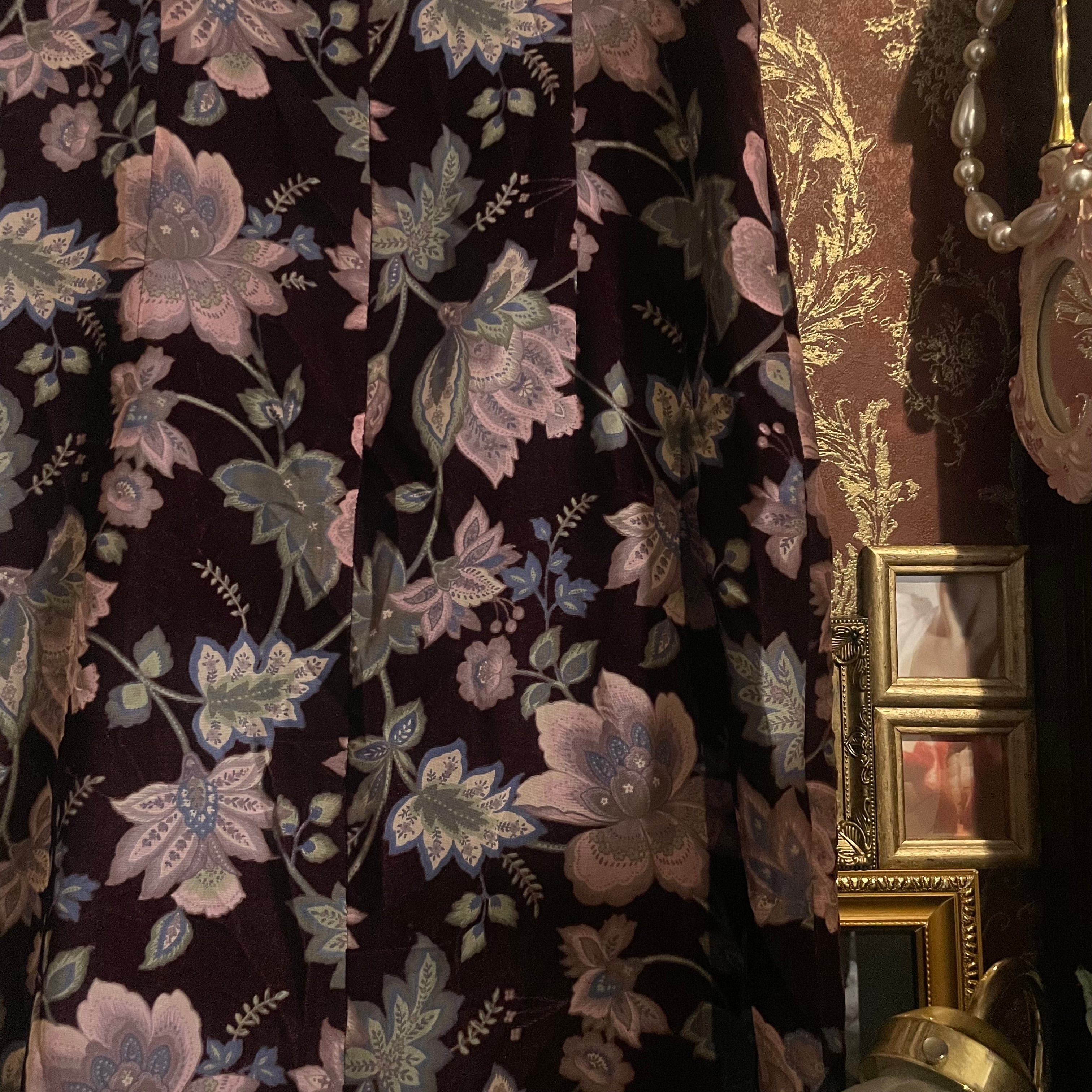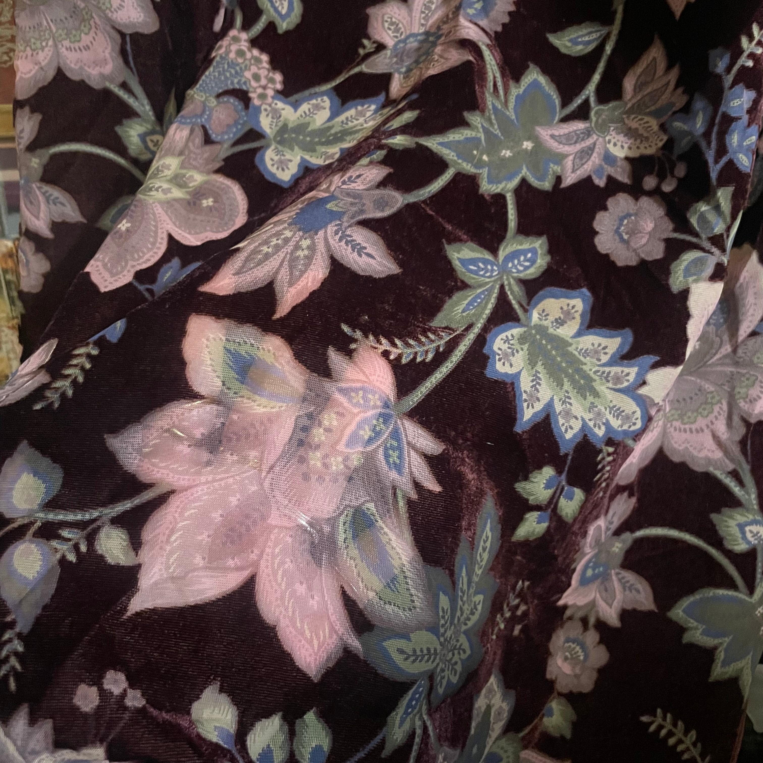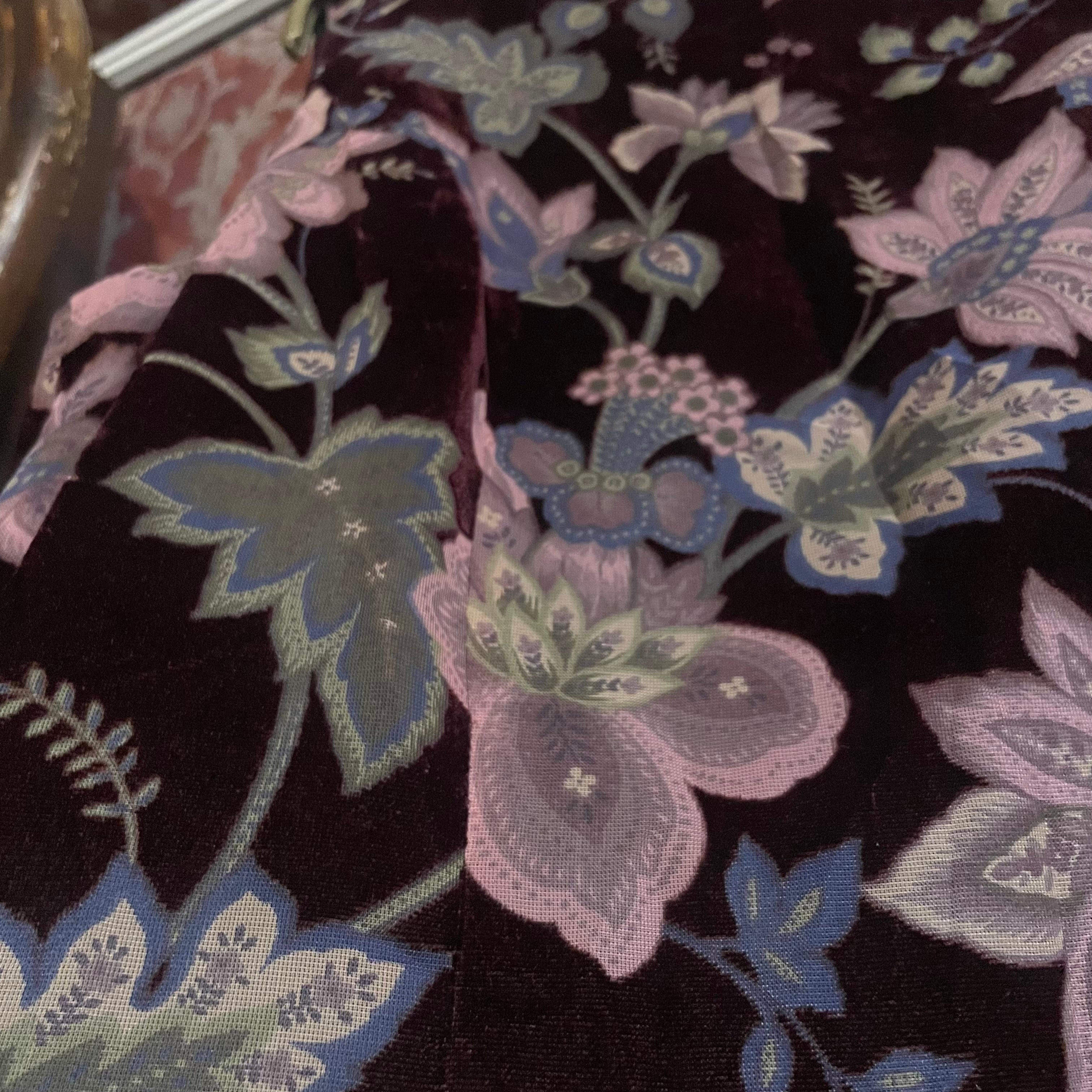 ベース生地はベルベットで、わずかに起毛感のある質感が柄に奥行きを与えています。