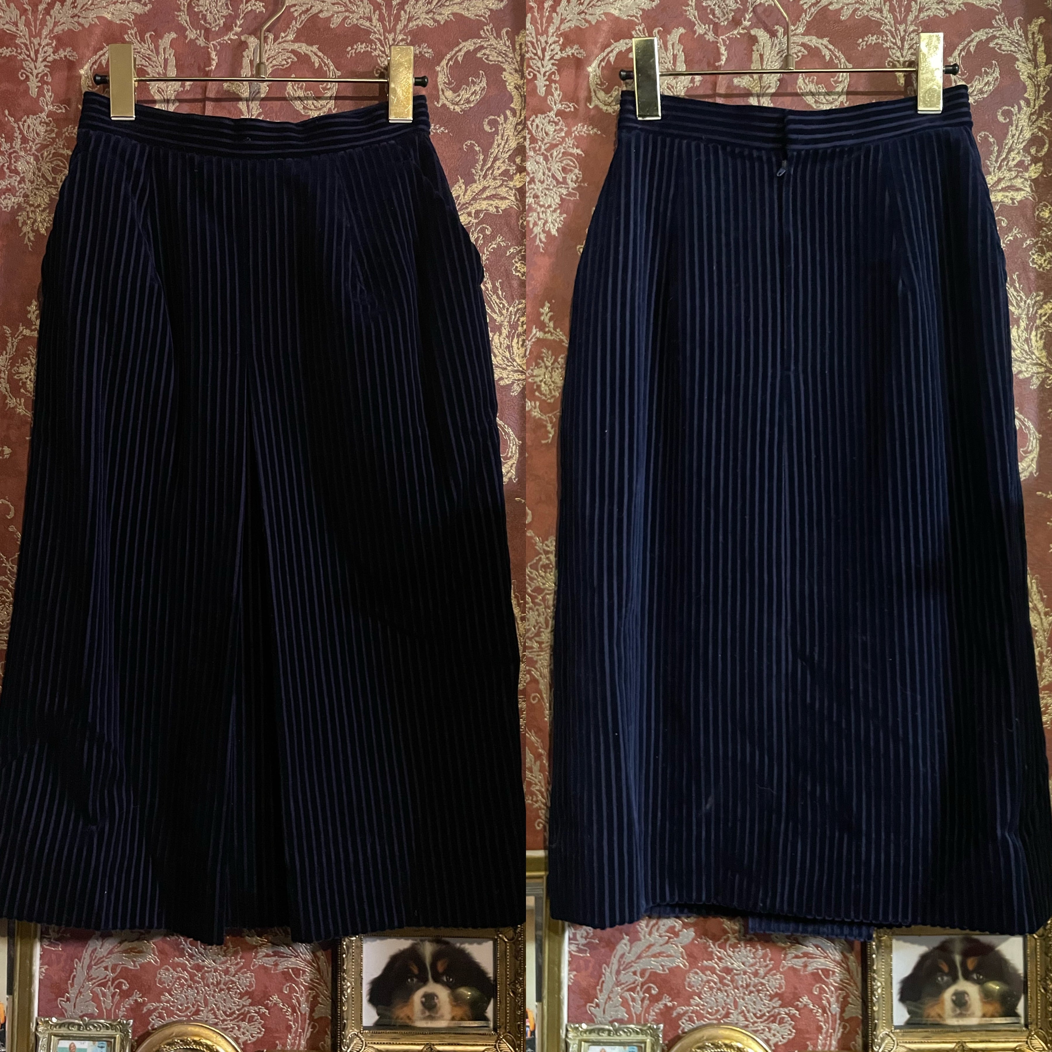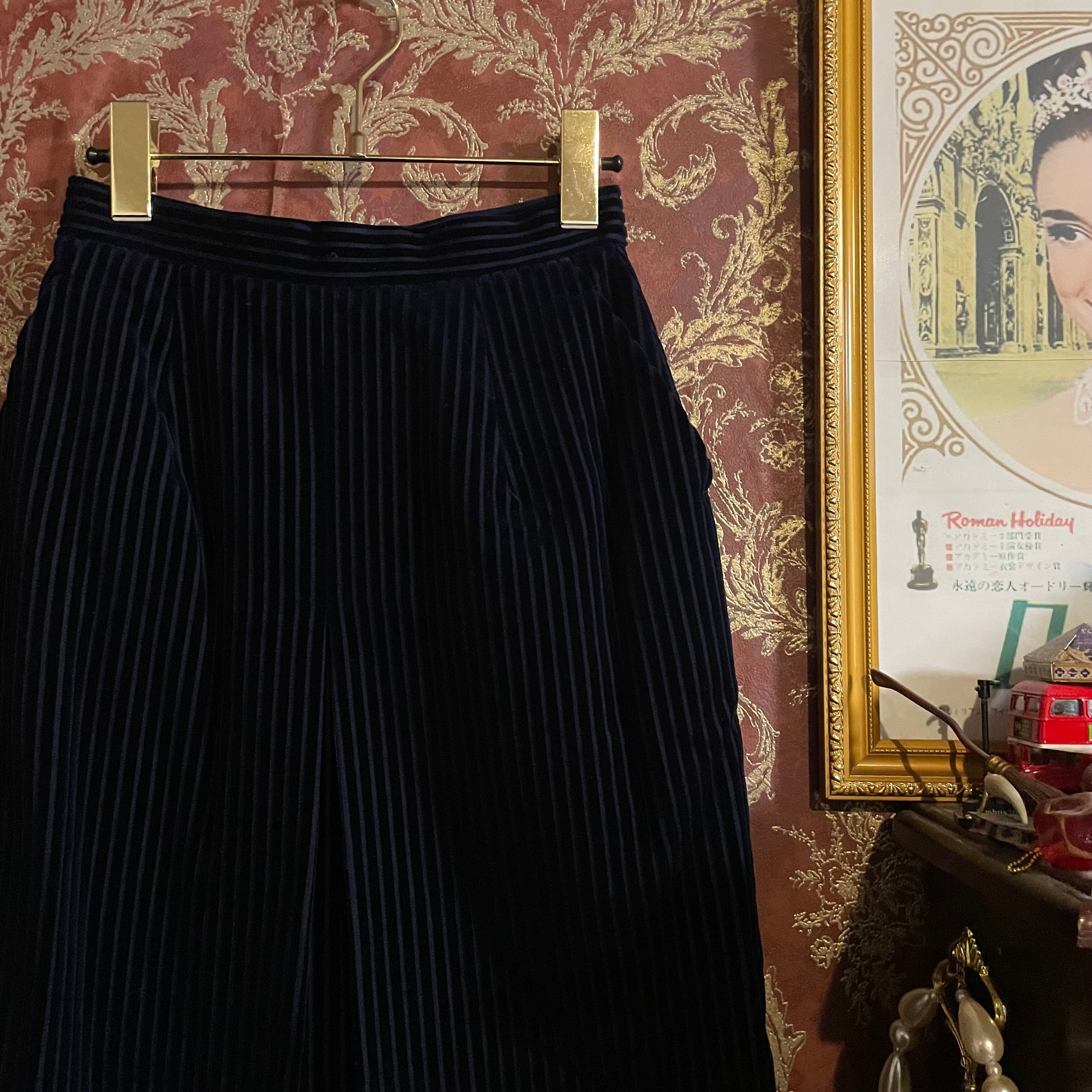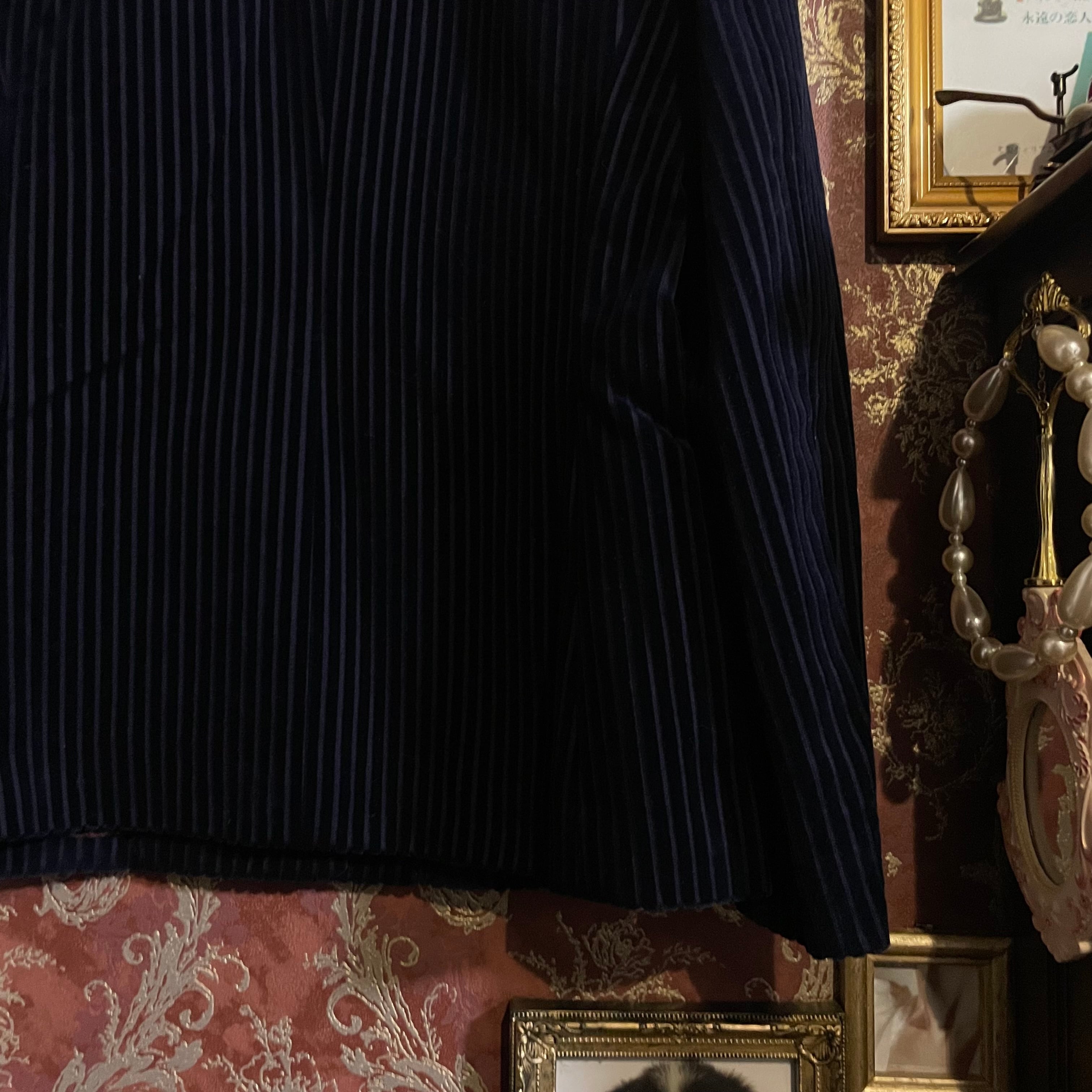 スカートは縦ラインを強調するストライプ柄のストレートシルエットです。
