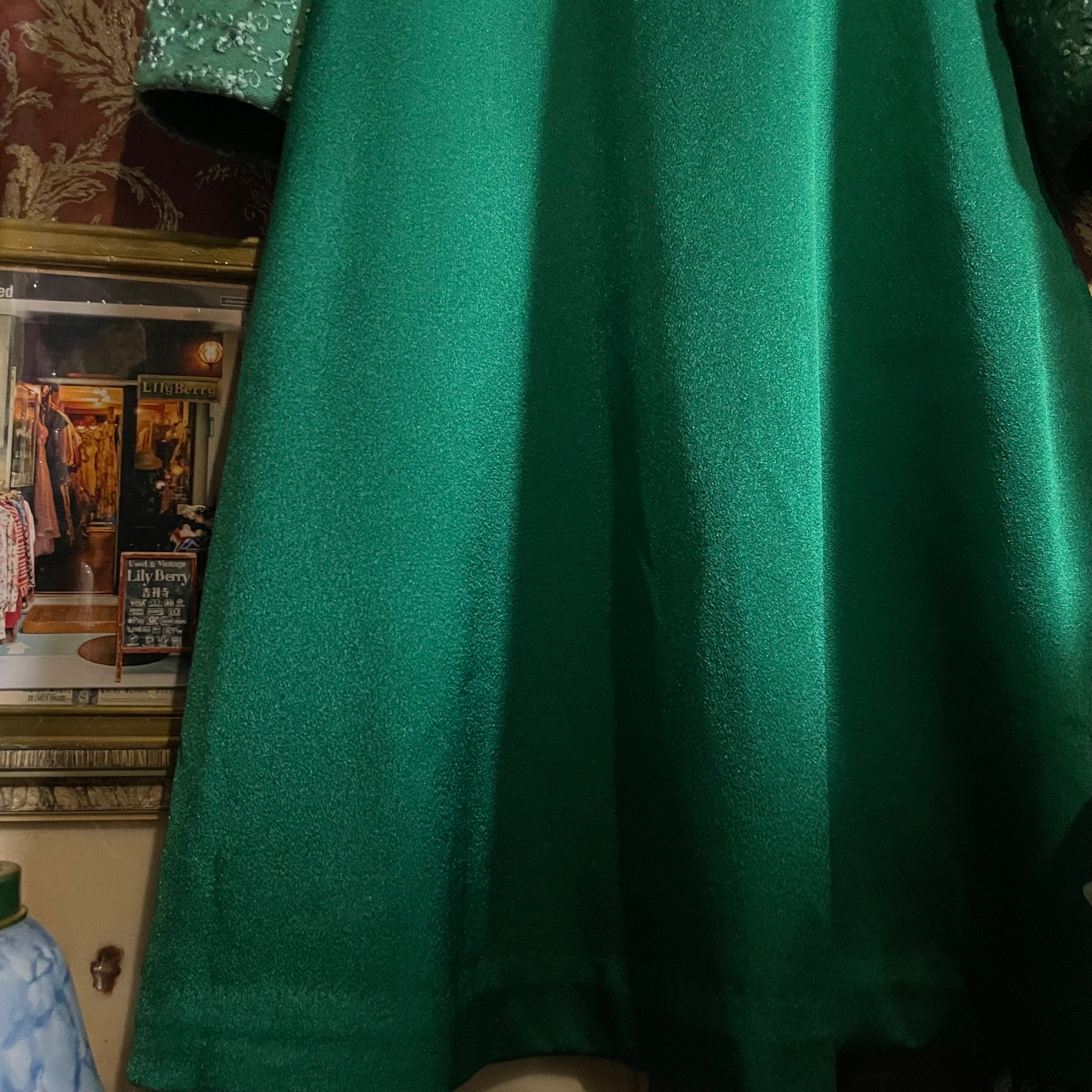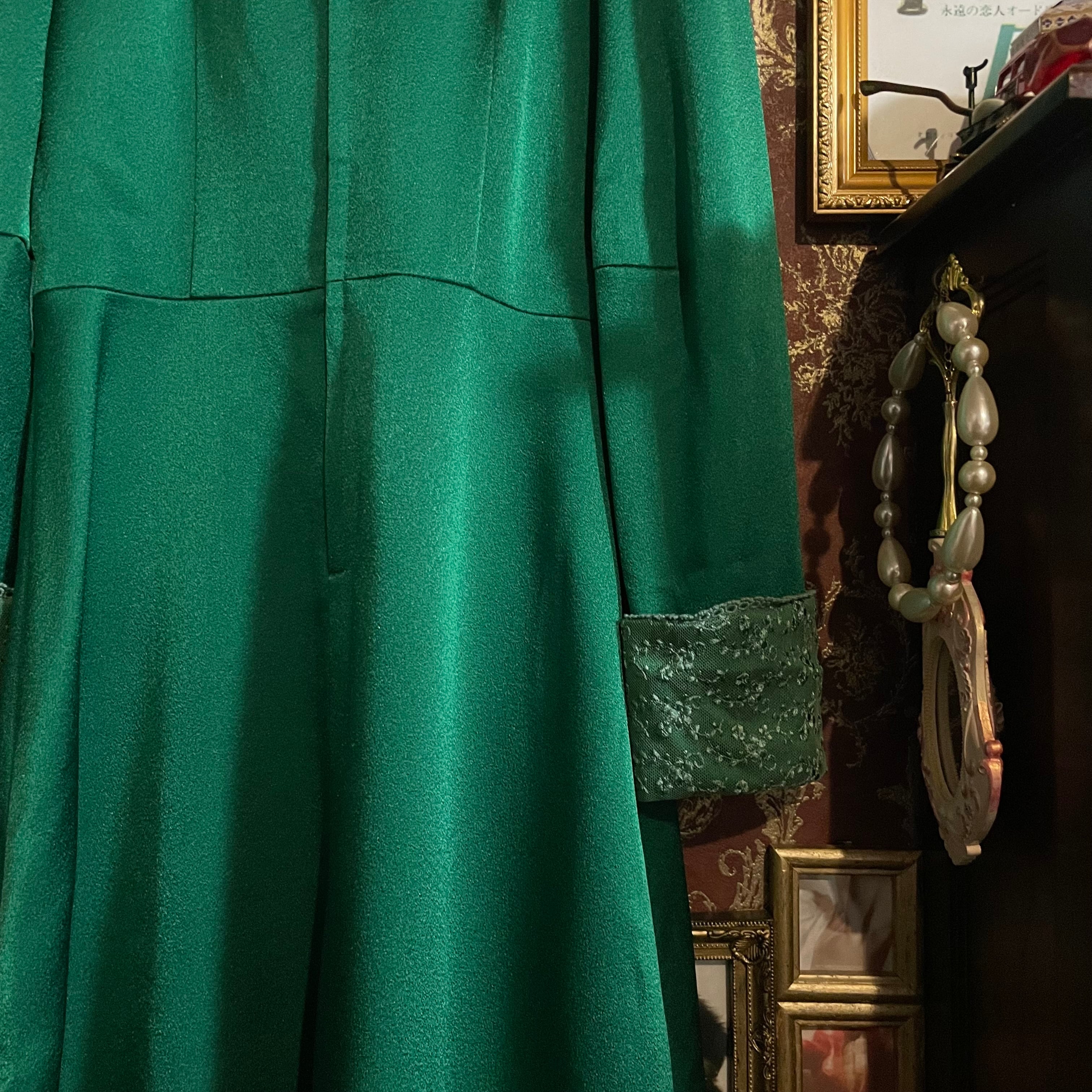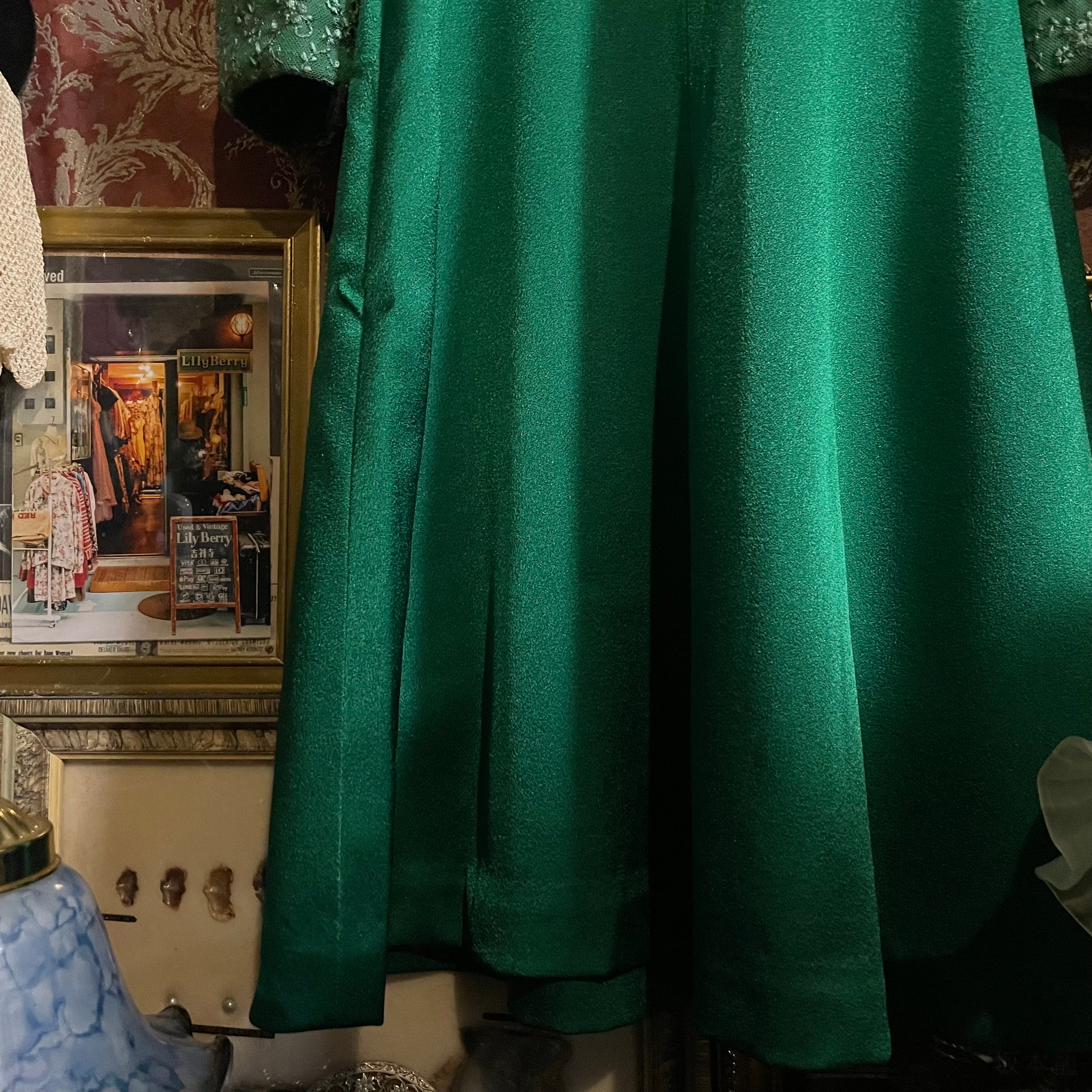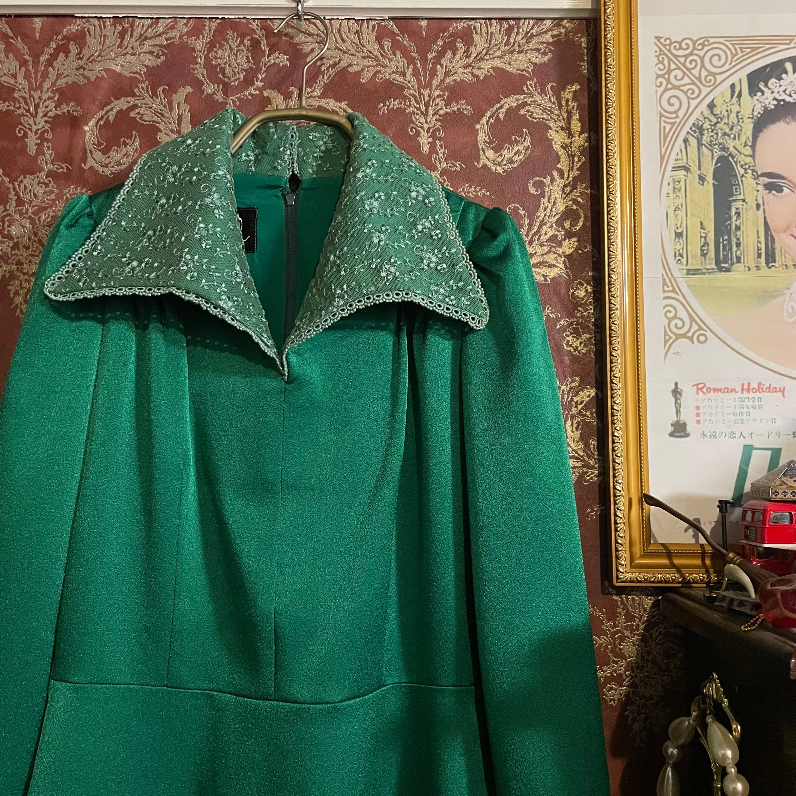 深みのあるグリーンが印象的なヴィンテージドレスです。