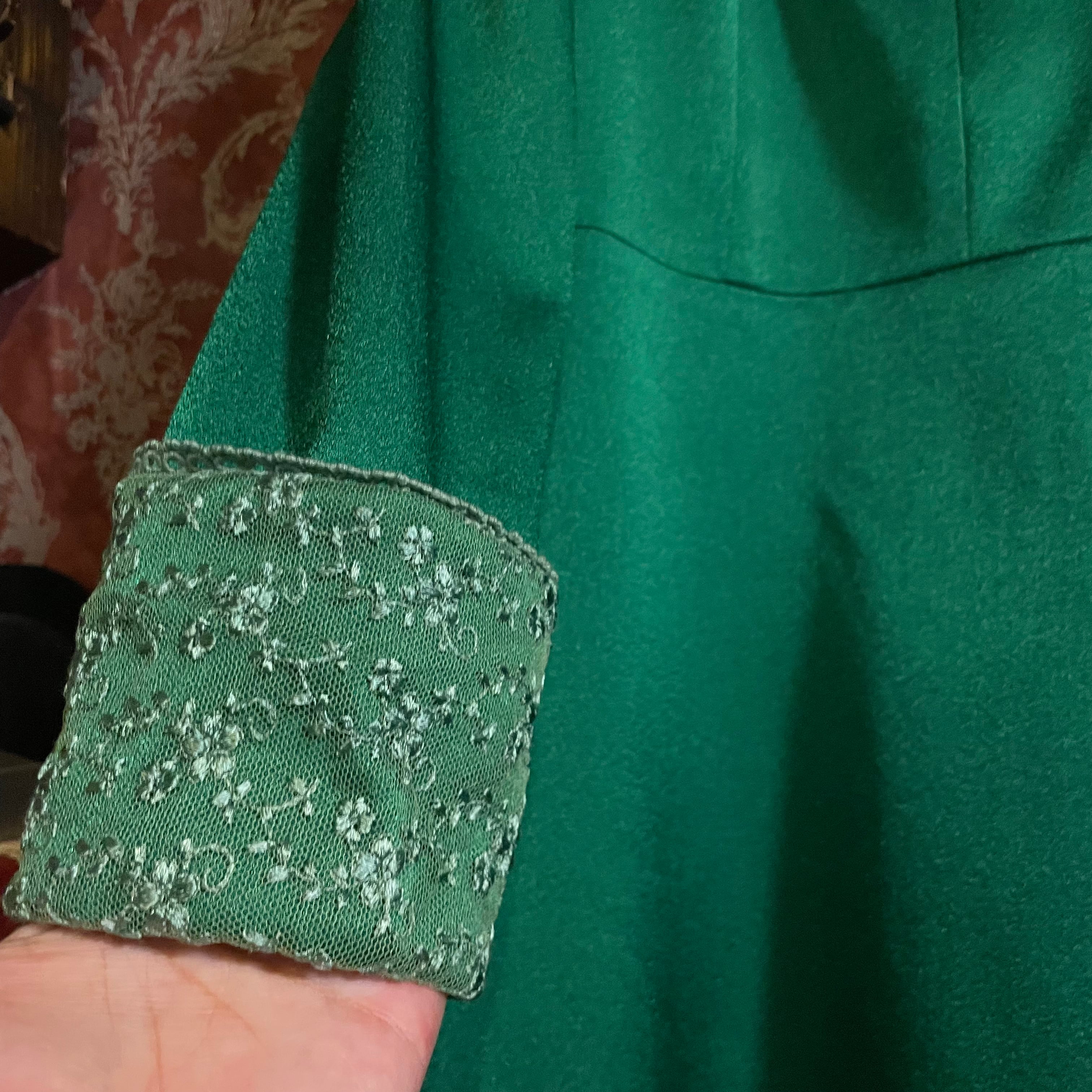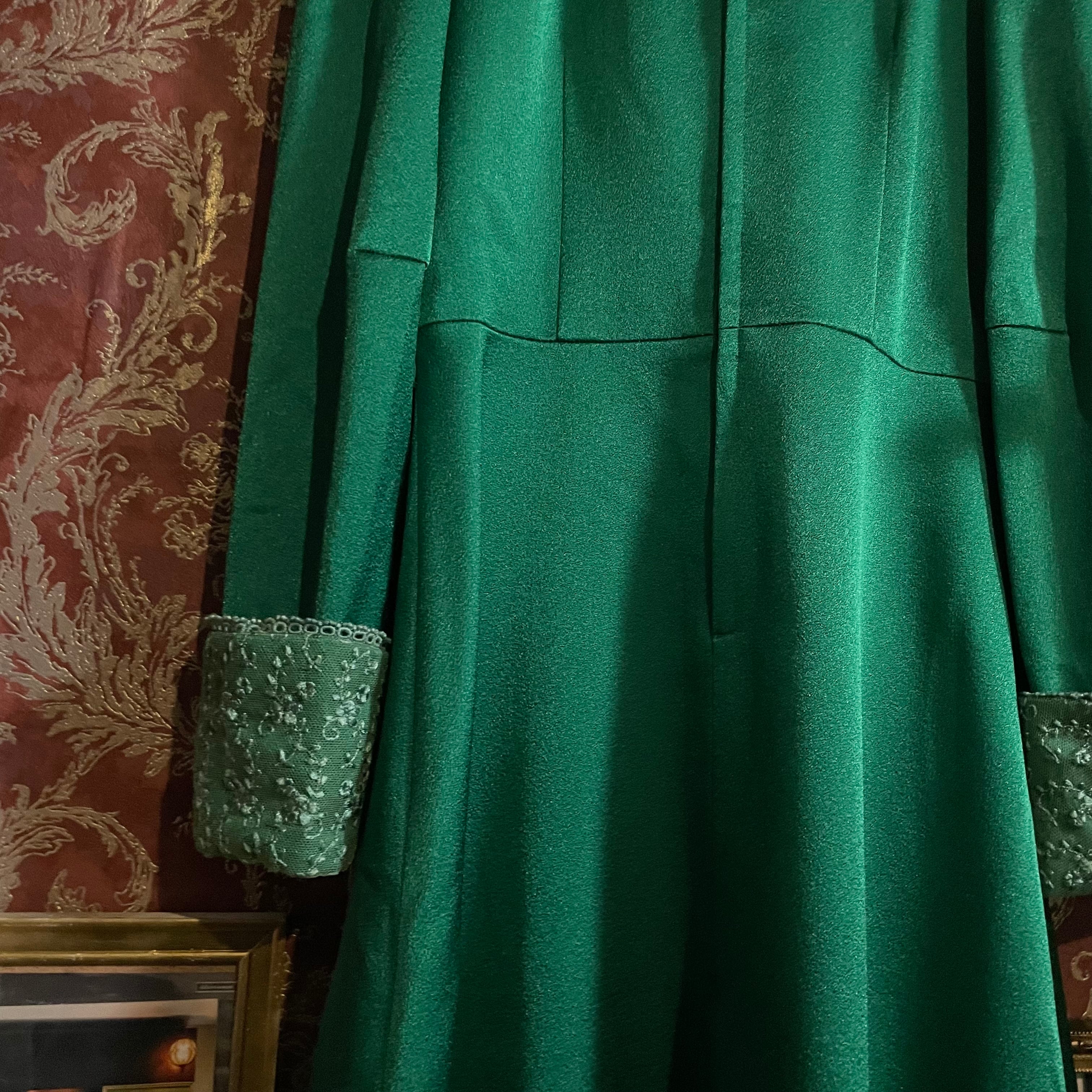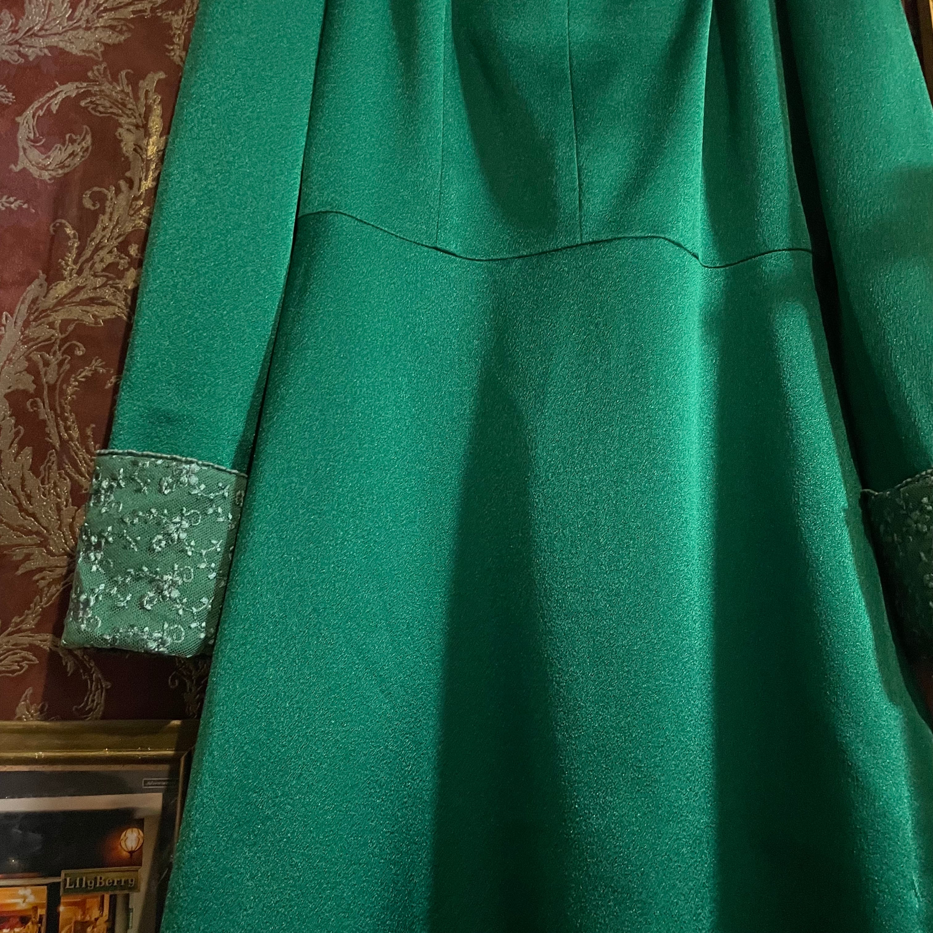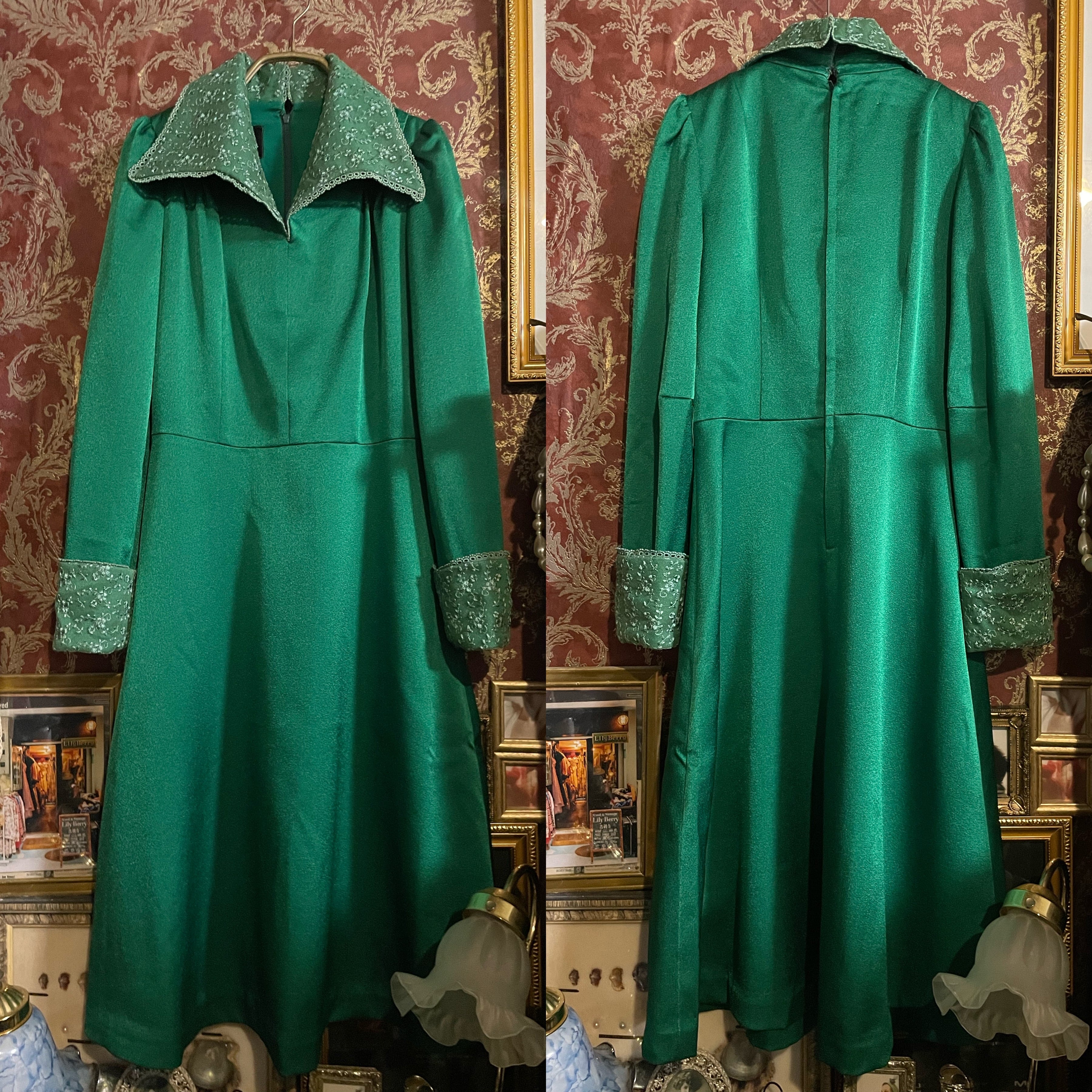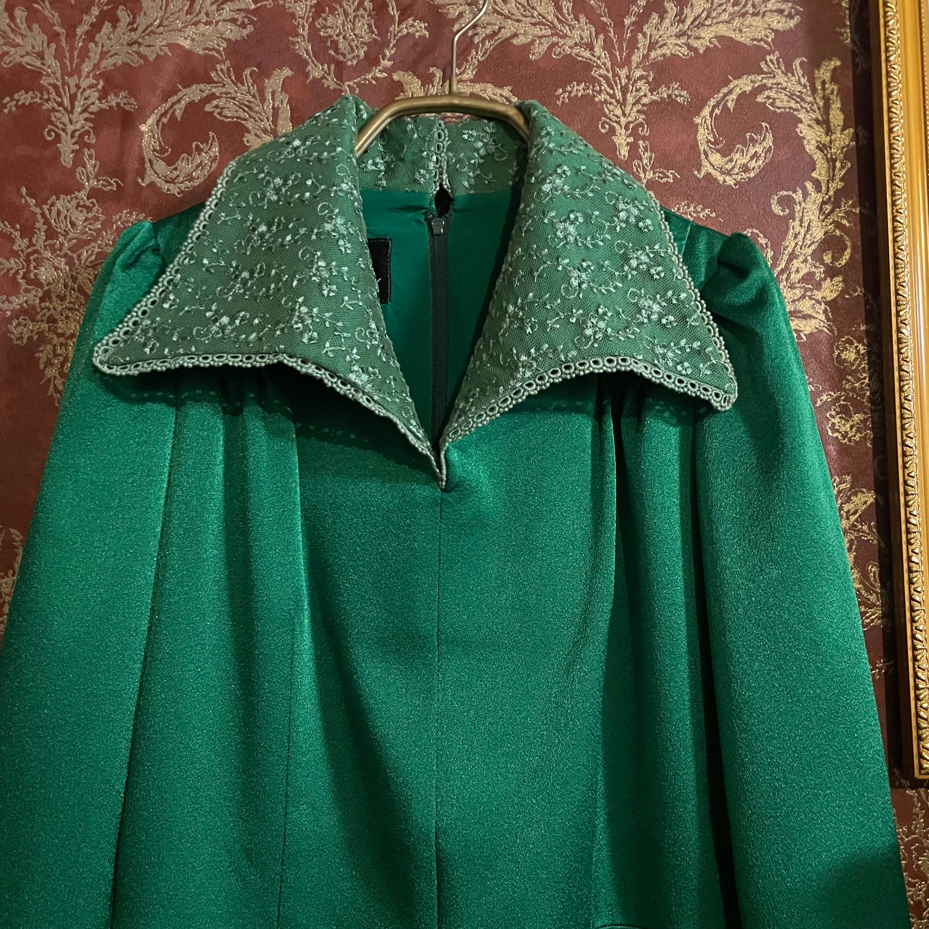 深みのあるグリーンが印象的なヴィンテージドレスです。