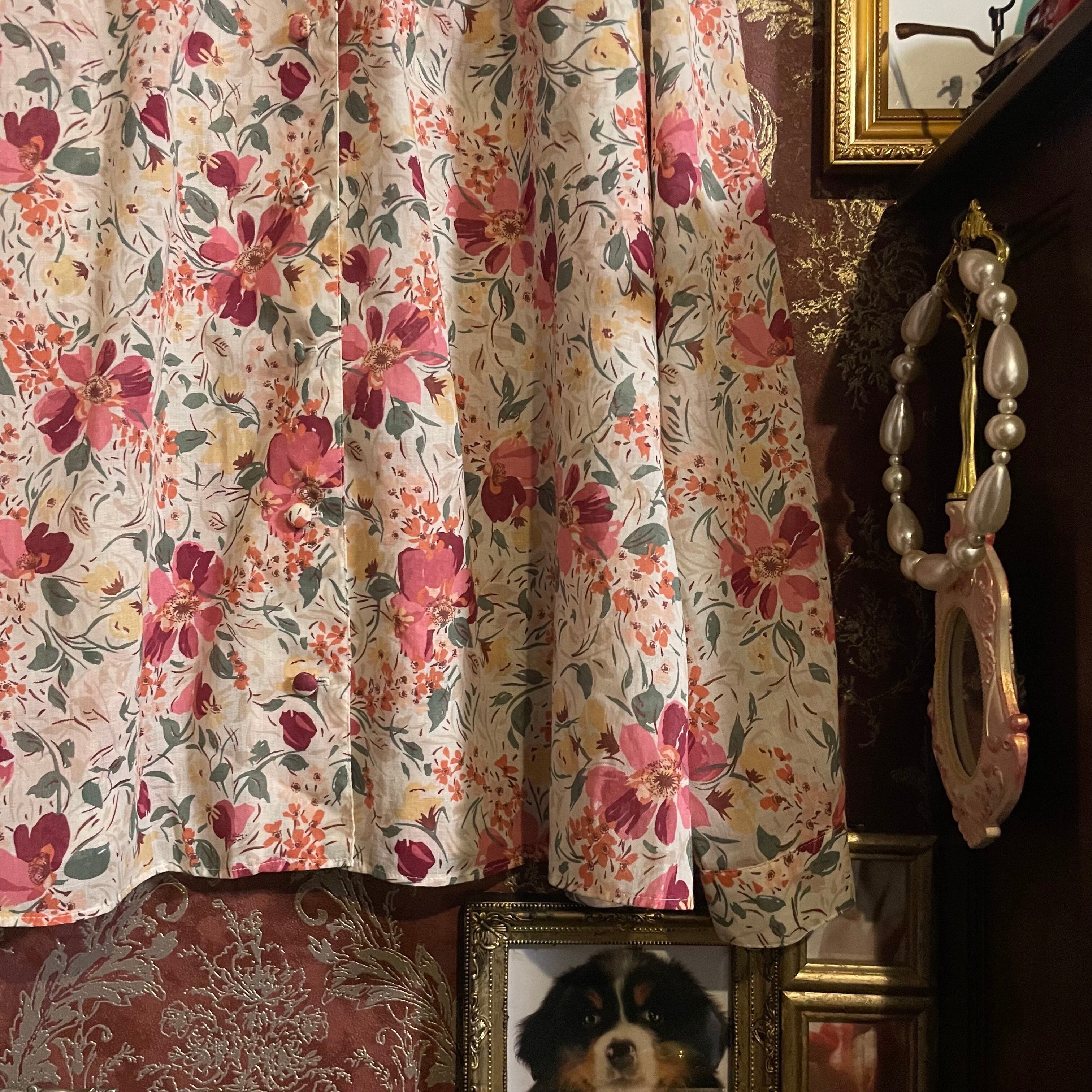 ピンクやコーラルを基調としたフローラルプリントが、ナチュラルで上品な印象です。