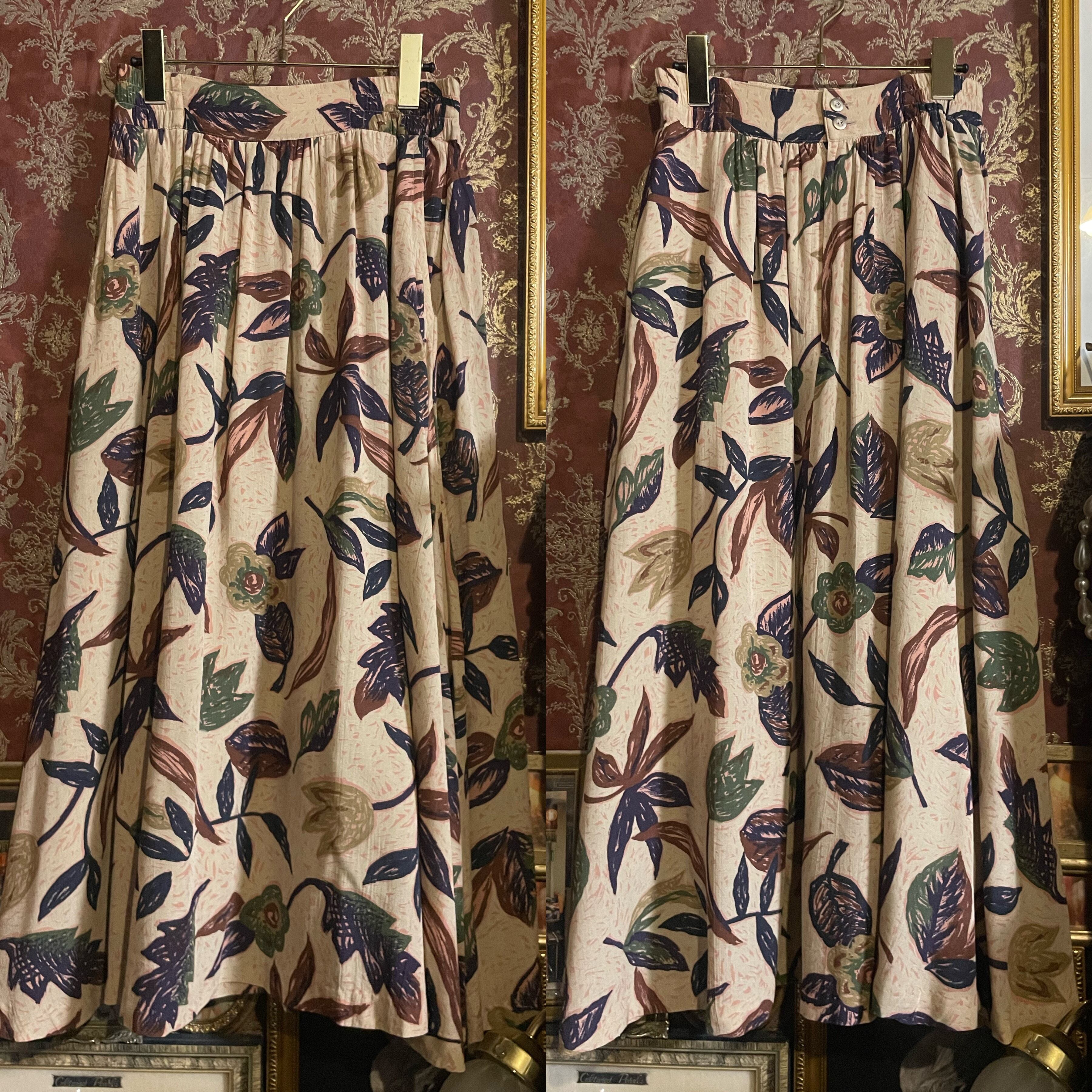スカートはウエストゴム仕様で、自然なドレープが生まれ、動くたびに柄の表情が変わります。