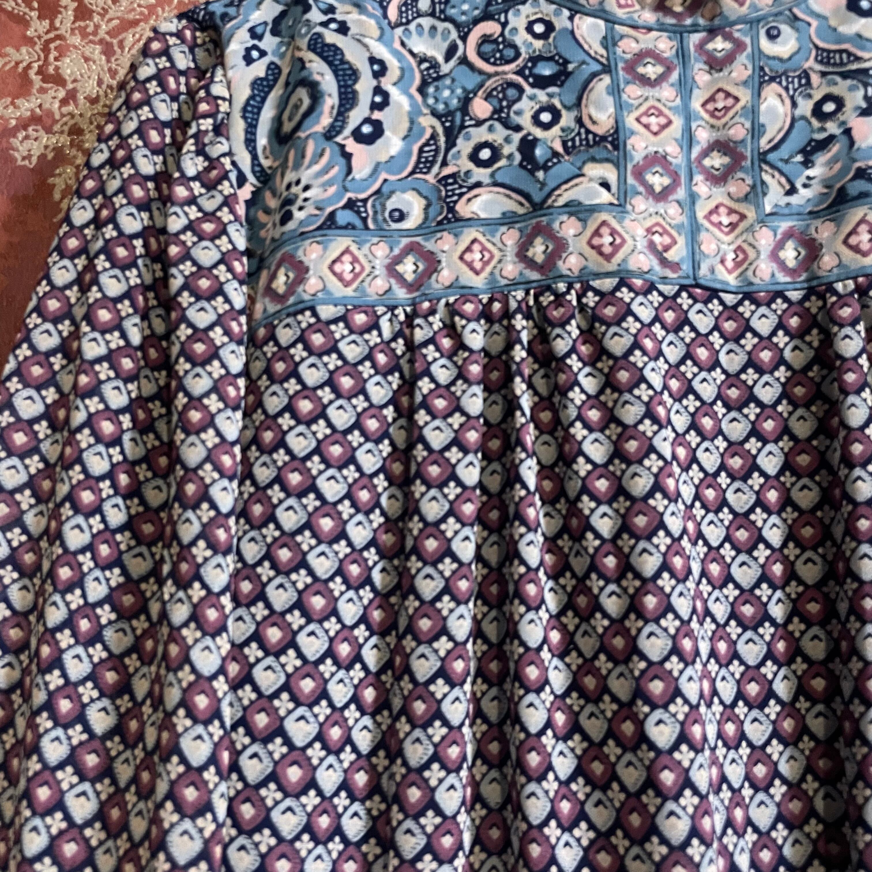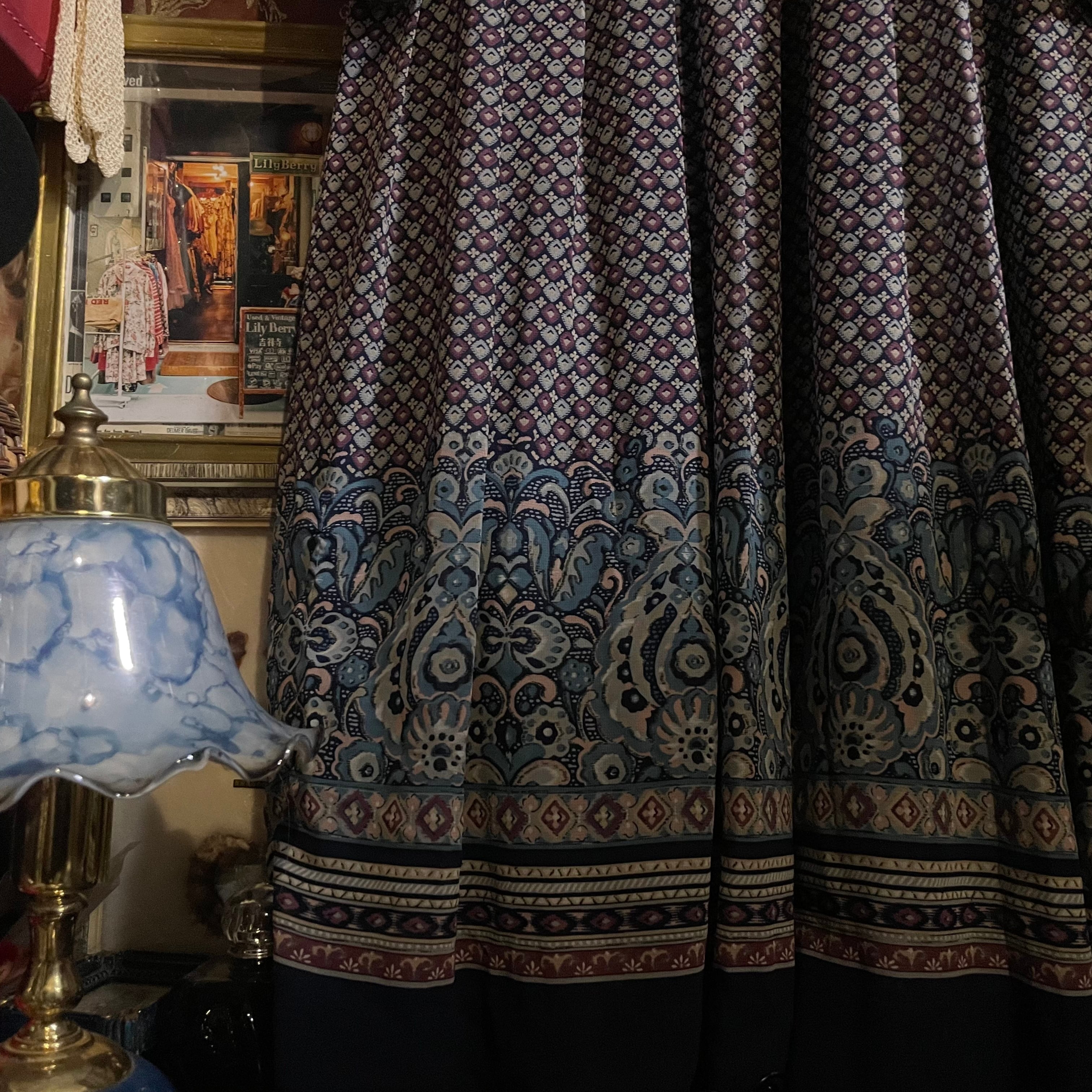 ヨーロッパのアンティークファブリックを思わせる、クラシカルな総柄ヴィンテージワンピースです。