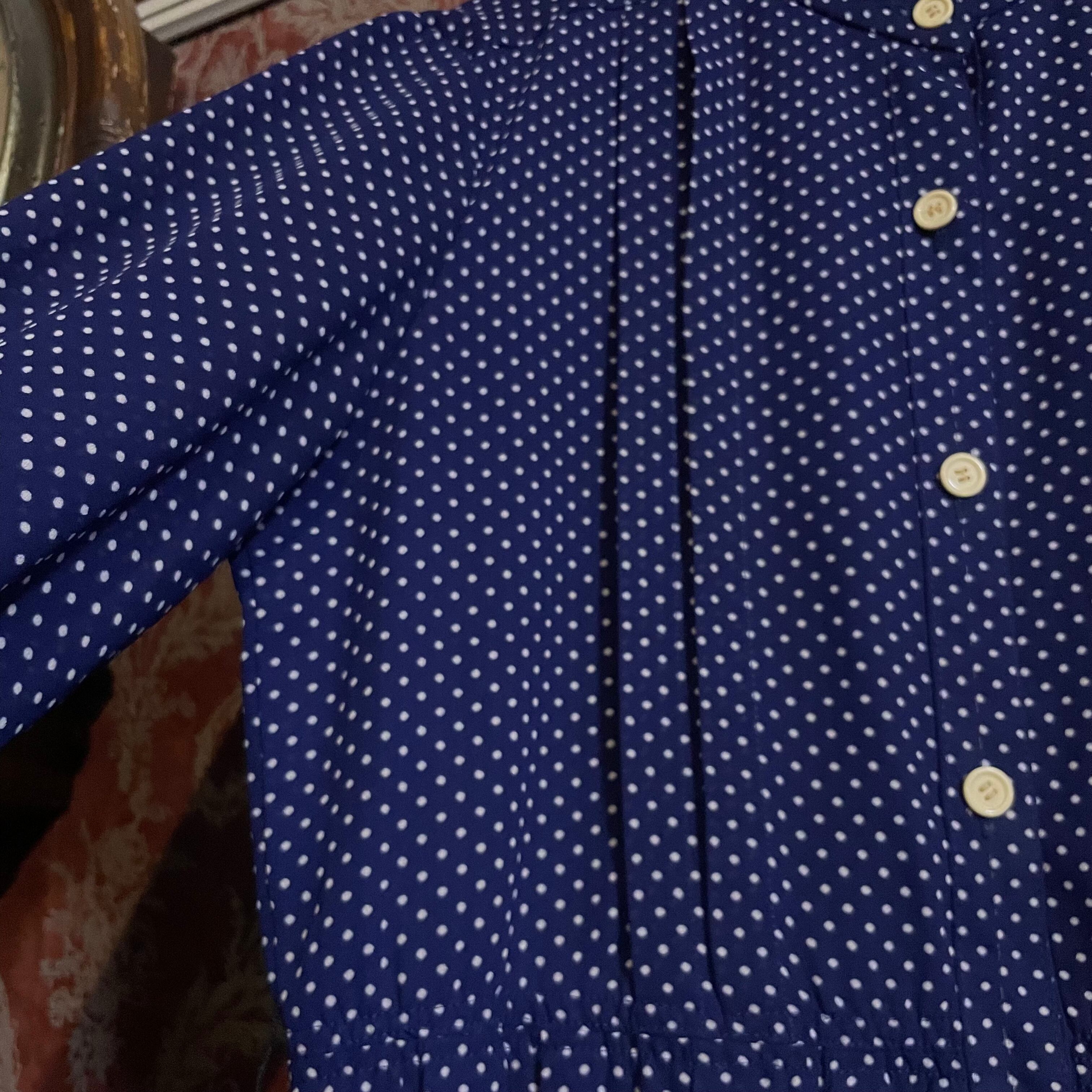 ブルーネイビー(#29214d)に、繊細なホワイトドットが映えるワンピースです。