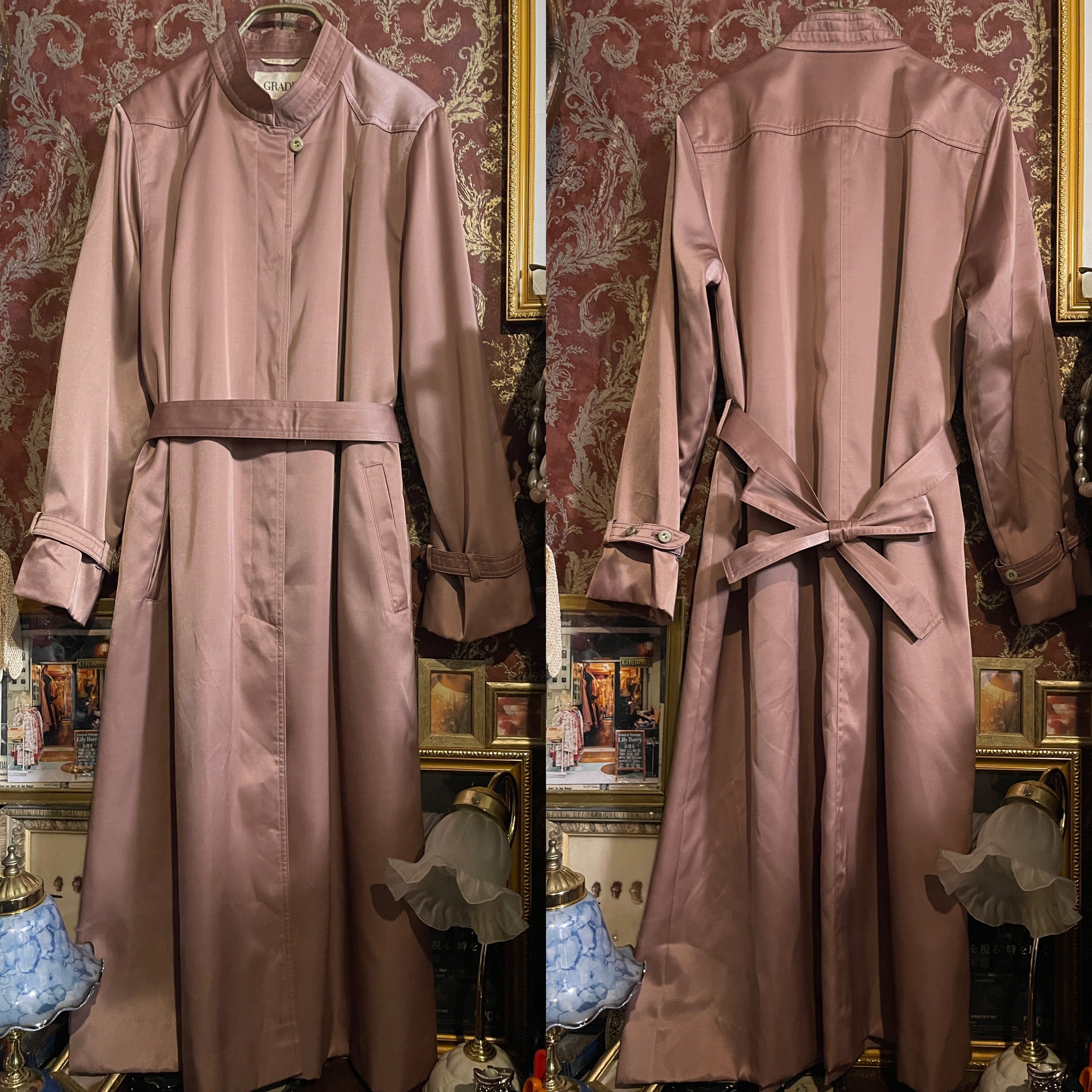 ニュアンスをまとった、落ち着きのあるヌーディなルージュピンク(#AD7D83)のロングコートです。