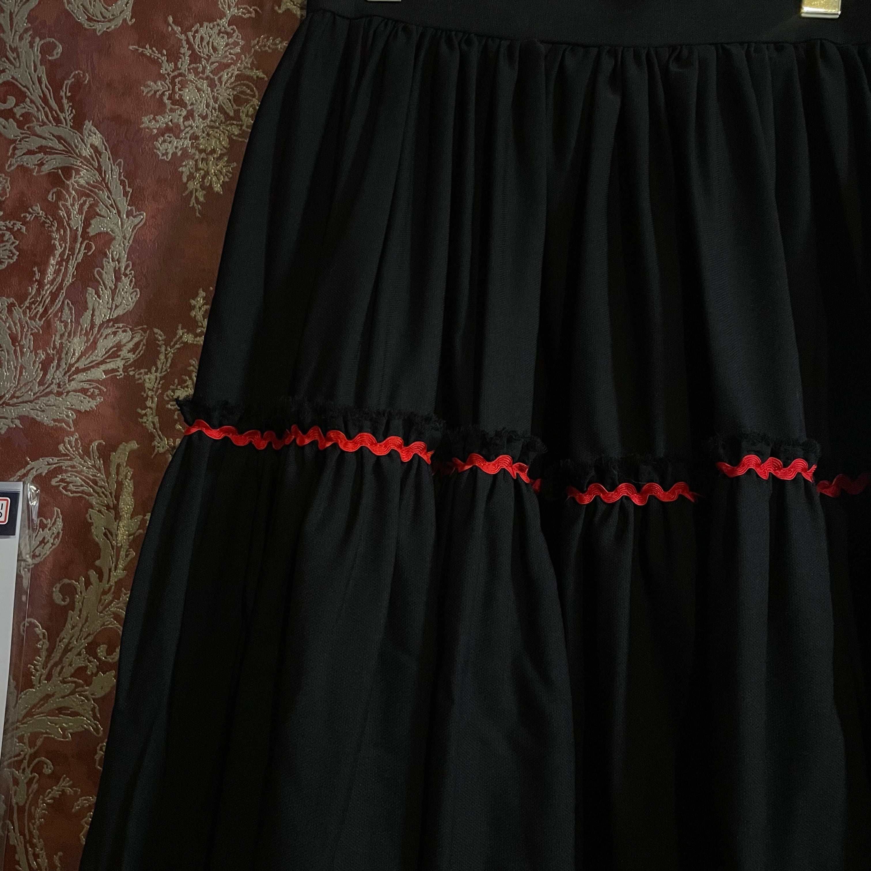 ブラックベースにカラフルなチロリアンテープが映える印象的なスカートです。