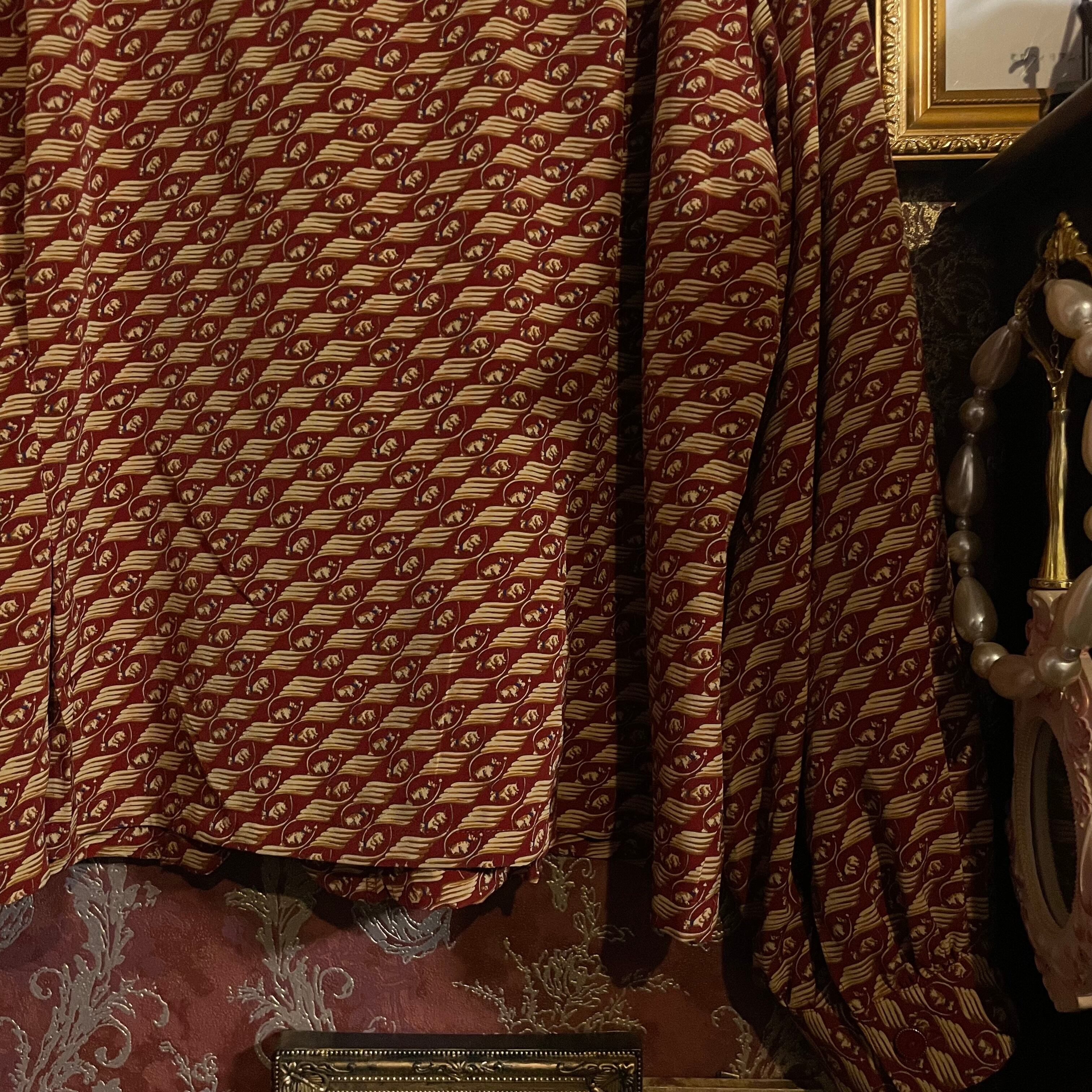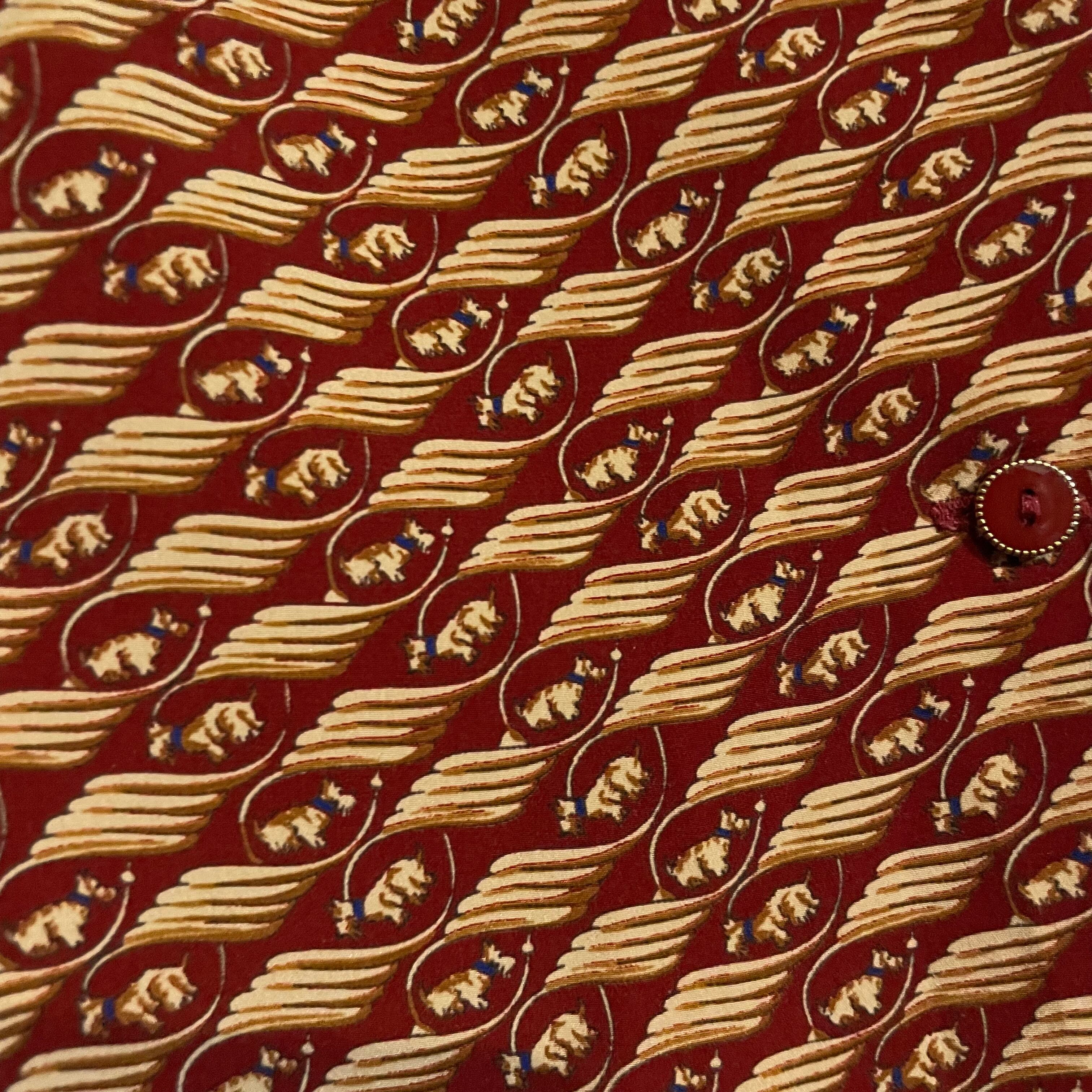 落ち着いたボルドーカラーをベースに、規則的に並ぶドッグモチーフがさりげないアクセントに。