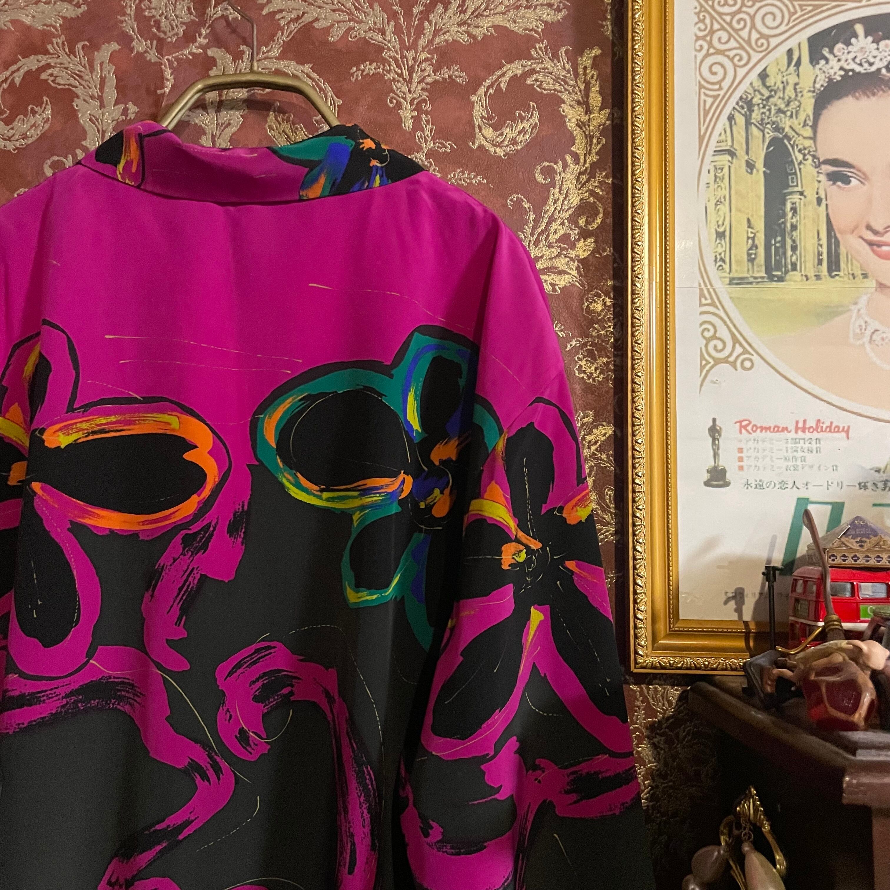 鮮やかなマゼンタとブラックのコントラストが印象的な、BRUNO PIATTELLI(ブルーノ・ピアッテリ) の存在感のあるフローラルデザインのブラウスです。