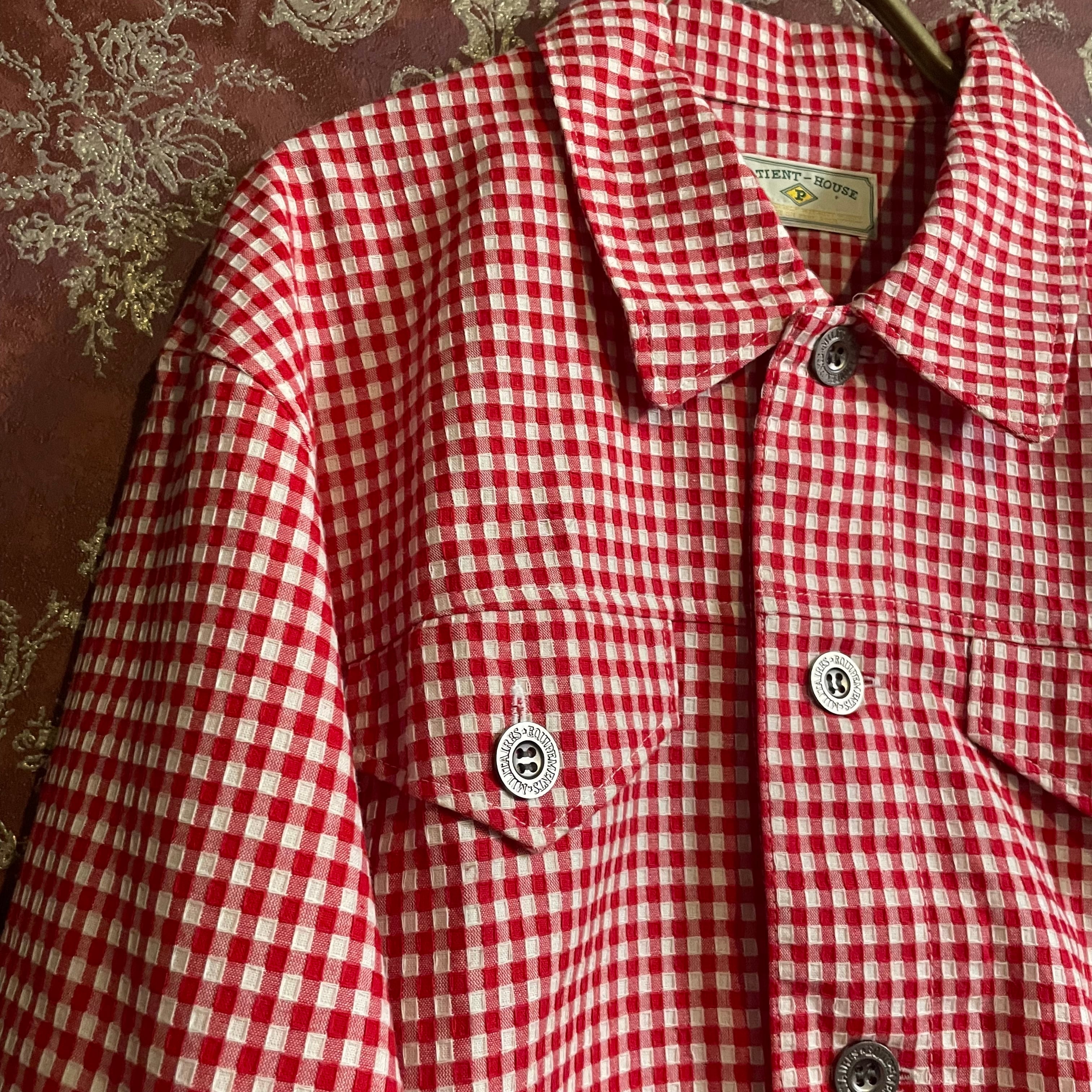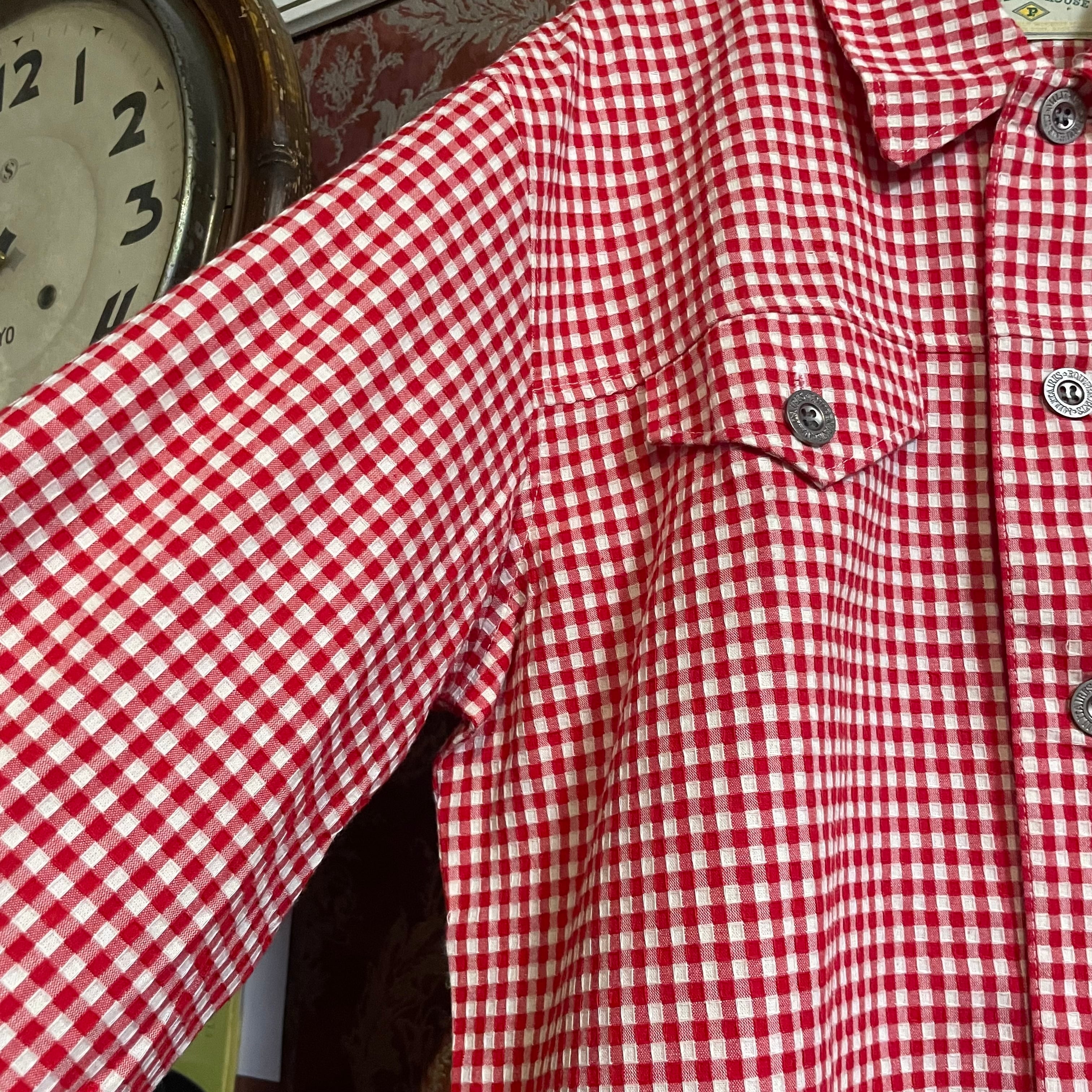 赤と白のギンガムチェックが目を引くコットンジャケットです。