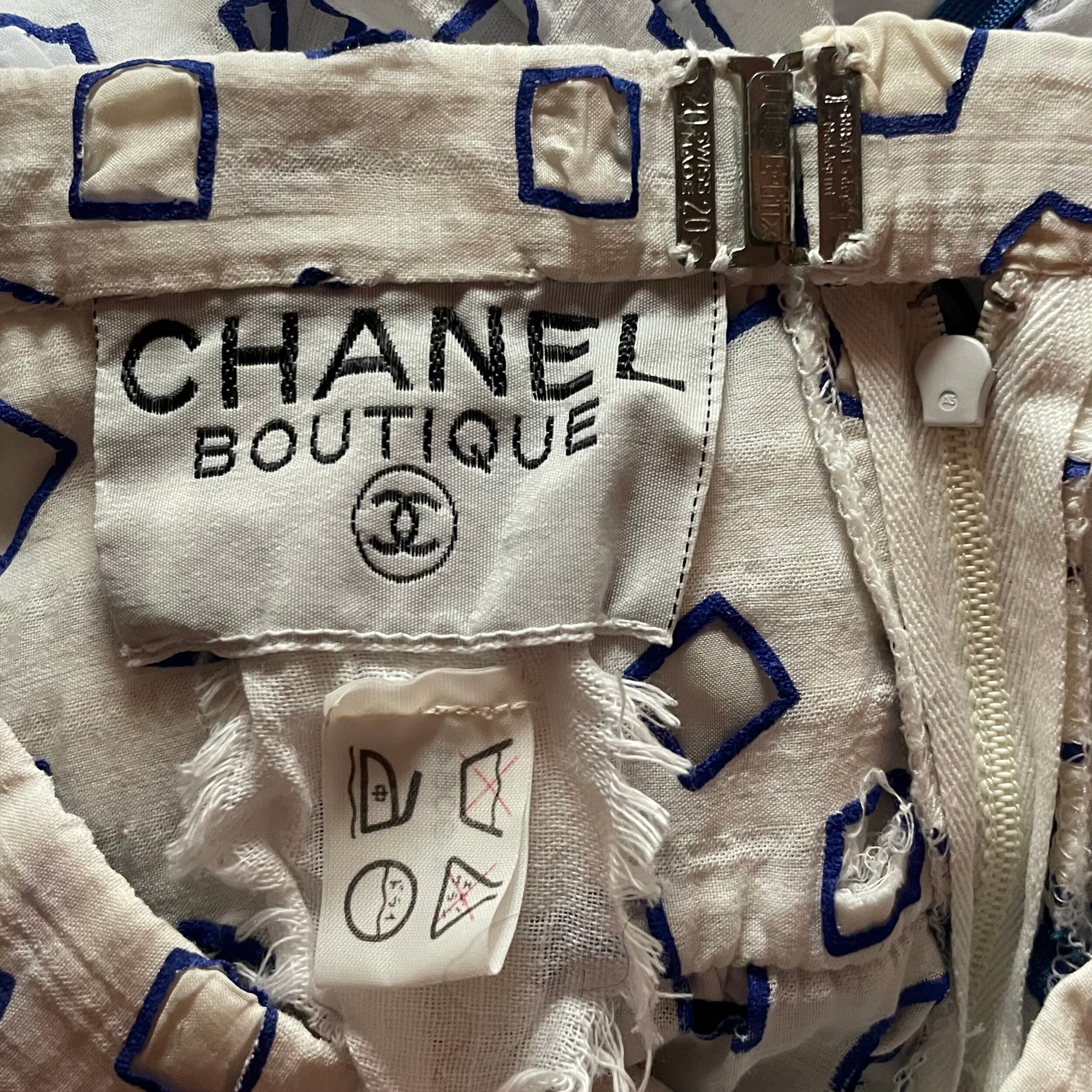 縁に施されたブルーのパイピングが立体感を生み、ヴィンテージシャネルらしい遊び心のある仕上がりです。