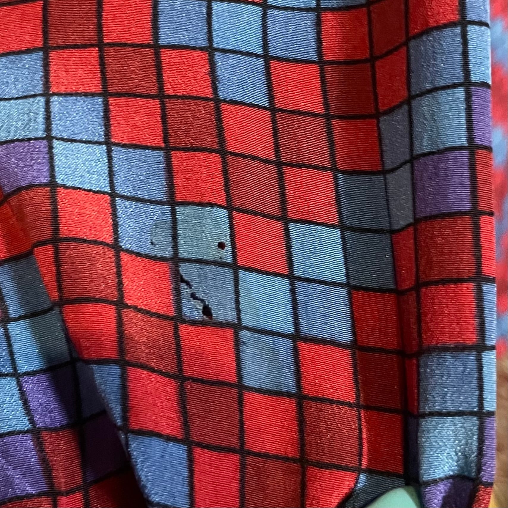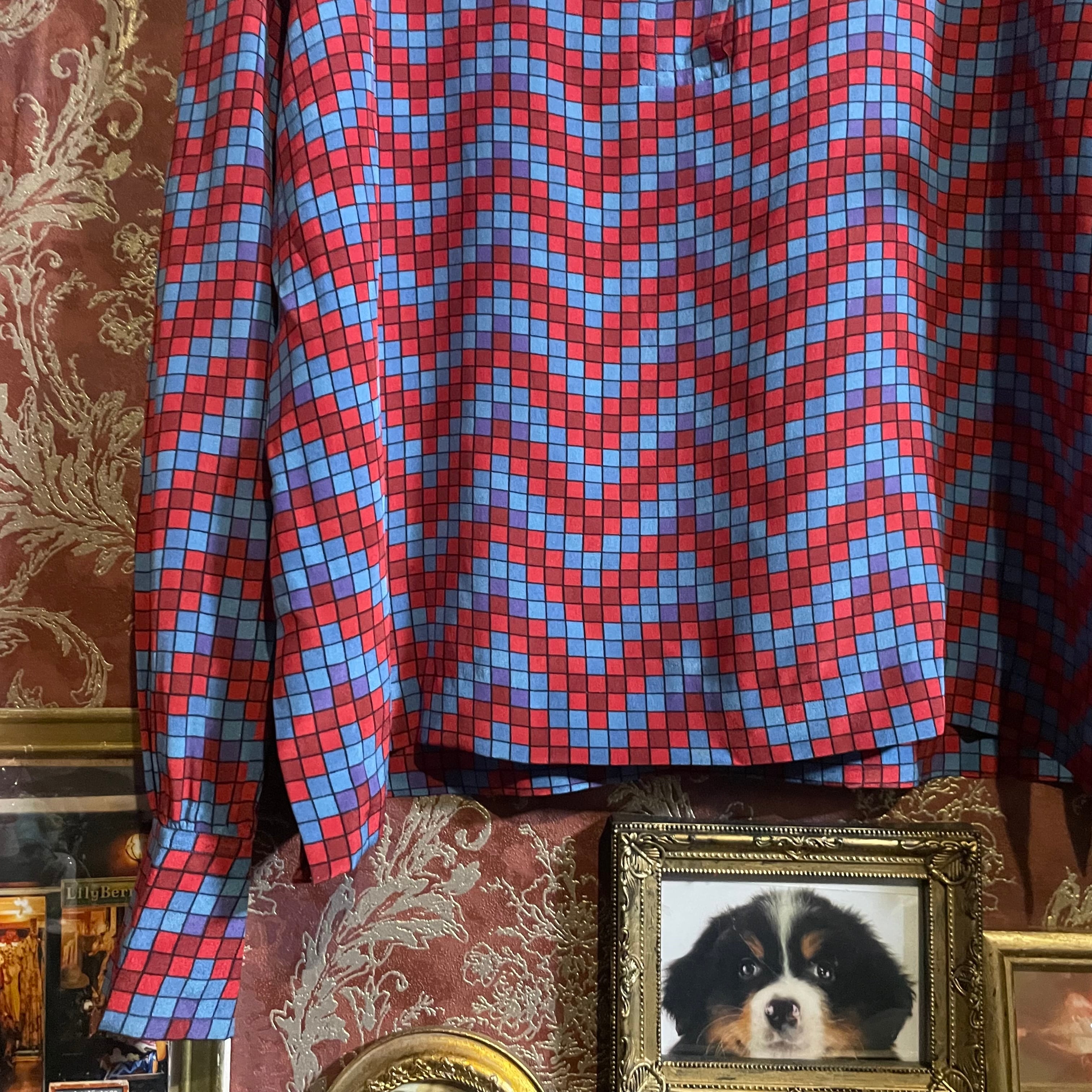 mosaic plaid silk blouse