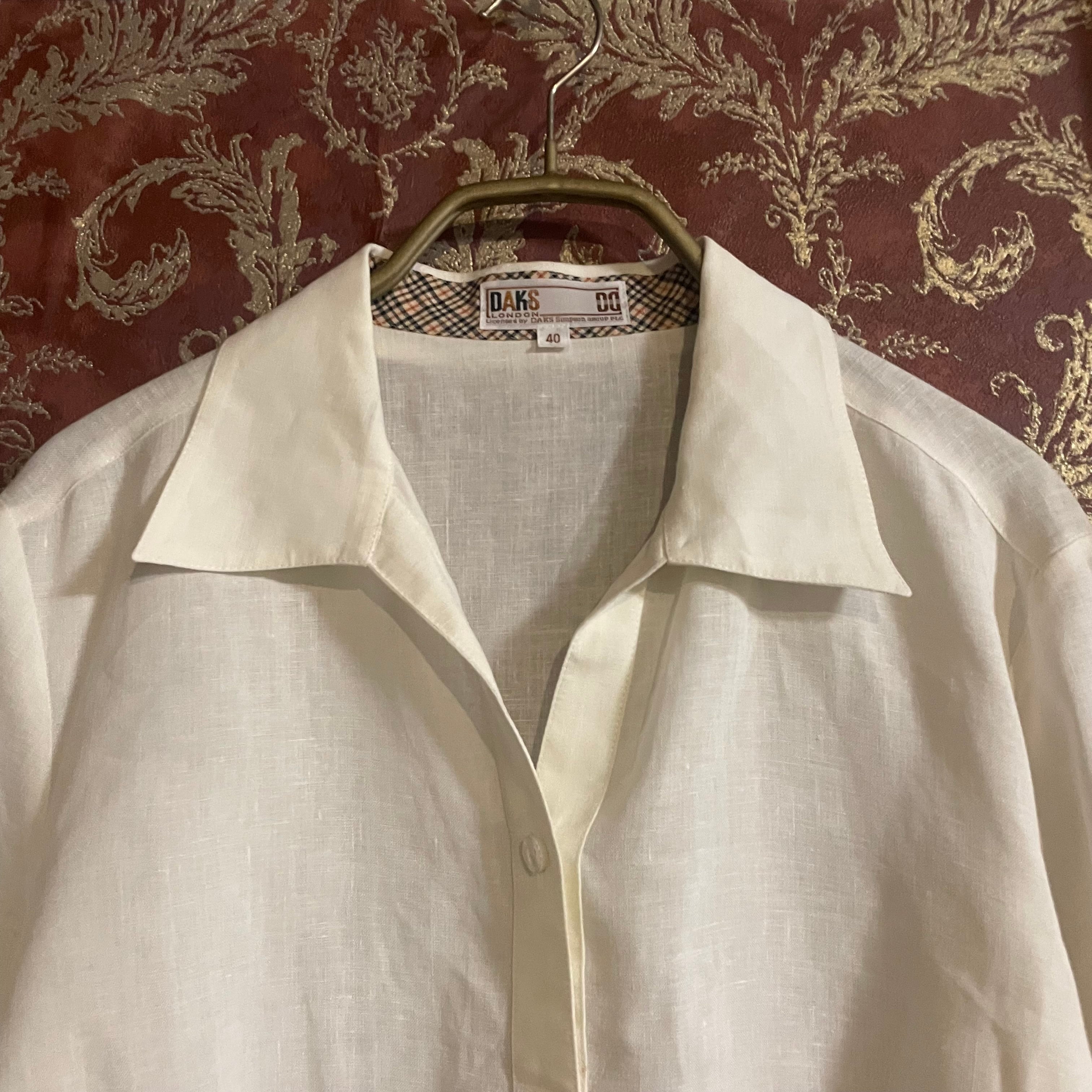 軽やかなリネン素材で仕立てられた、DAKSの上品なホワイトシャツです。