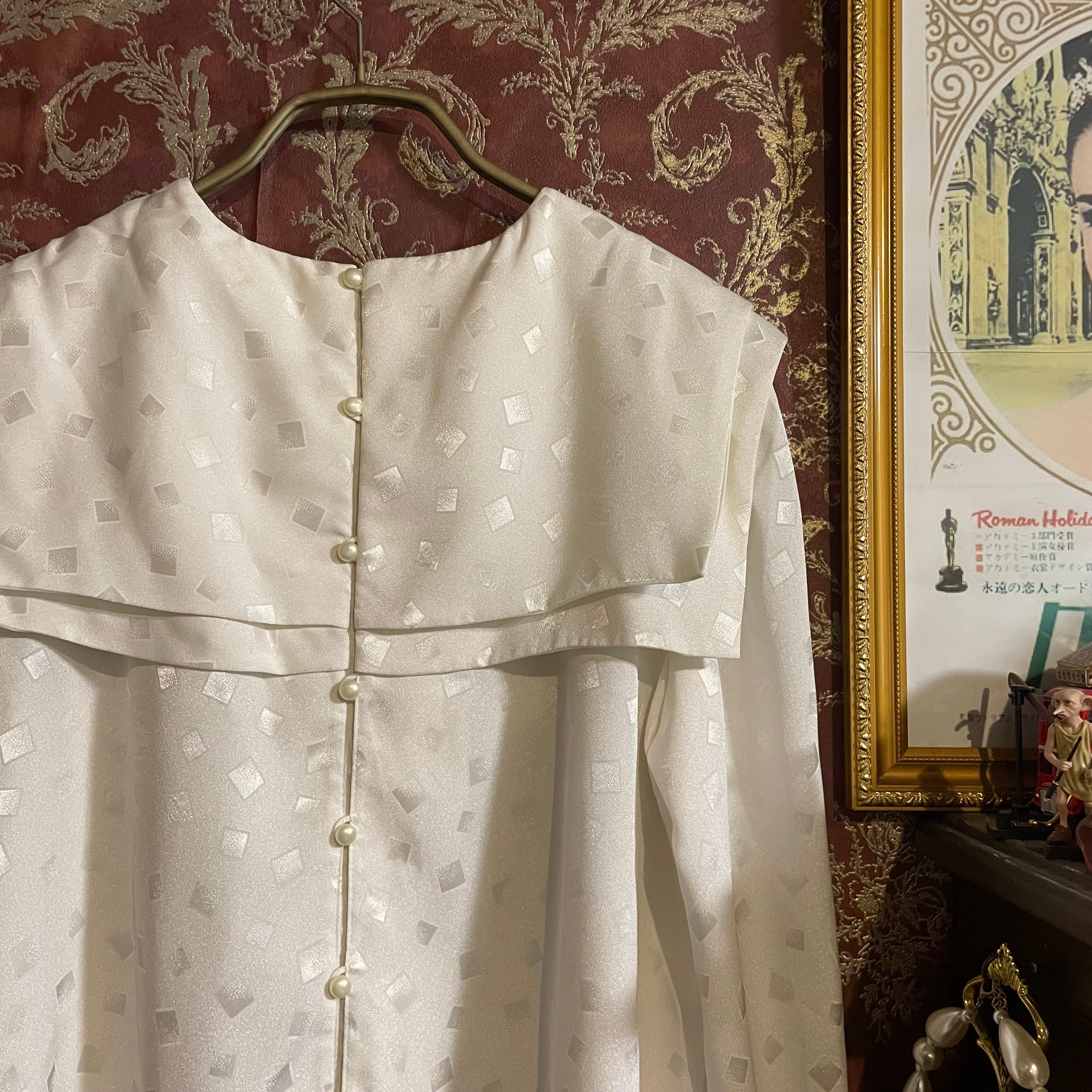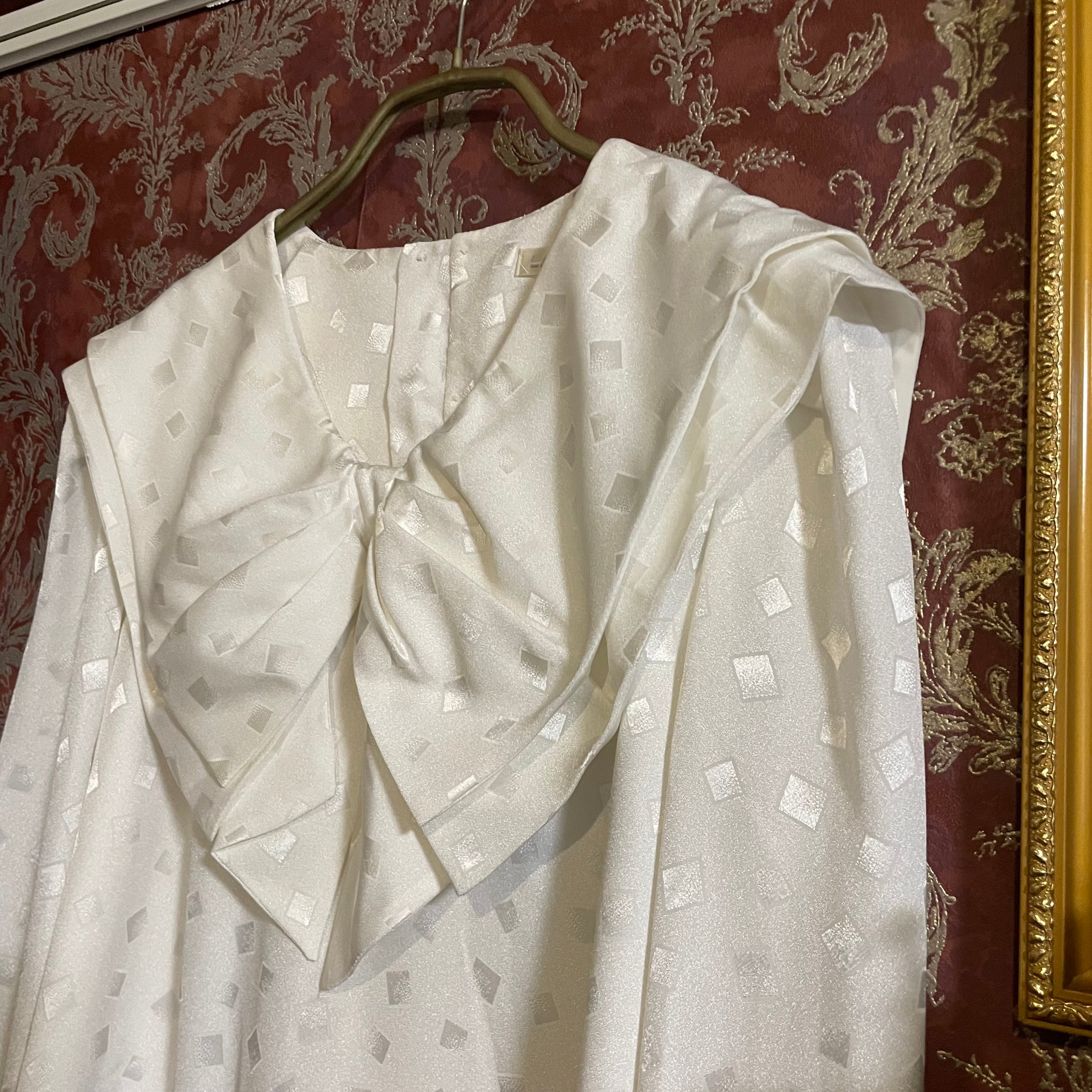 大きなリボンのようなデザインが目を引く、セーラーカラーブラウスです。