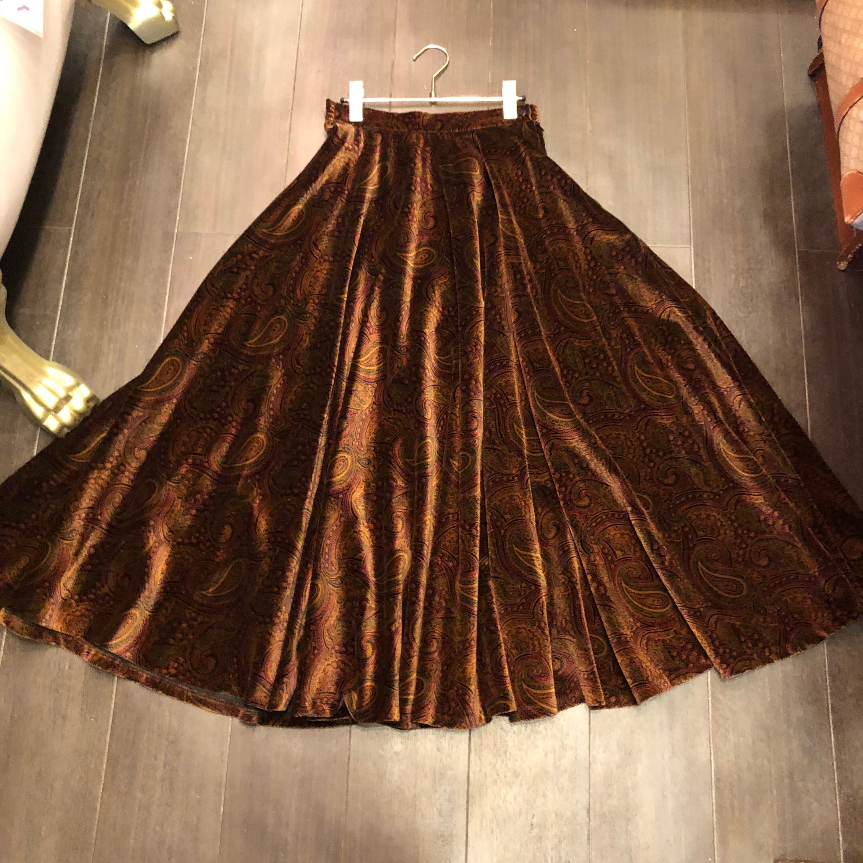 ベロア×ペイズリー×全円フレアスカートです。
