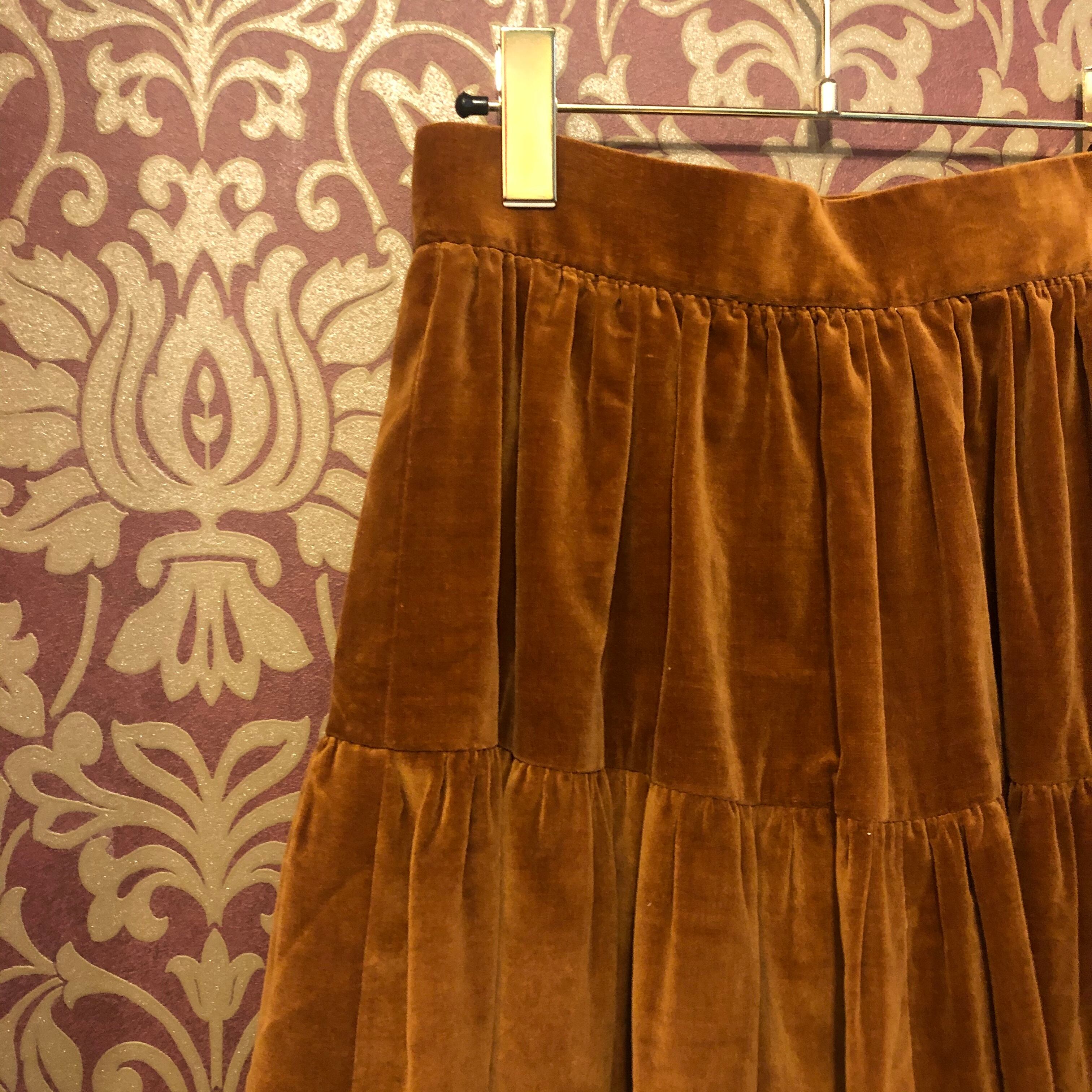 ベロアのハンドメイドのティアードスカートです。