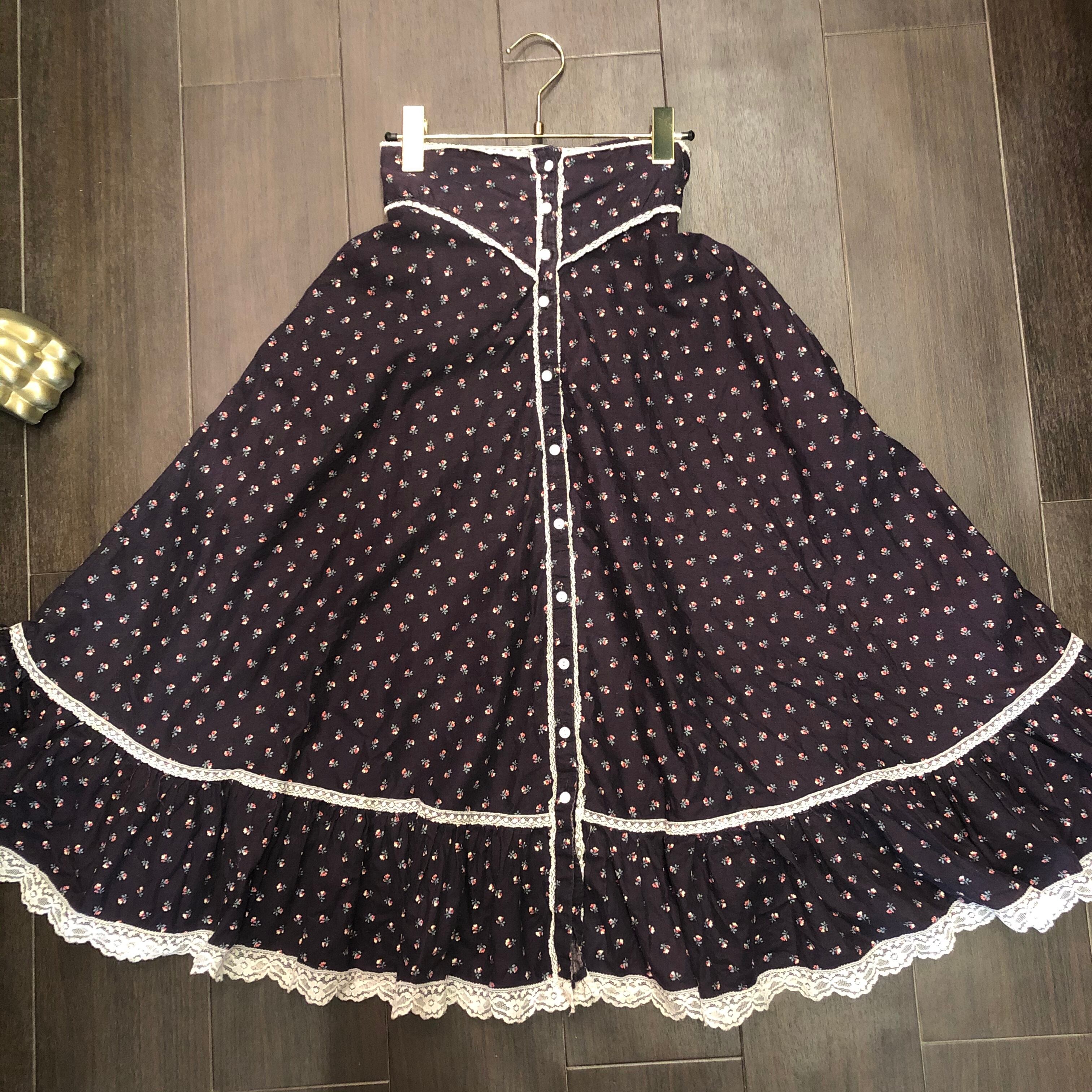 70年代らしいロマンチックな USA vintage の花柄スカートです。