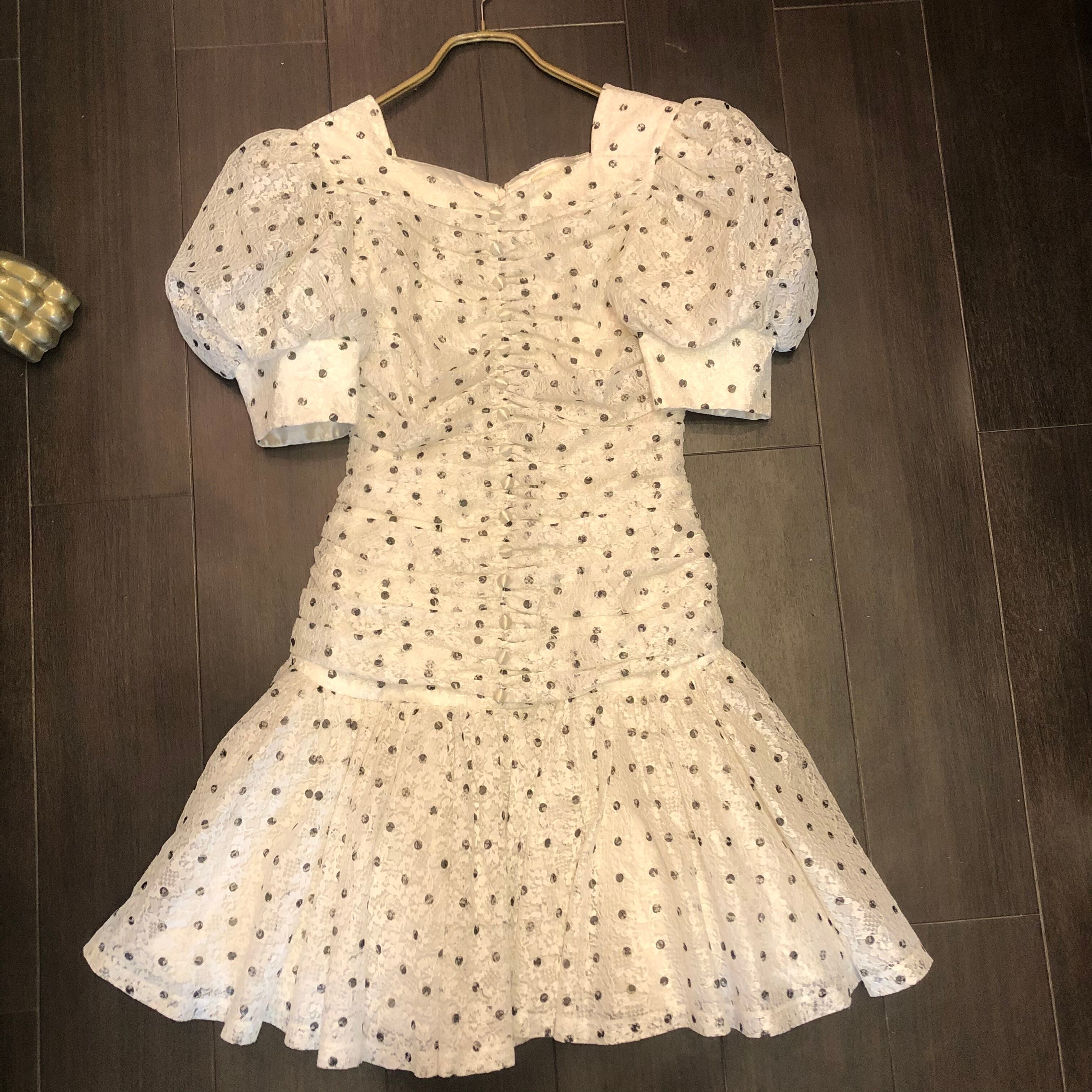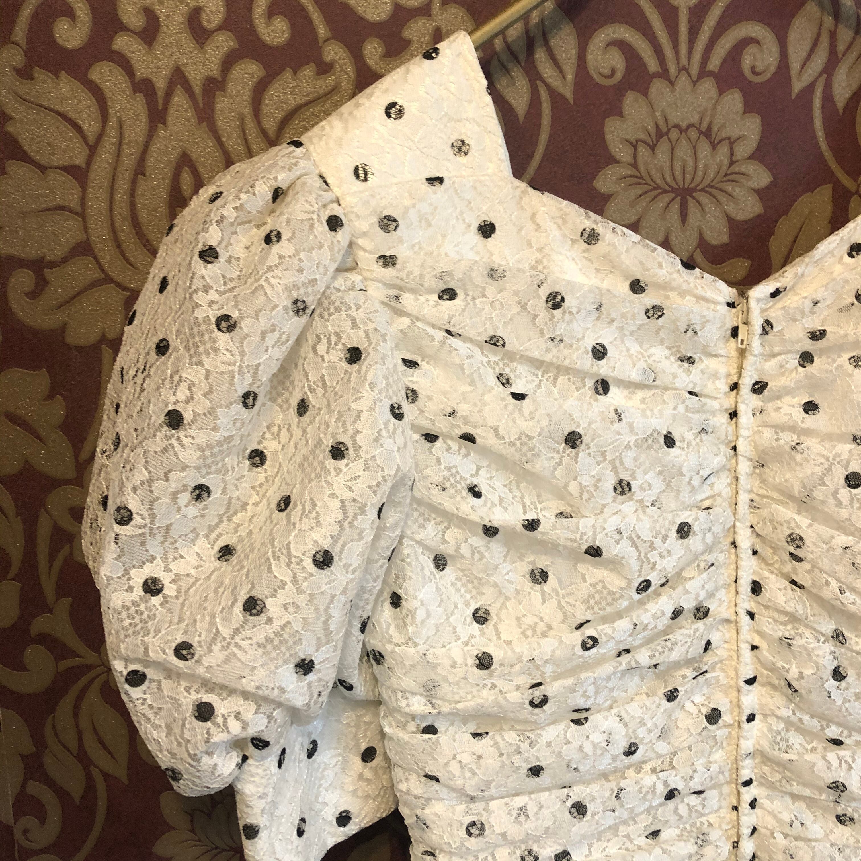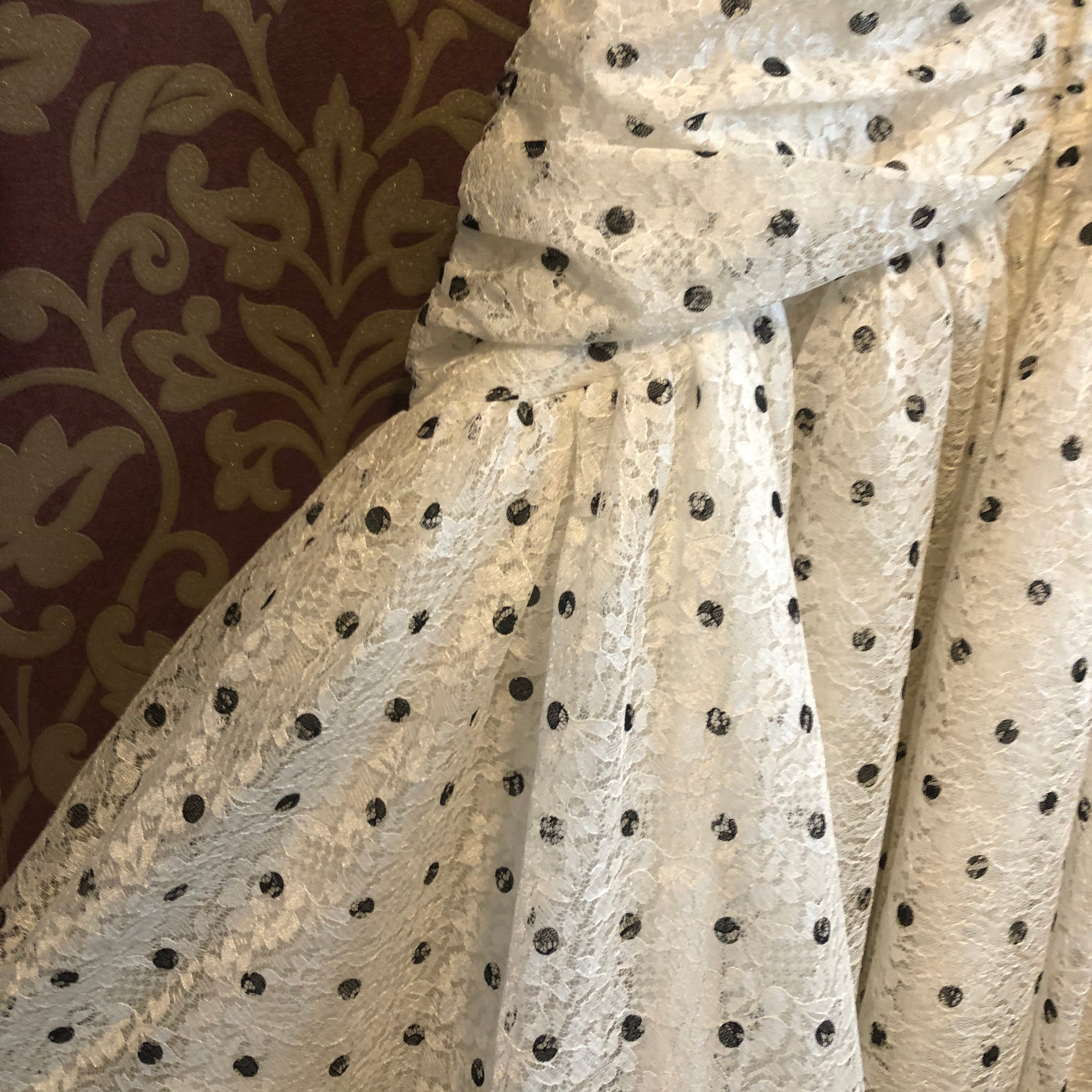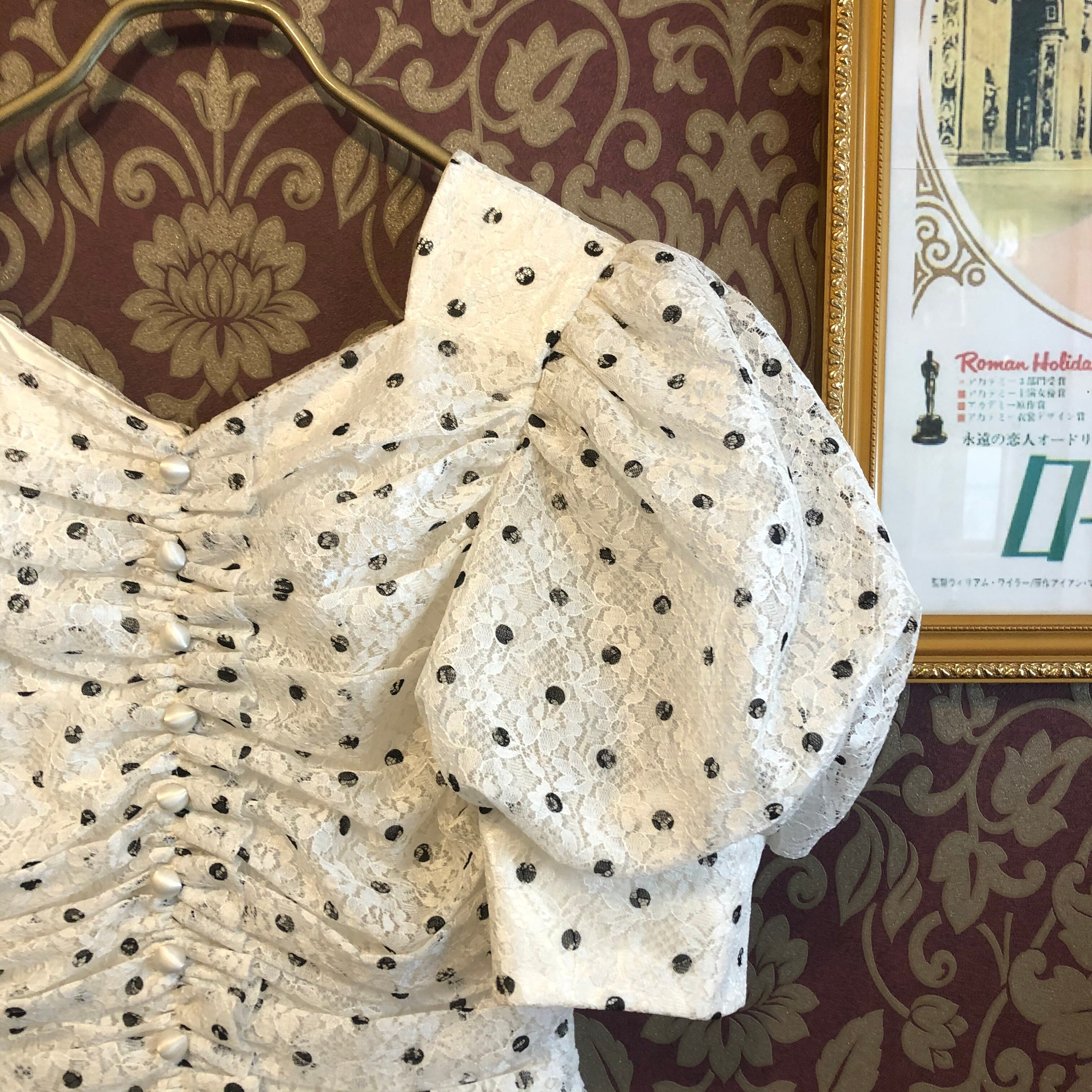 レース地にドットがプリントされている生地を使ったワンピースです。